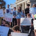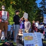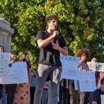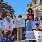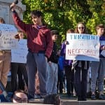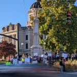 On Monday afternoon, about 250 people—students, parents, and faculty—gathered on the southeast corner of the Monroe County courthouse square in downtown Bloomington to protest the administration’s move.