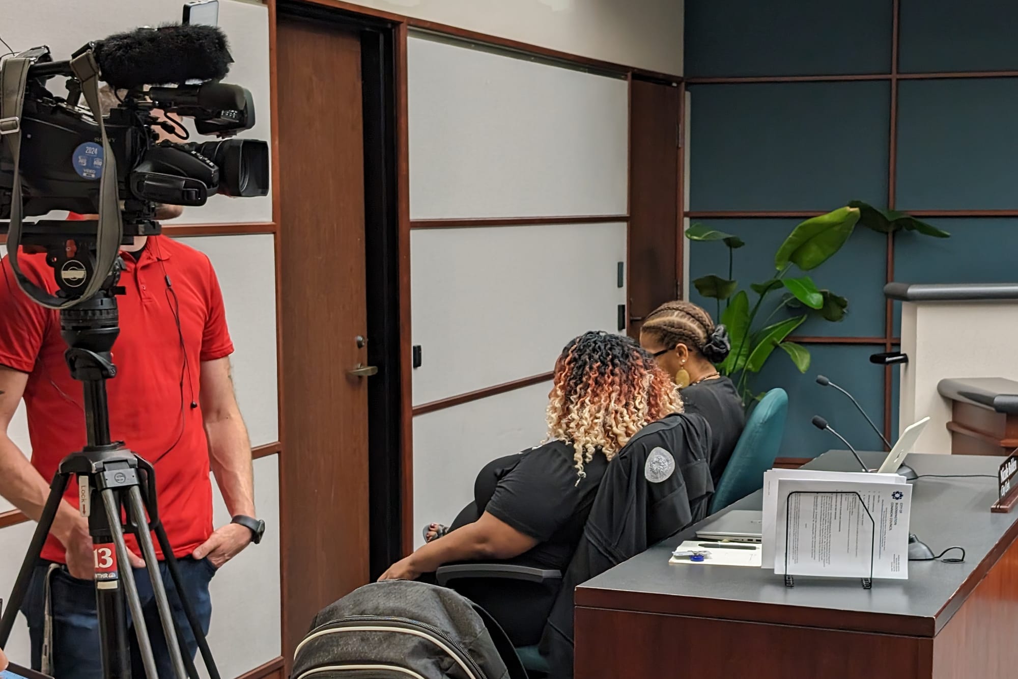 During Canfield’s remarks, Bloomington city clerk Nicole Bolden and deputy clerk Jennifer Crossley swiveled in their chairs to turn their backs to Canfield.