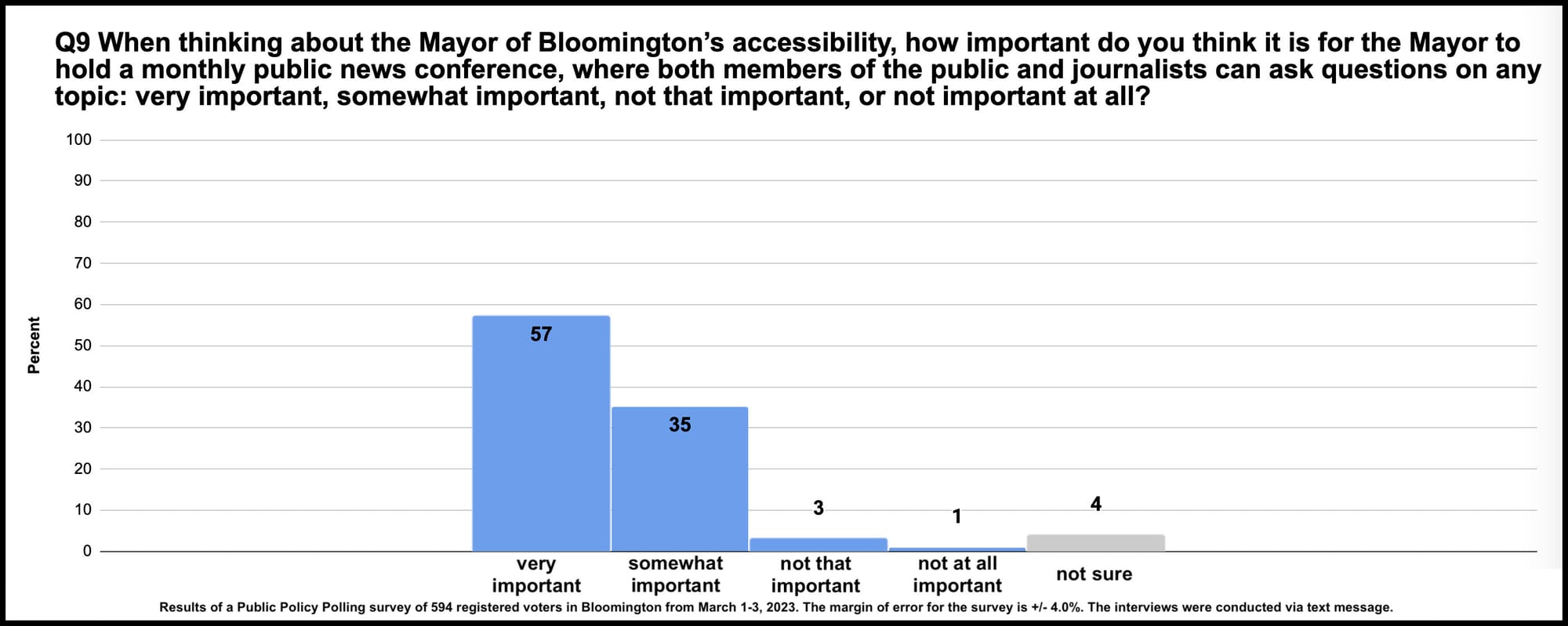 Those survey results show that 92 percent of respondents think it’s very or somewhat important that Bloomington’s mayor hold a monthly news conference.