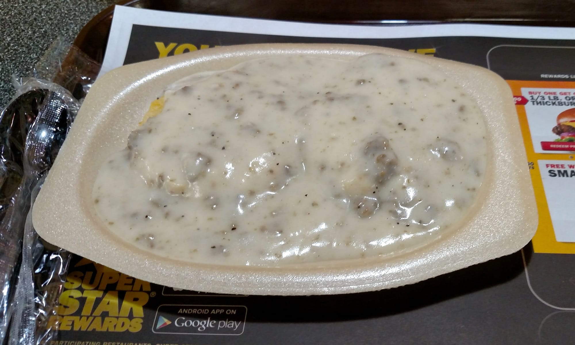 For example, how does the lead art for this column make you feel? For many actual serious-minded foodie type folks, I imagine it might provoke disgust—it’s convenience store biscuits and gravy on a styrofoam plate. But here’s an excerpt from a column I wrote for the Pierre Capital Journal, published on May 7, 2017 with the headline Best breakfast, a Hoosier’s lutefisk: