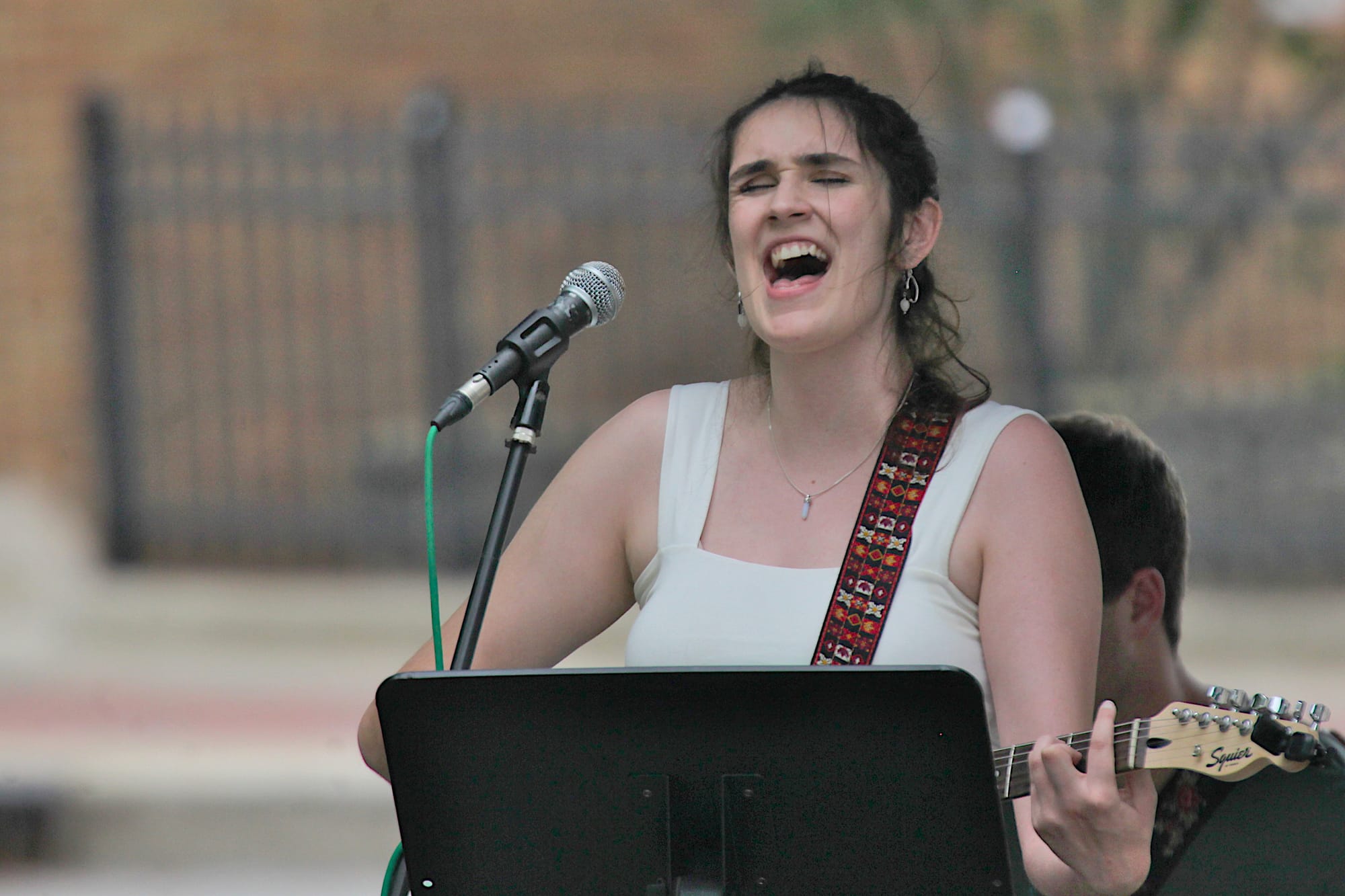 The greeting was directed towards Sarah Cassidy, who was between songs with her band. She was performing at People’s Park as part of the city of Bloomington’s summer concert series.