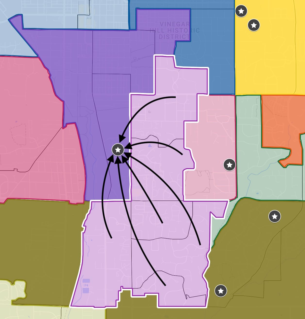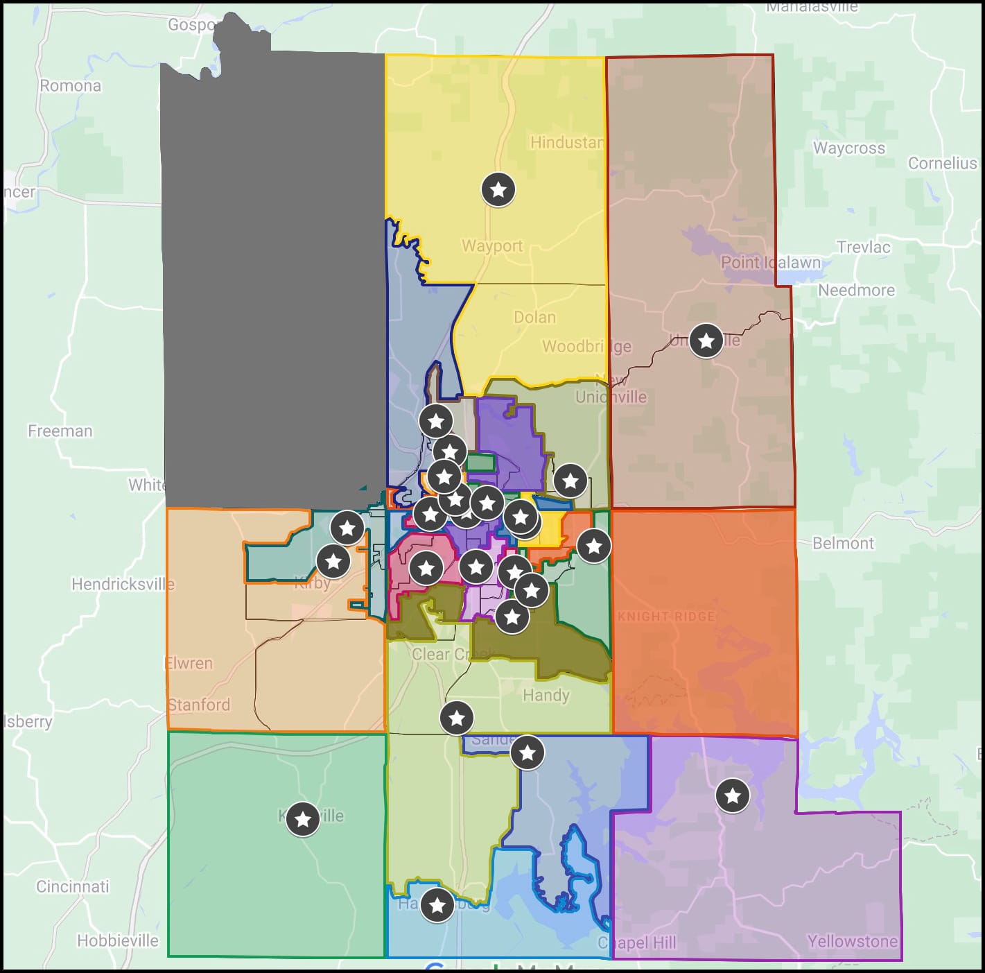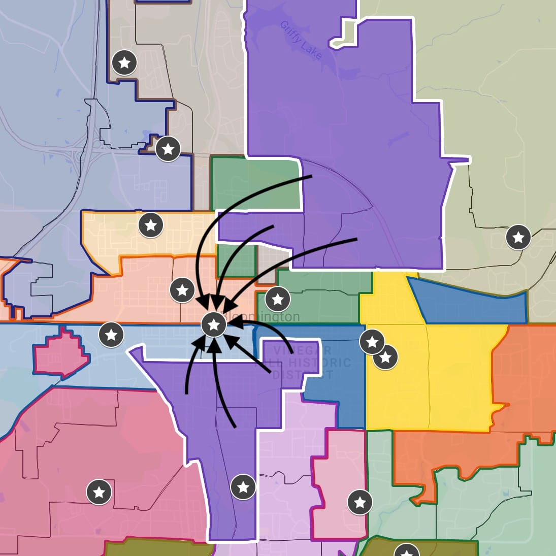 In most cases, current polling locations in Monroe County already consolidate more than one precinct. But the precincts that are consolidated into one location, where voters from those precincts have to vote, in some cases form disconnected geographic areas. There are also situations where the polling location is not in any of the precincts from which it draws eligible voters.