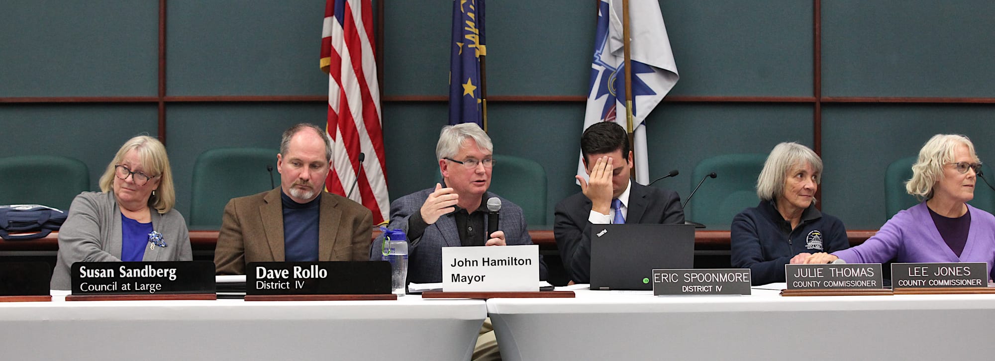The meeting had begun with a request from county commissioner Lee Jones that the agenda be altered to consider the question of equal representation. Jones reiterated the position of the commissioners, which had been conveyed the day before in a one-sentence letter sent to Bloomington’s mayor, John Hamilton. The letter stated the only way the project would move forward was with equal representation for the county and the city on the board of whatever governing body was established.