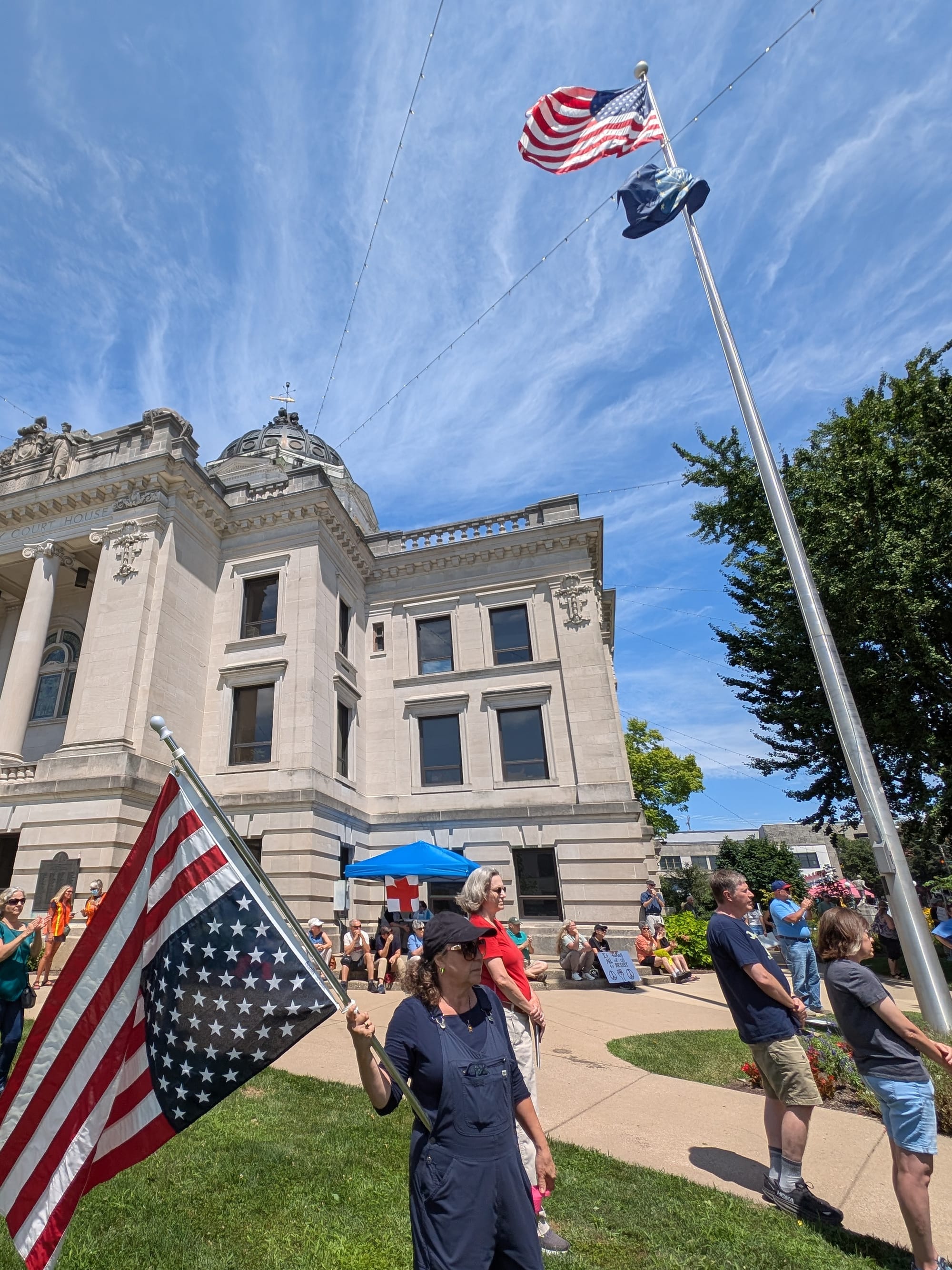 On Saturday (Aug. 2), the Monroe County courthouse lawn was the site of another protest sponsored by the 50501 Movement, expressing opposition to many of the specific policies that have been enacted by President Donald Trump.