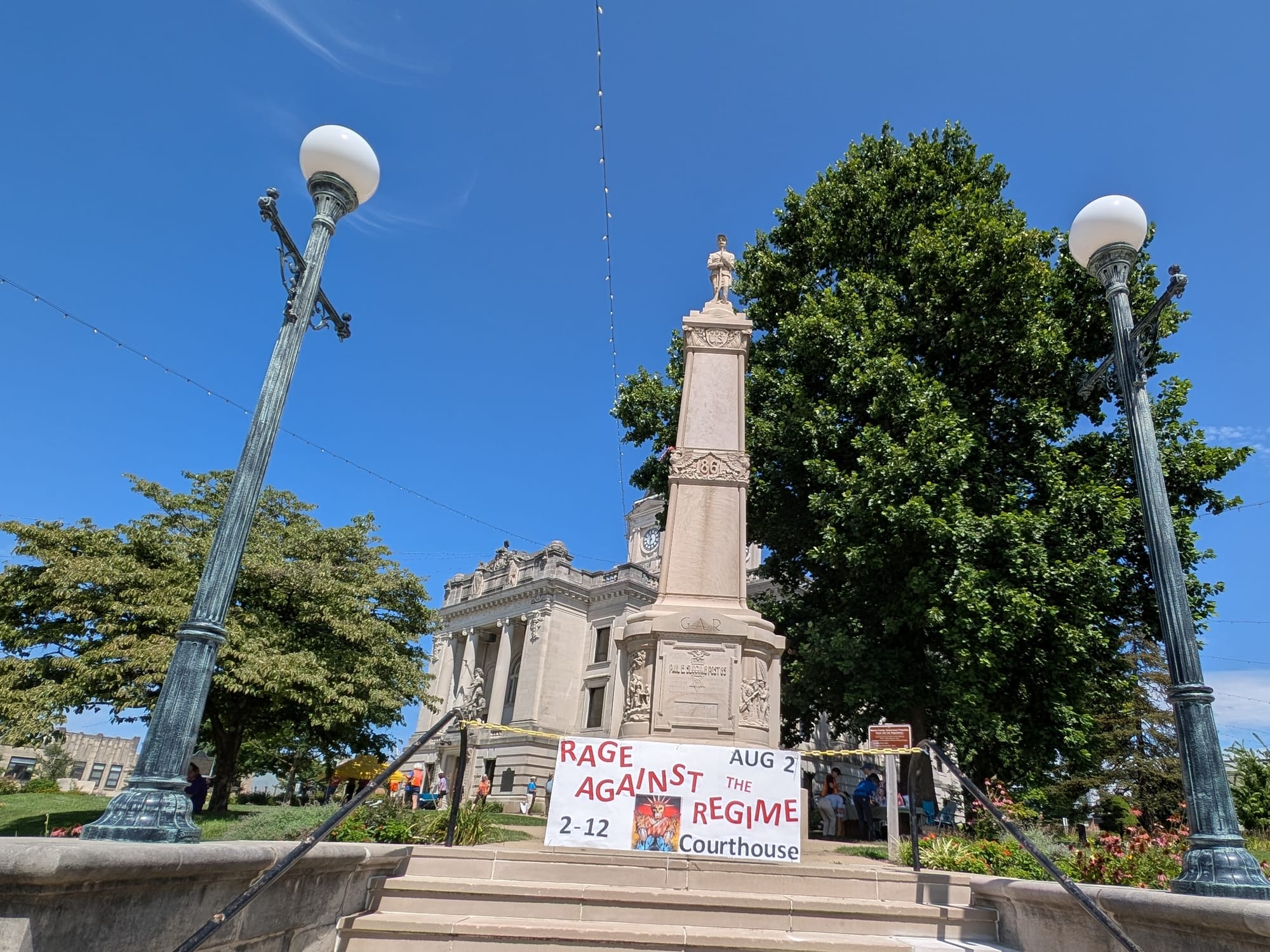 The “Rage against the regime” protest on the Monroe County courthouse grounds. (Dave Askins, Aug. 2, 2025)