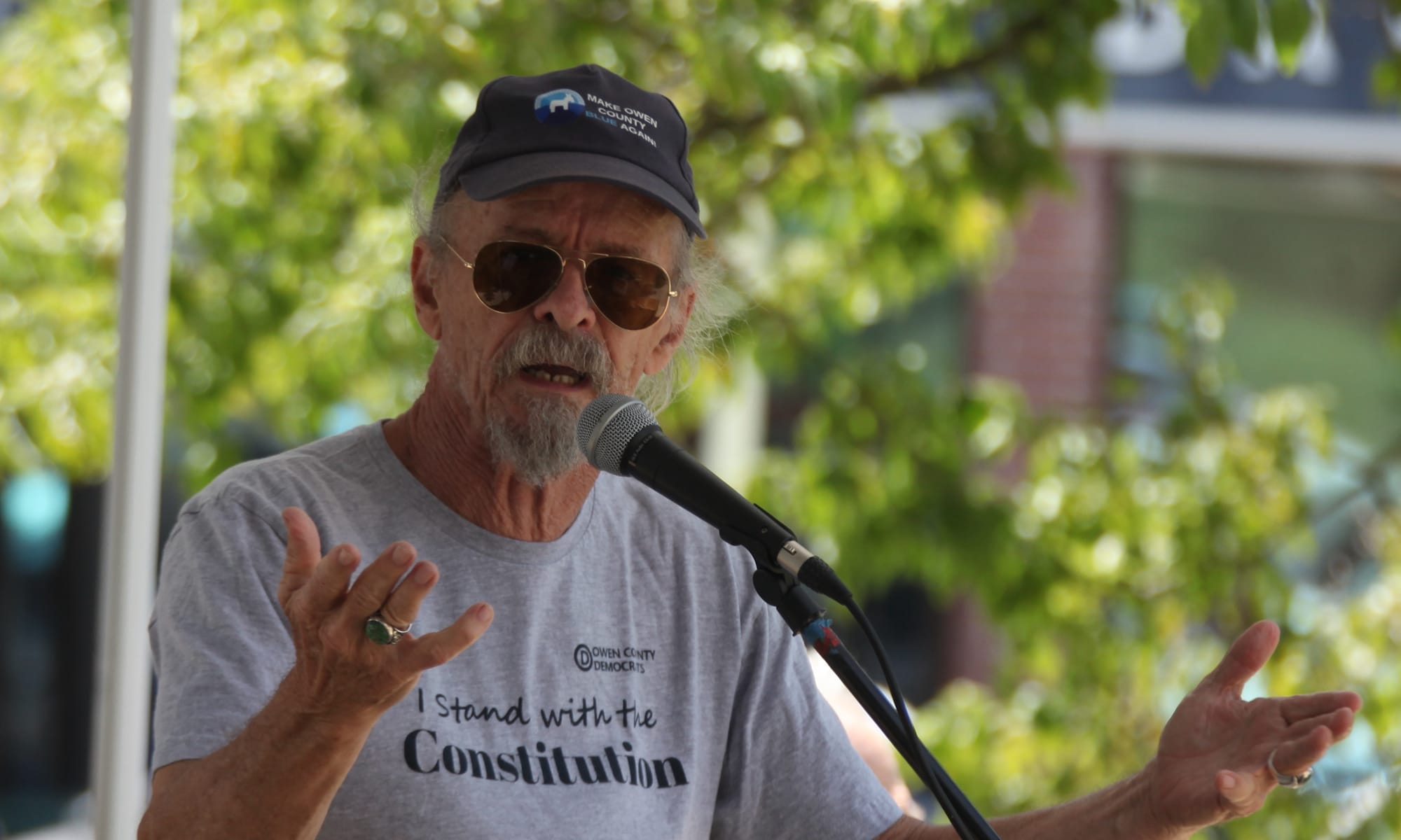 Courthouse rally speakers denounce Trump policies, urge voter action
