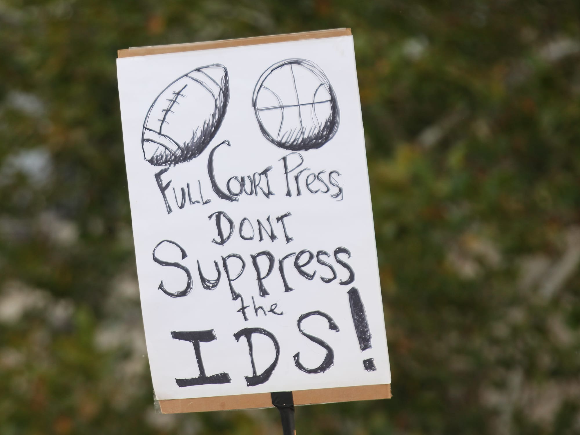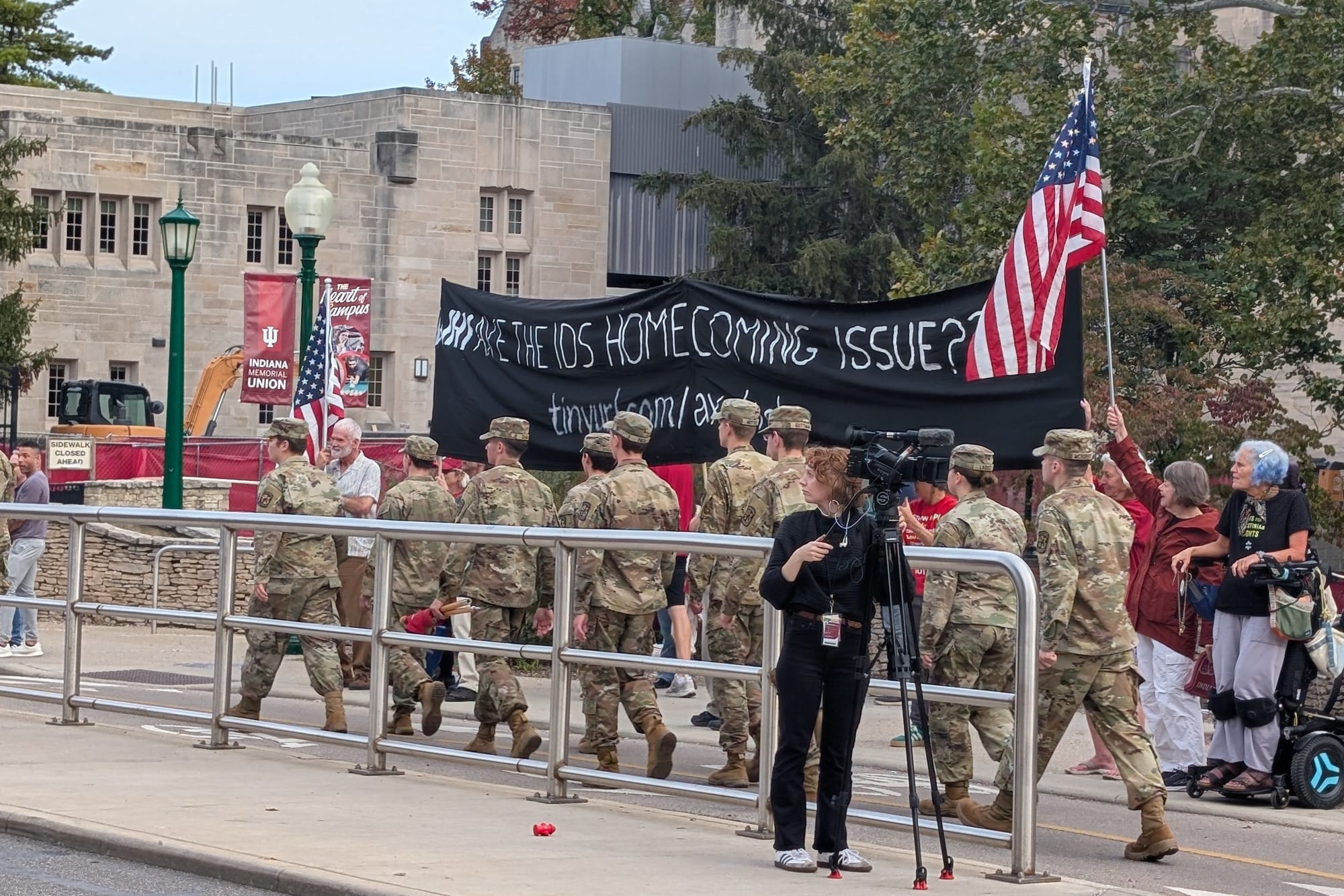 Demonstrators at IU homecoming parade chant support for student newspaper: ‘Free press! Free press! We support the I-D-S!’