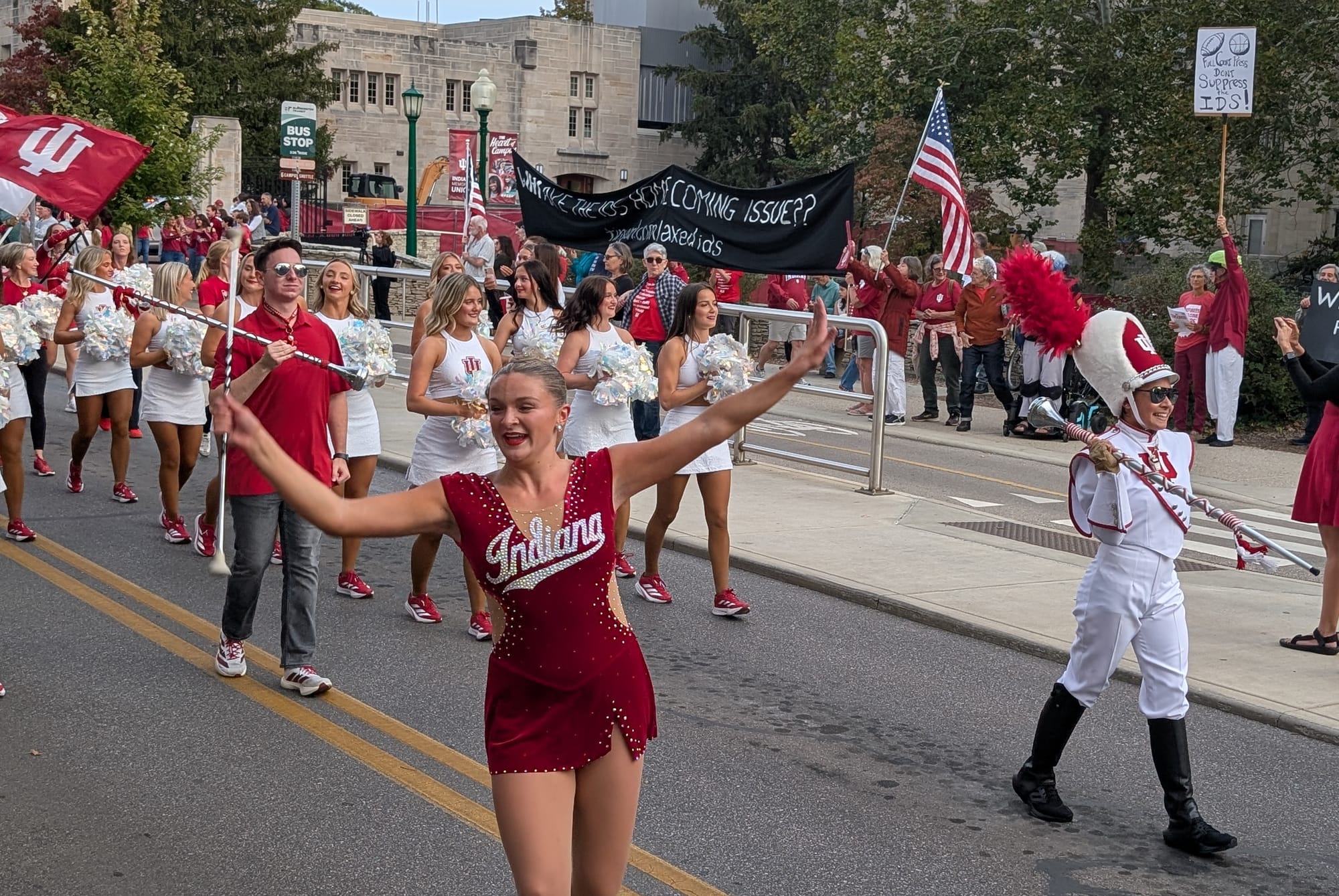 IU Homecoming Parade looking southeast across 7th Street. (Dave Askins, Oct. 17, 2025)
