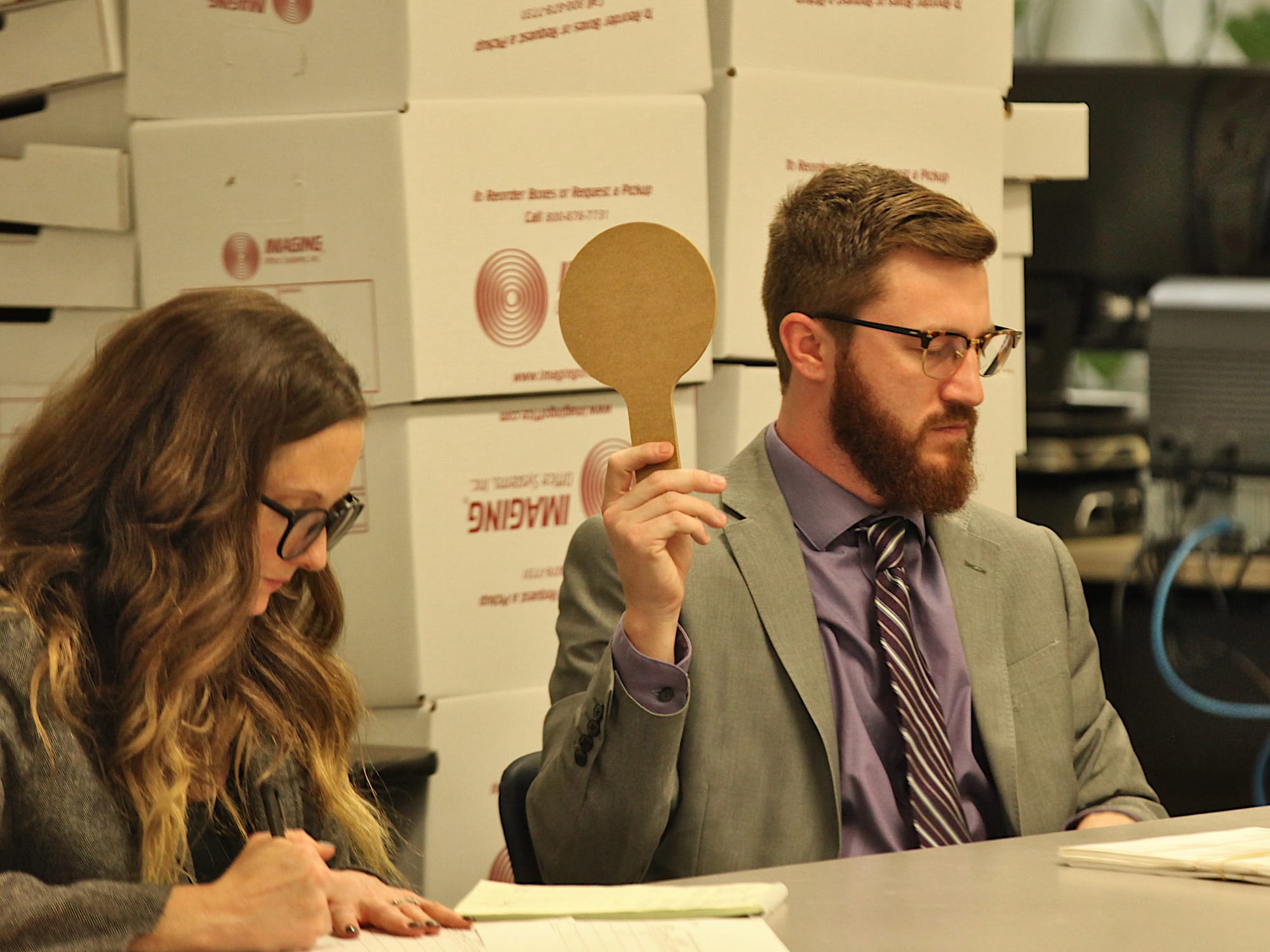 Expectations of watchers and their conduct at the table were laid out at the start by SBOA staff: “Please don’t touch the table. Don’t put your arms on the table—no drinks, no food on the table.”