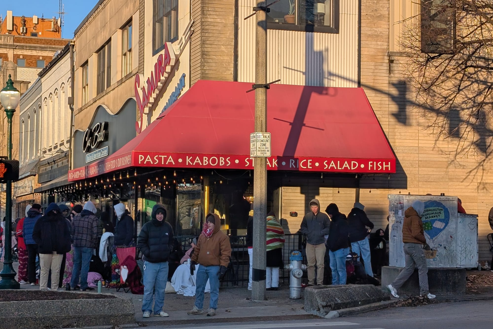 One woman, who was dressed in IU gear, was walking down Walnut Street from the line for Brothers—she said her daughter was in line, but didn’t think she was close enough to the head of the line to get in. The line stretched from Brothers around the corner at 6th Street all the way to the north-south alley that splits the 6th Street block across from the historic county courthouse.