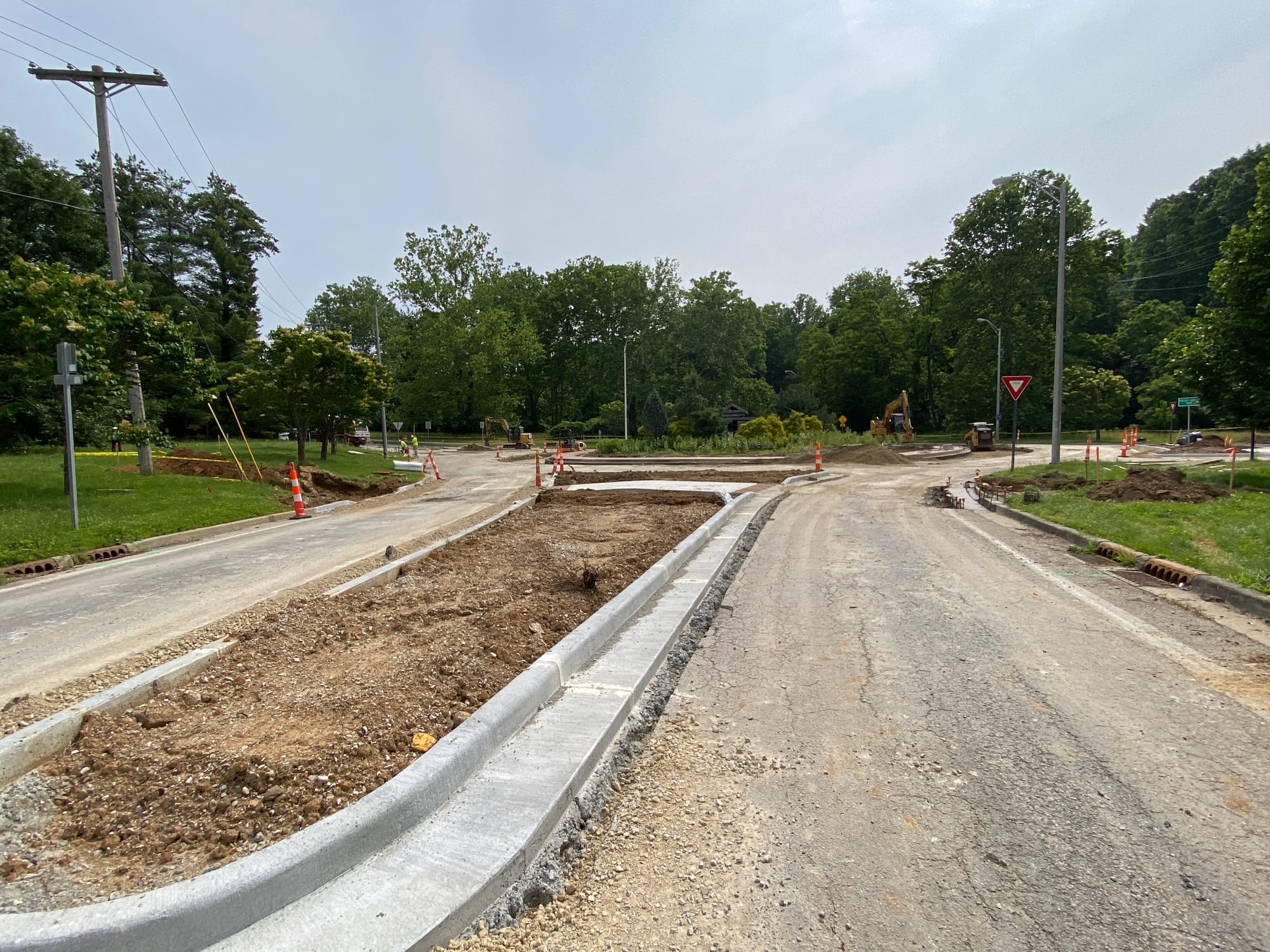 A larger splitter island and new crosswalk was recently installed at the E Winslow/E Rogers/S High roundabout, along with other improvements and reconstructions.