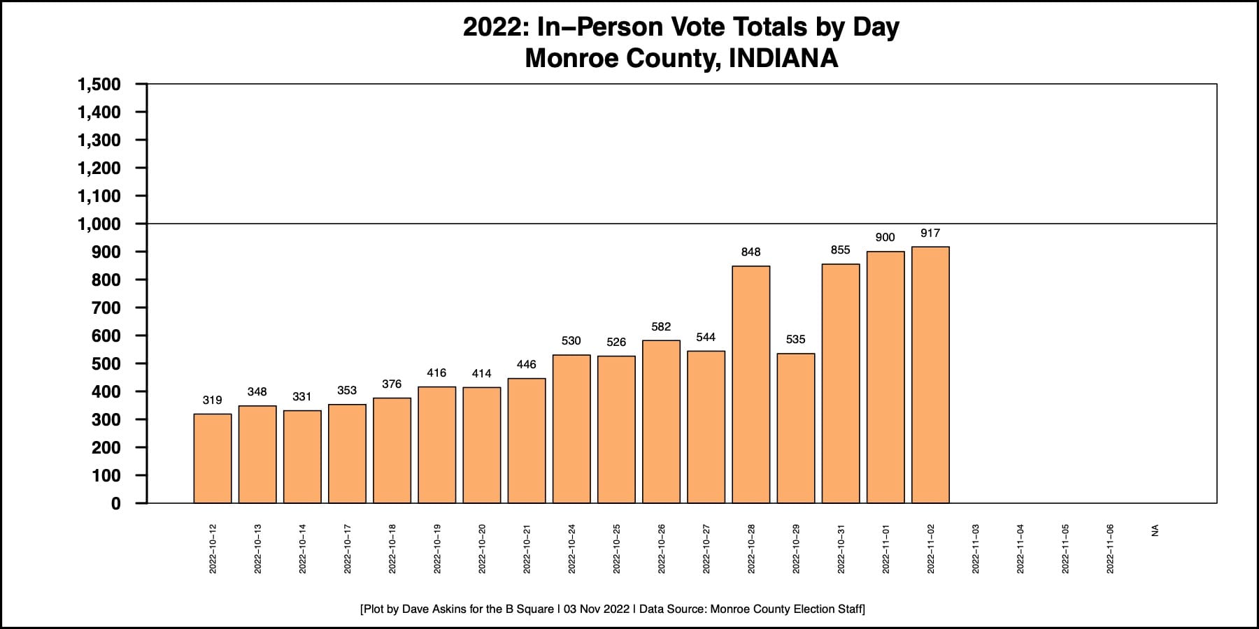Left on the in-person early voting calendar are this Thursday, Friday, Saturday, and the Monday before election day. If those four days maintain the average of about 850 voters that the last three days have tallied, that would project out to about 12,640 early in-person voters.