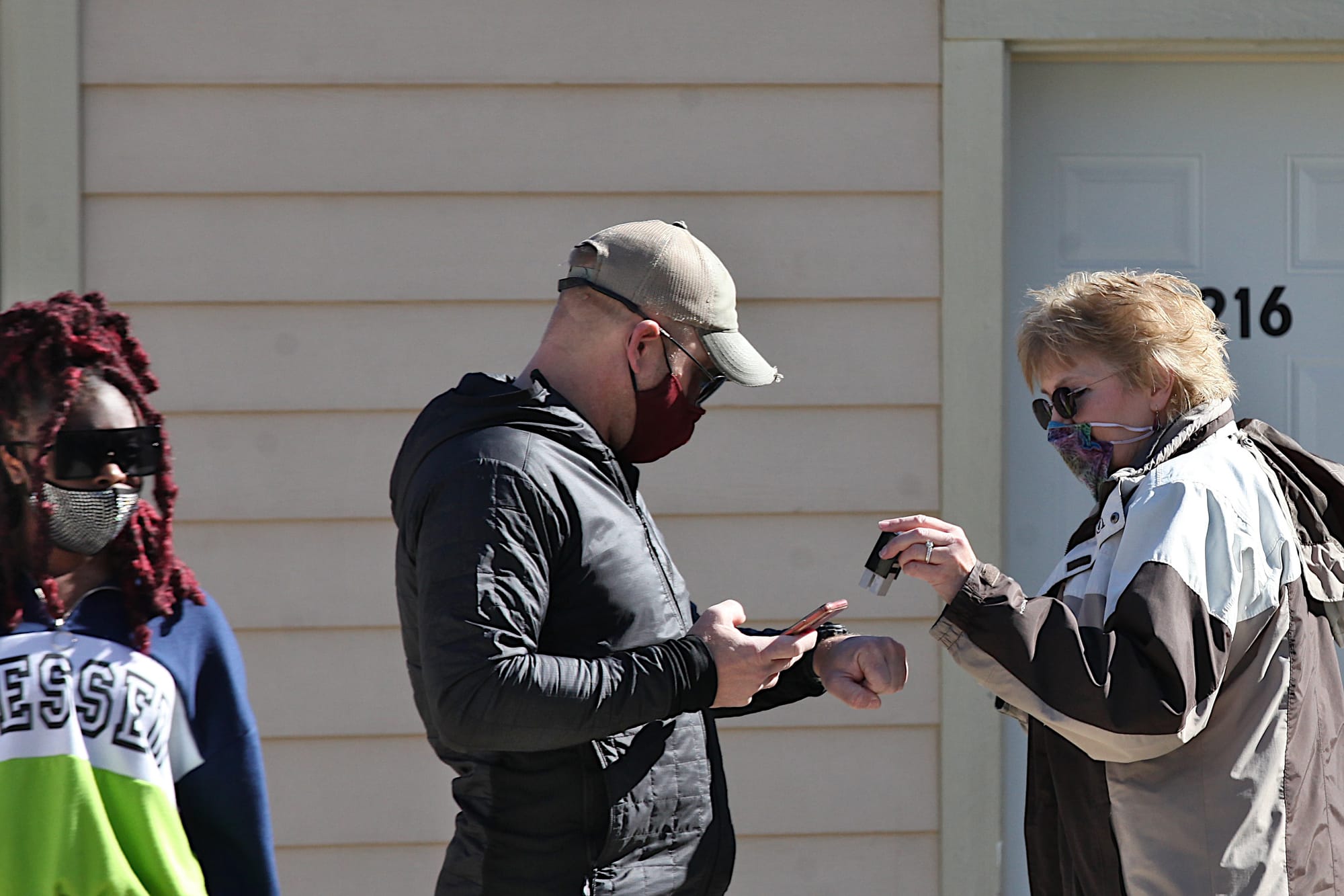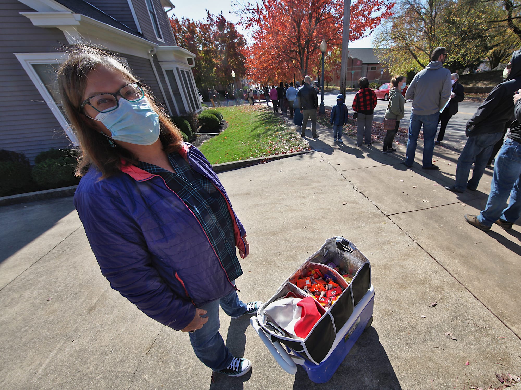 McCune said the inspiration for distributing snacks came when she cast her own ballot and she was waiting in line to vote near Rogers and 6th streets, about the same spot where she had her cooler set up on Monday: “I was standing right about here a couple weeks ago. And I said, I got a headache. I wish I’d brought a water. I wish I’d brought a snack. Everybody in this line is probably thinking the same thing.”