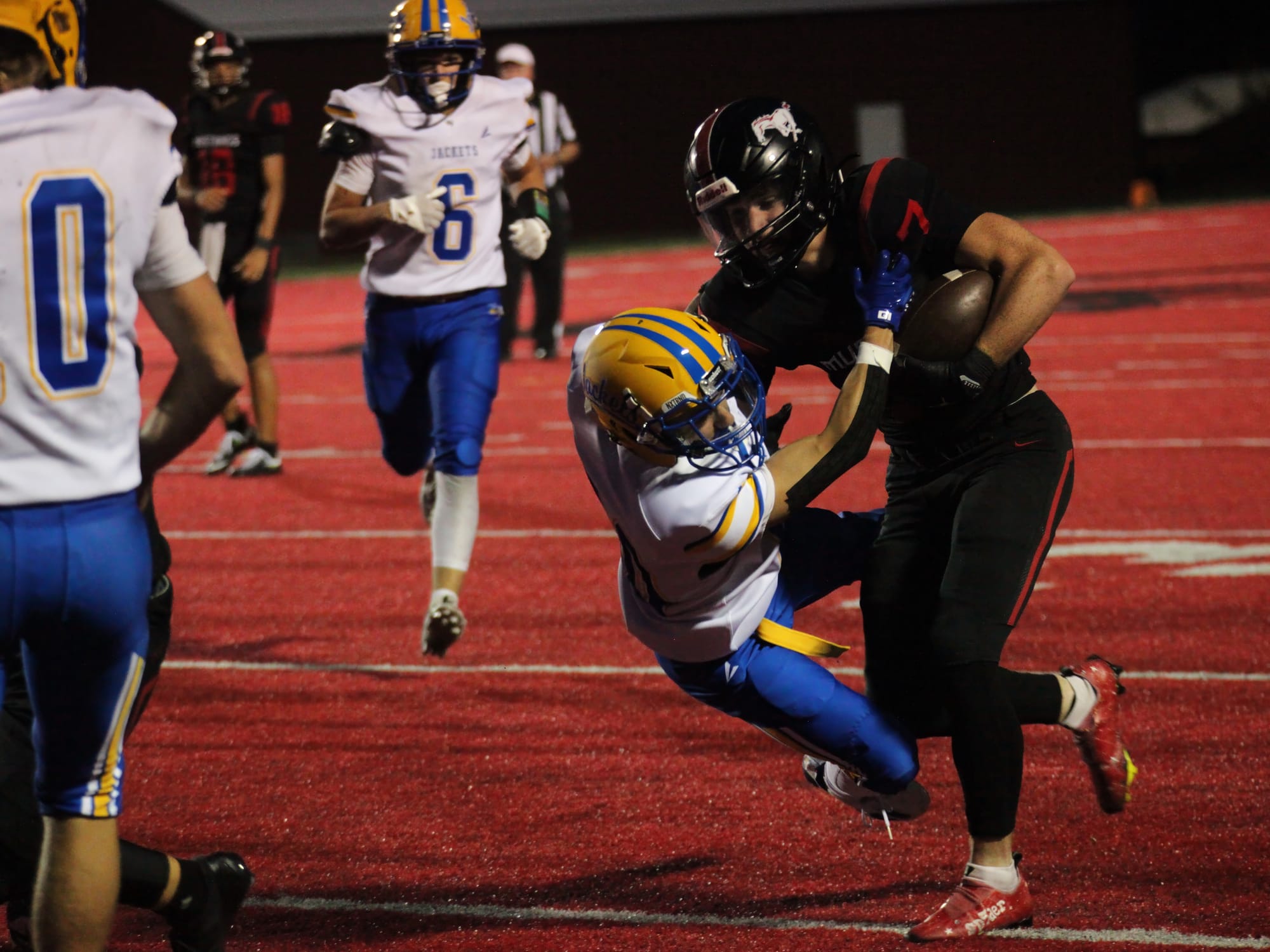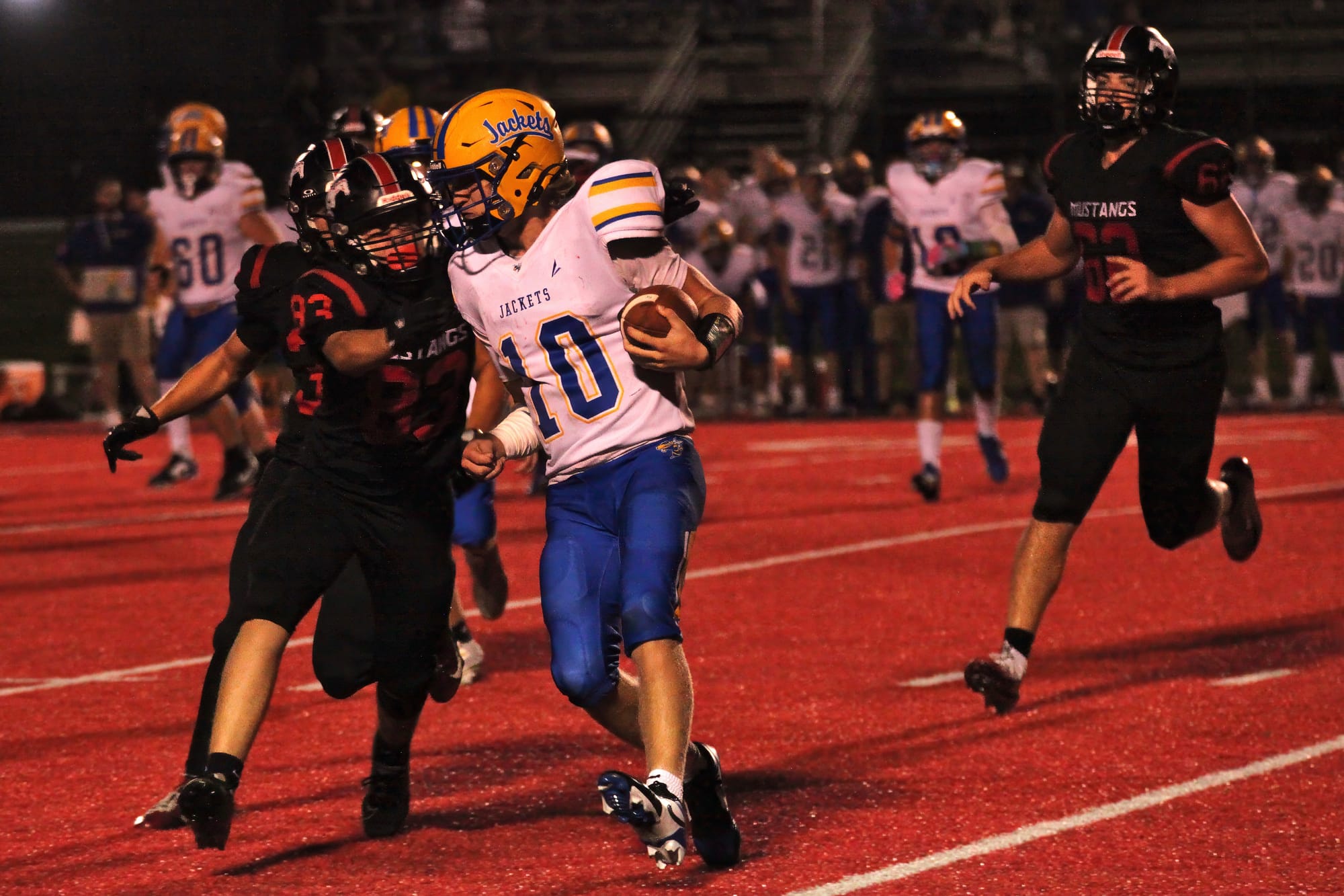 But there the momentum fizzled. Gilstrap’s next pass fell incomplete. With about 12 seconds left on the clock, on third down, Mitchell running back Mullis ran out of bounds to the 2. With a touchdown just 2 yards away, the Bluejackets went for it on fourth down, but the Mustang defense stuffed the run behind the line.