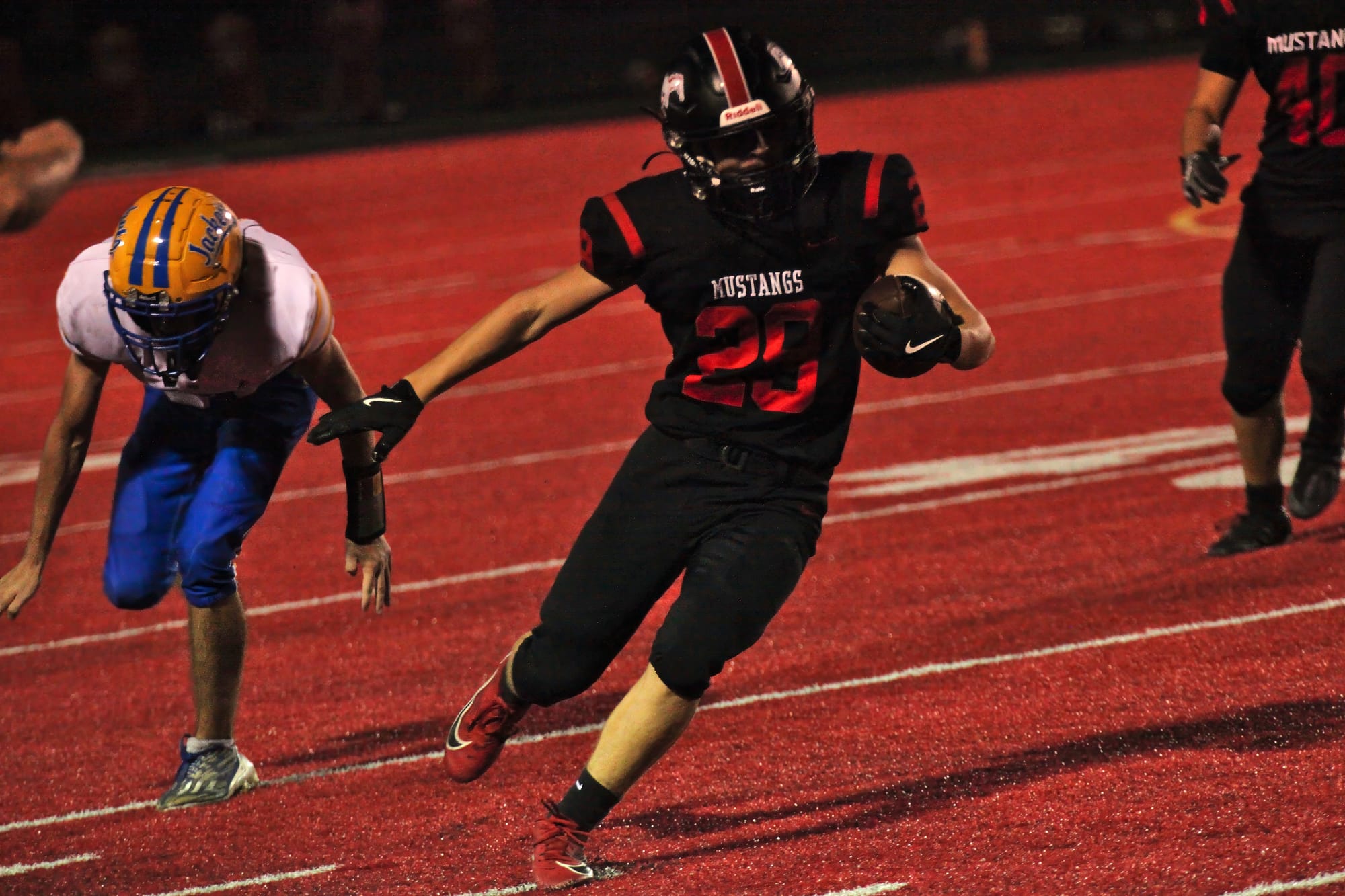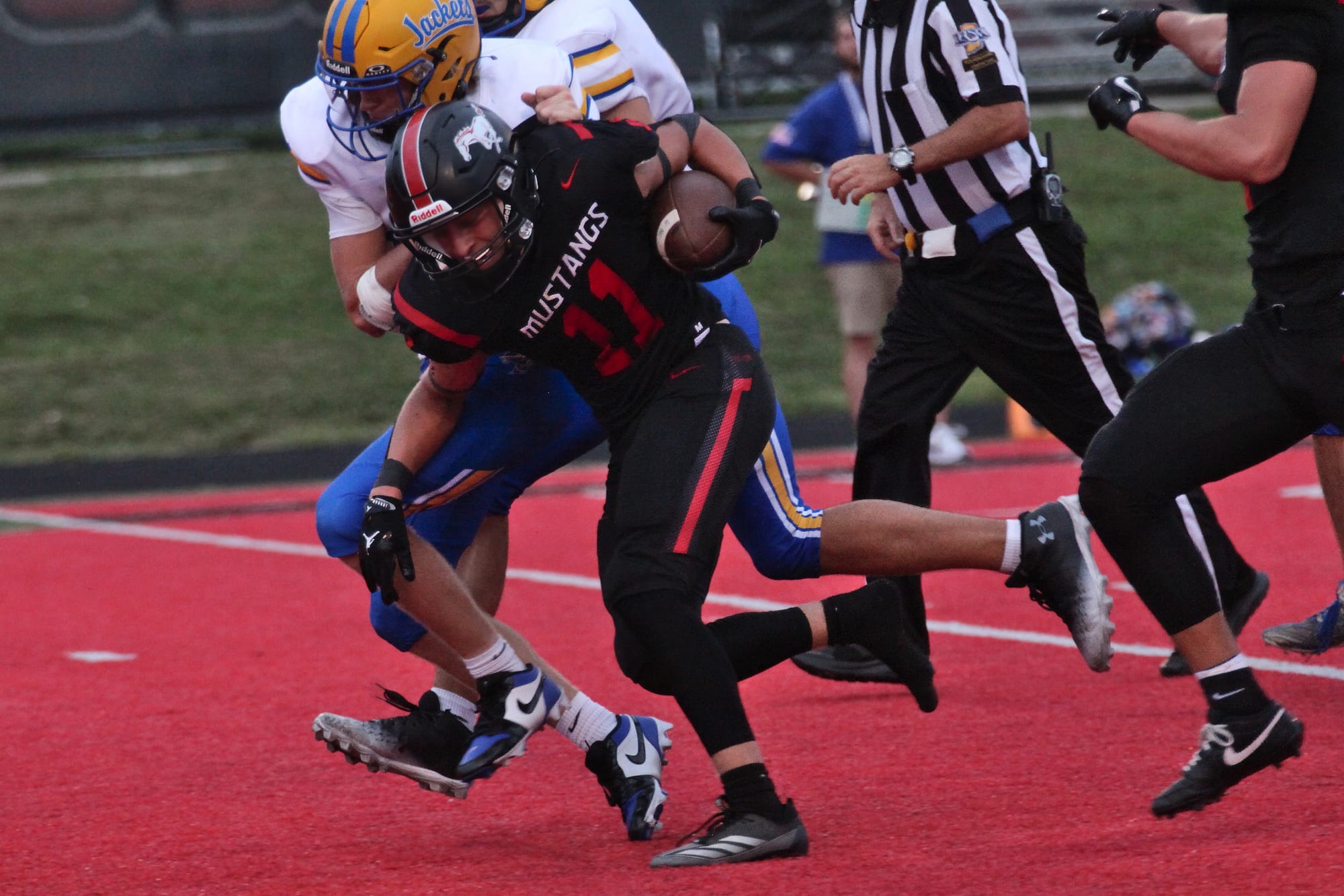 Friday’s 38-0 score in favor of the Edgewood Mustangs in their home opener against the Mitchell Bluejackets could have been even more lopsided. A couple of personal foul penalties against the Mustangs let the Bluejackets have the ball longer and in better field position than they would have had otherwise.