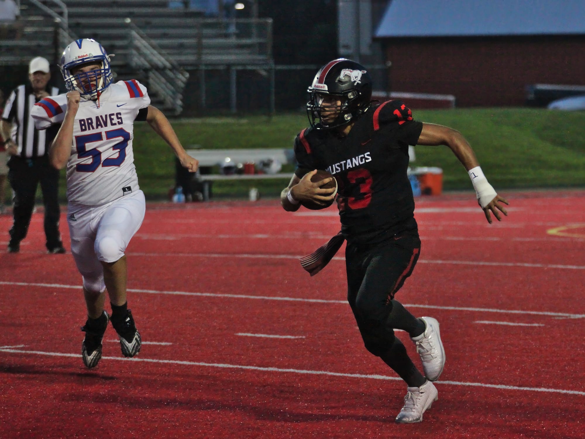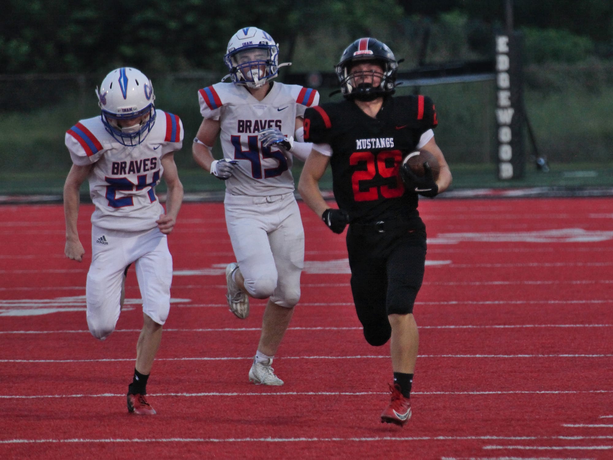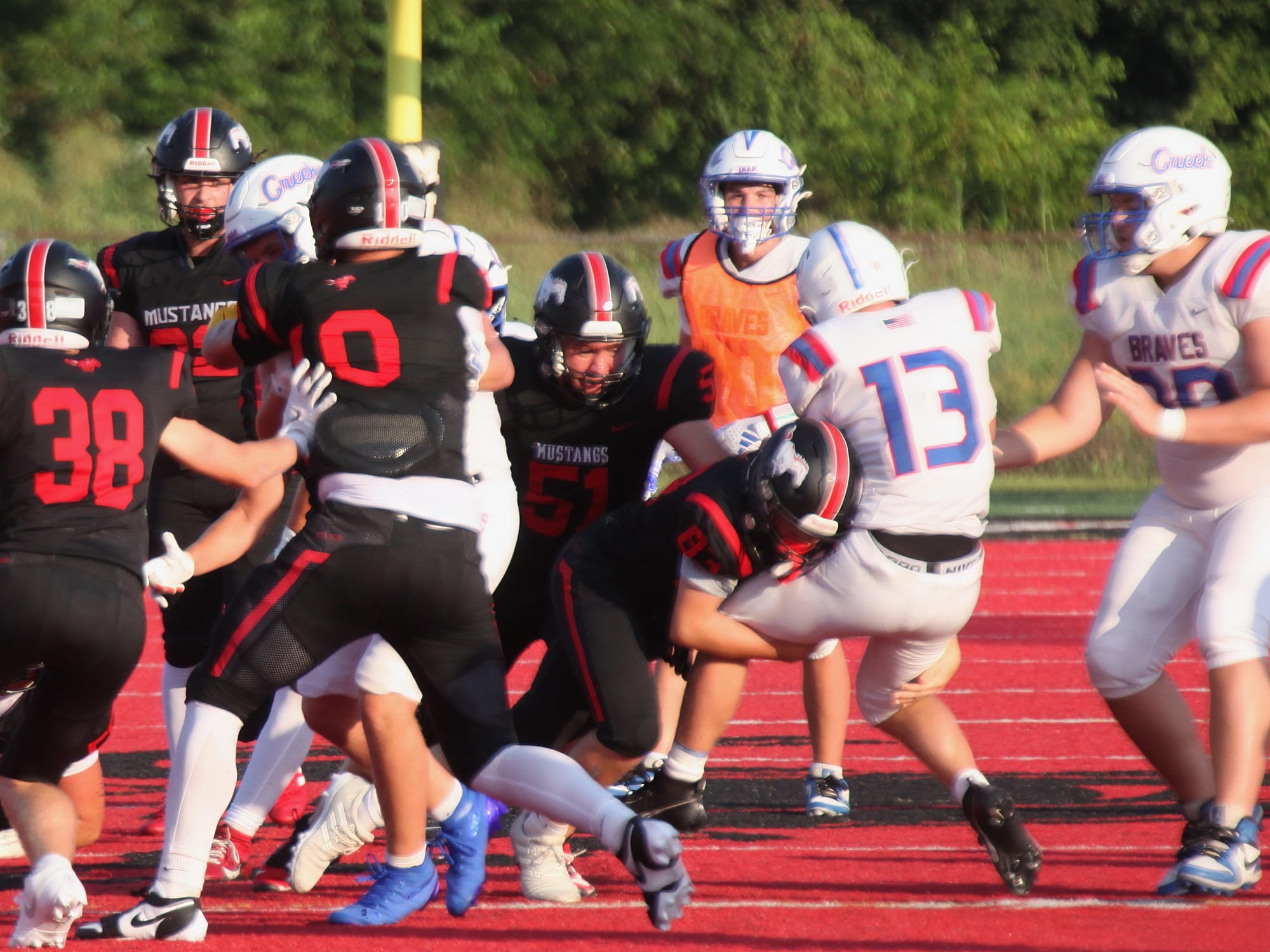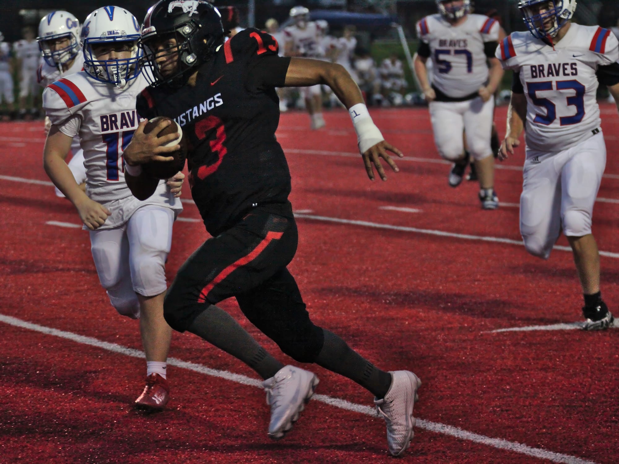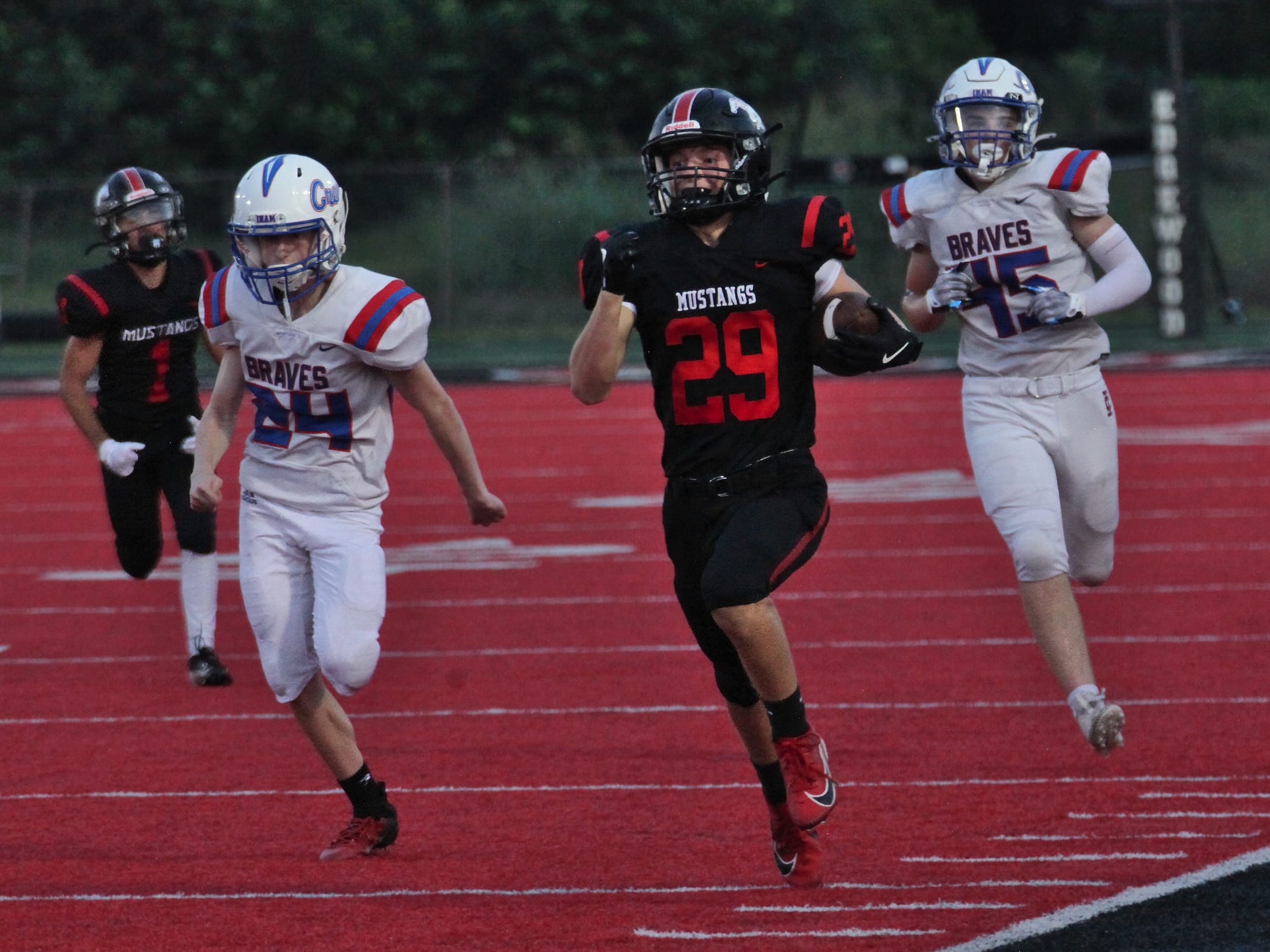 Still, the Braves of Indian Creek looked like the stronger side on Friday—the Mustangs gave up some long pass plays in the early action.