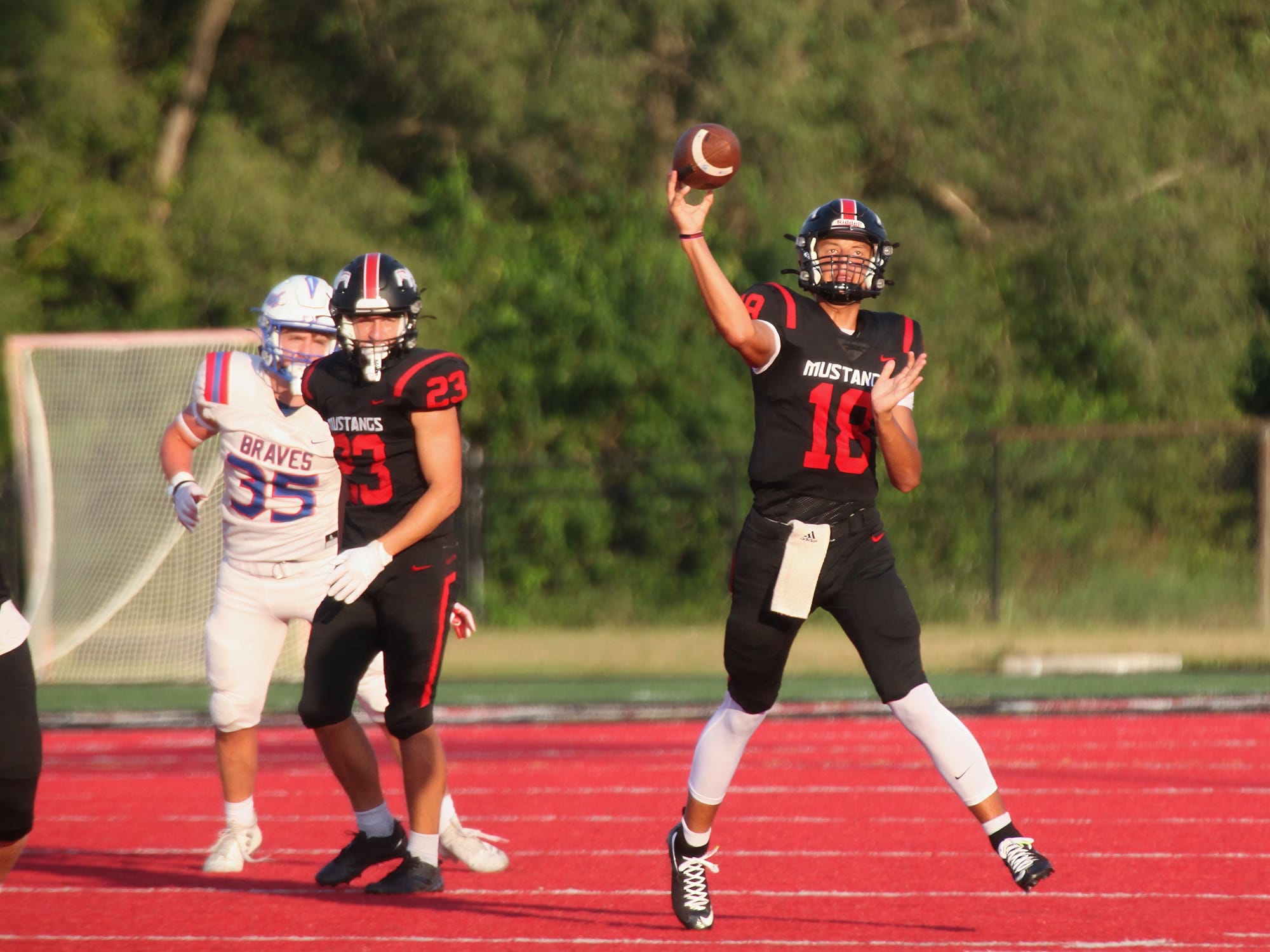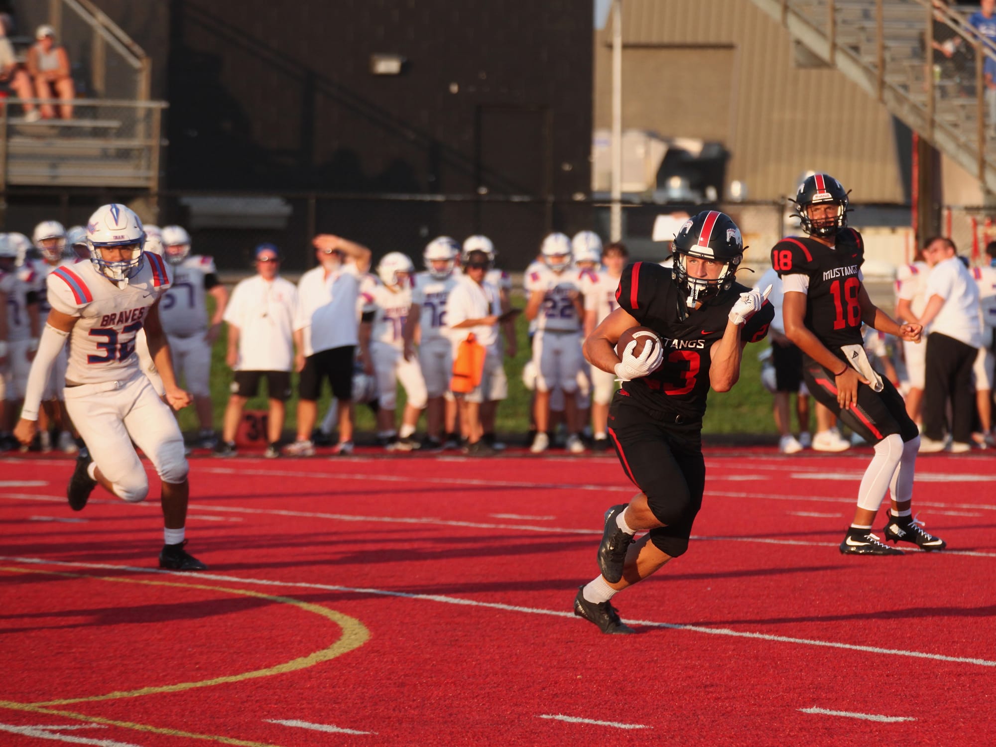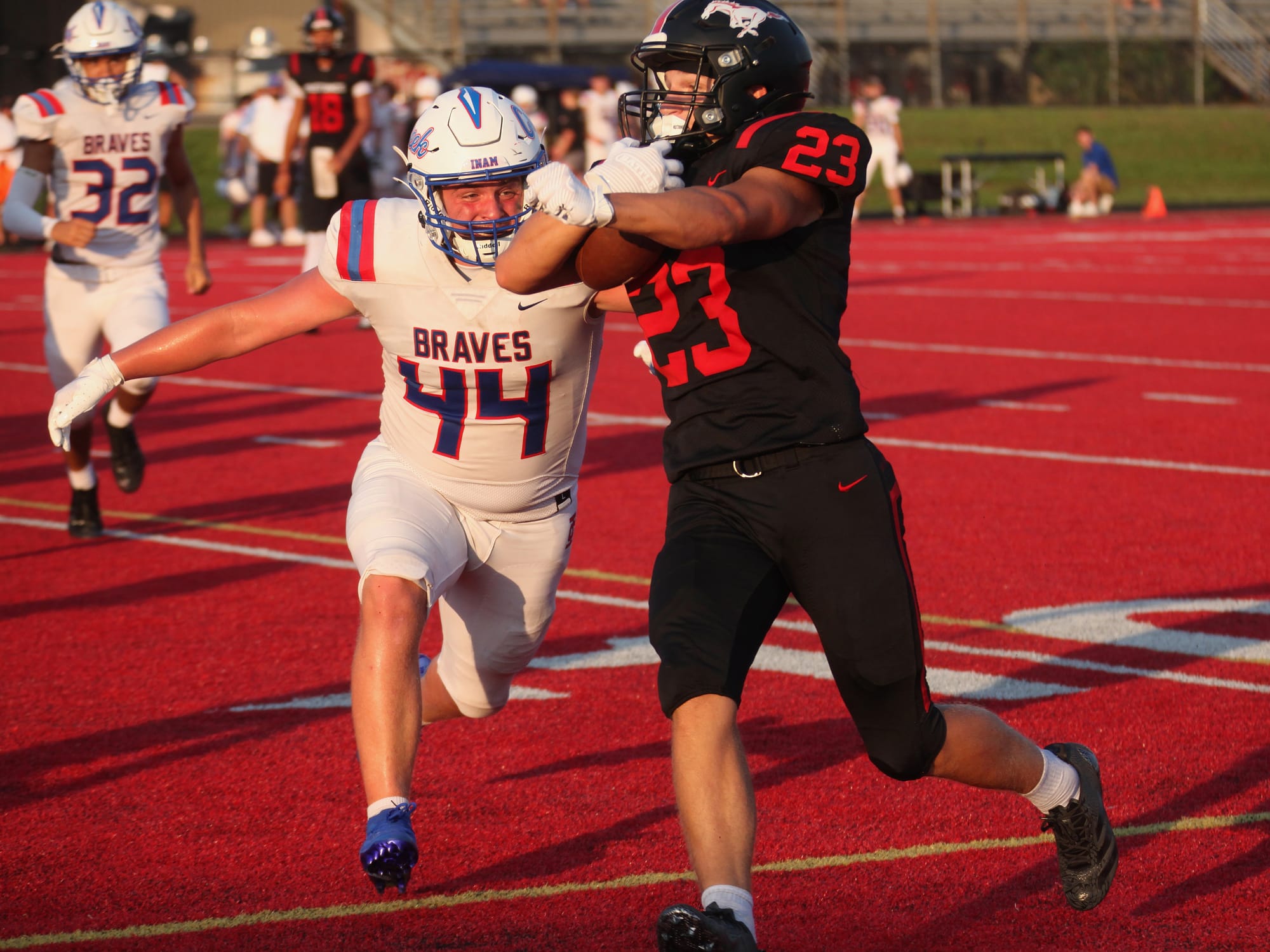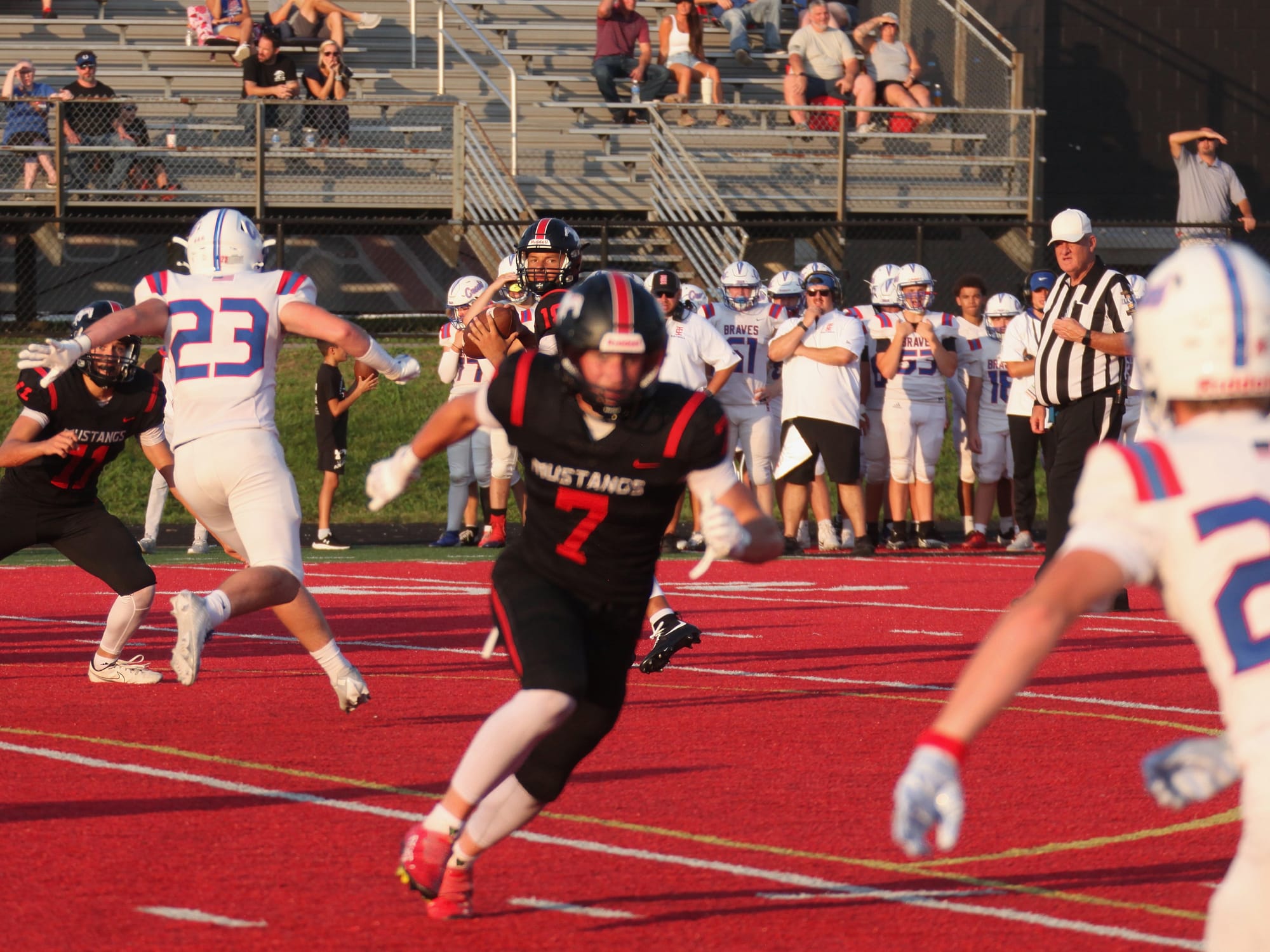 Still, the Braves of Indian Creek looked like the stronger side on Friday—the Mustangs gave up some long pass plays in the early action.