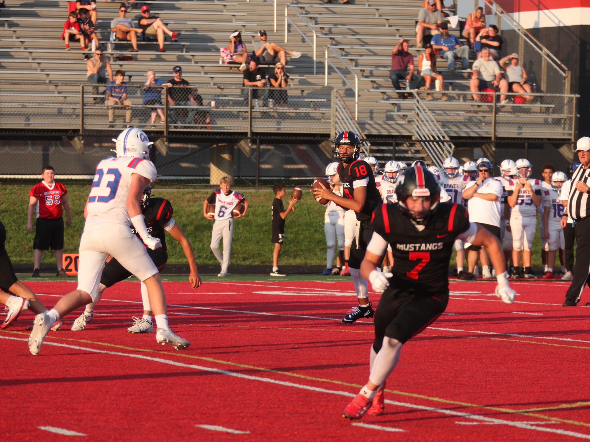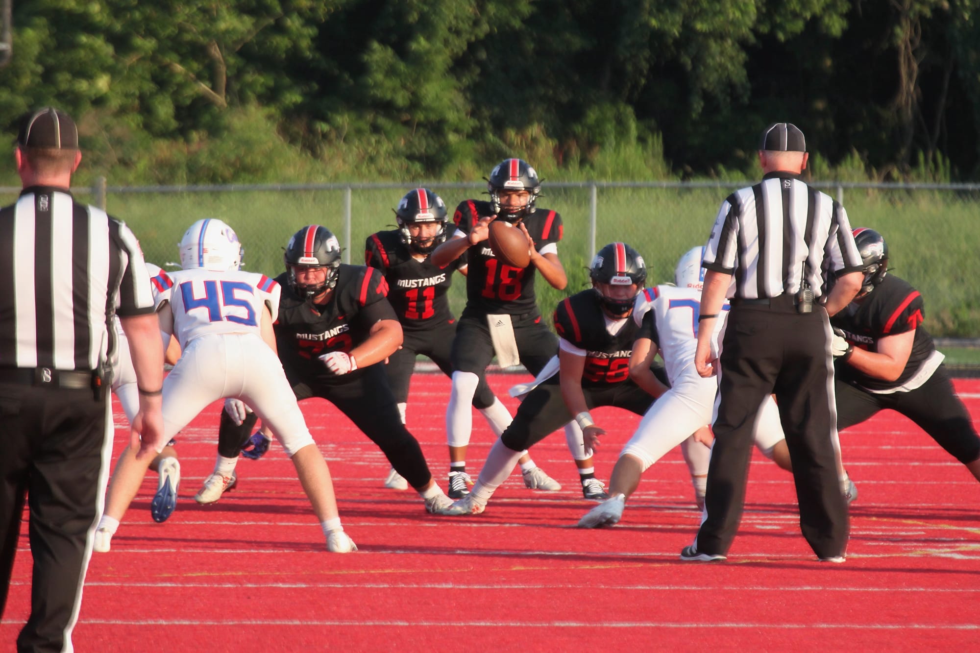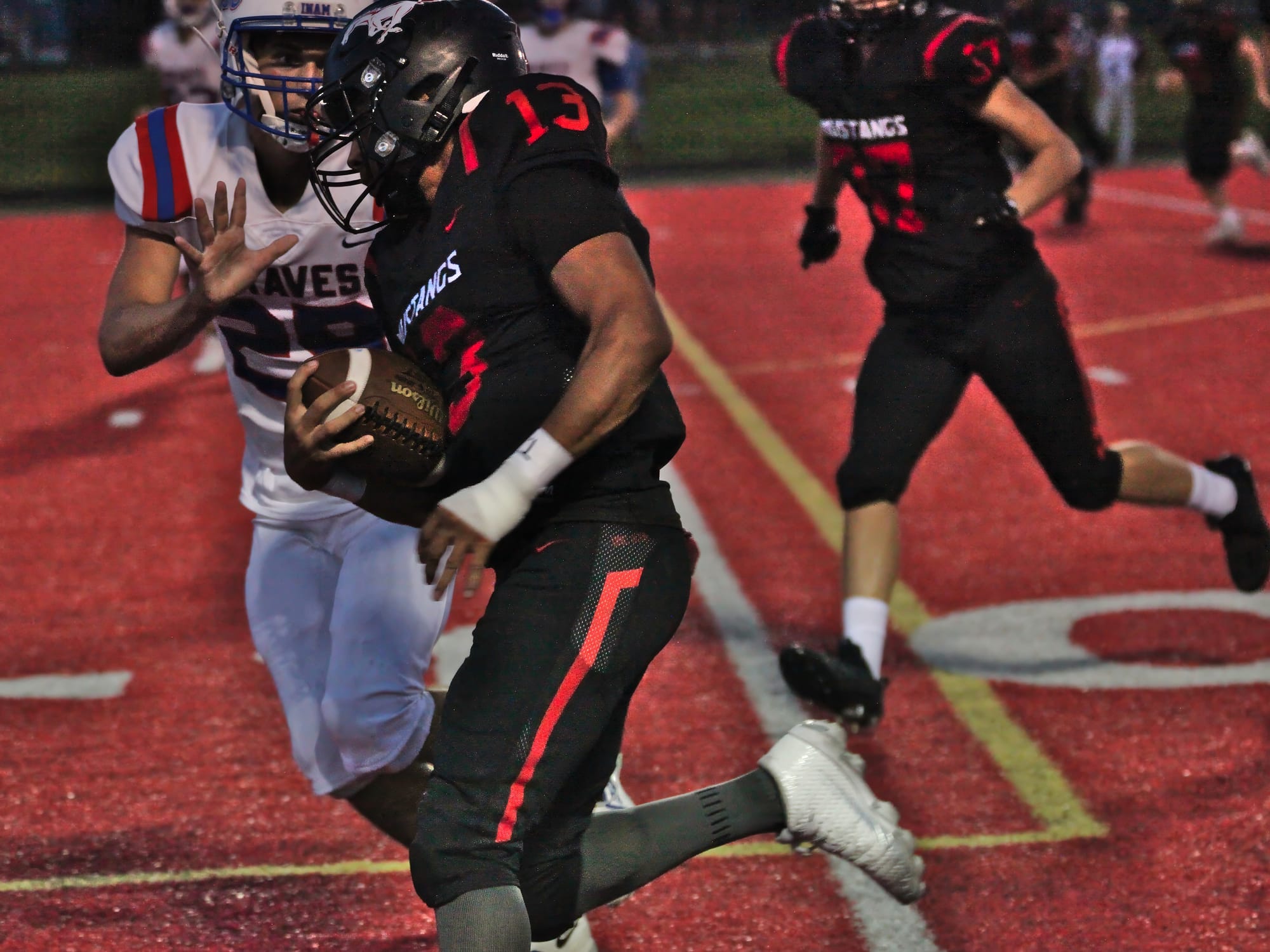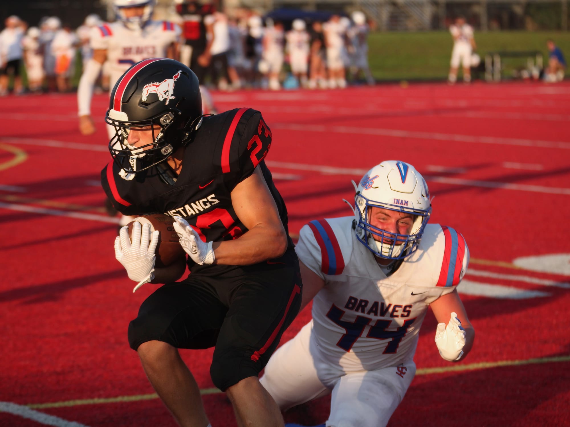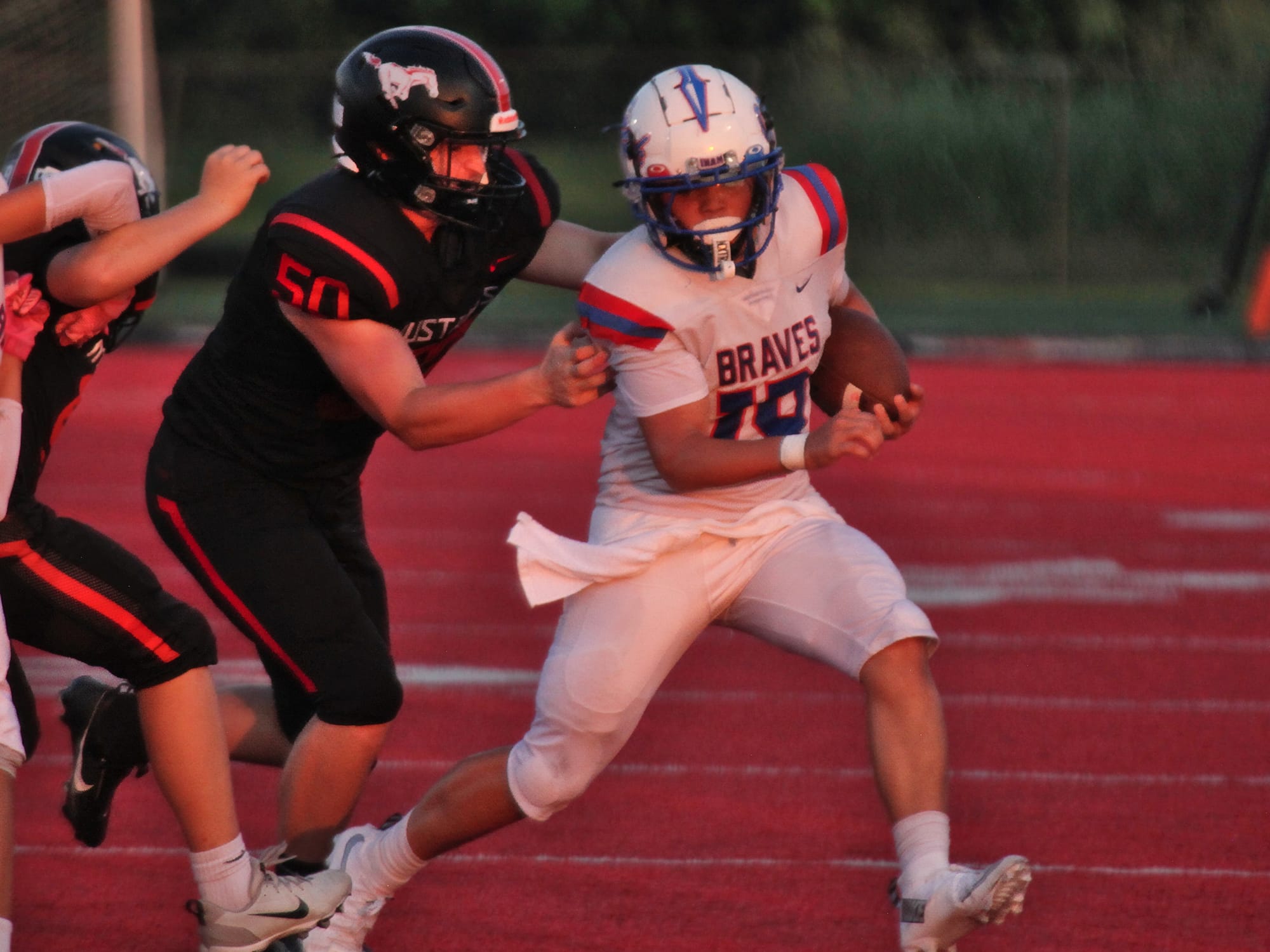 Still, the Braves of Indian Creek looked like the stronger side on Friday—the Mustangs gave up some long pass plays in the early action.