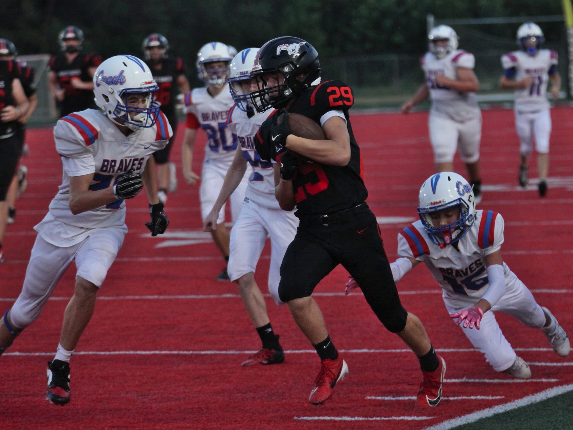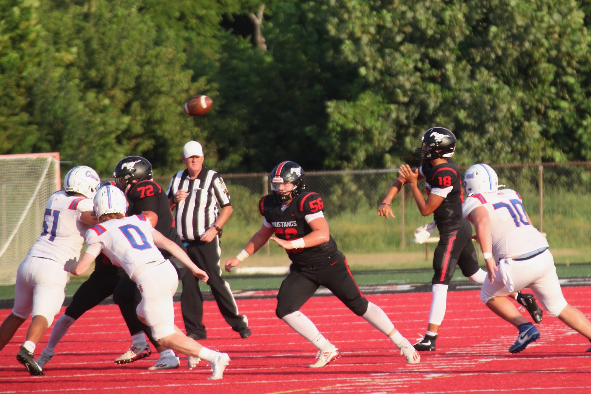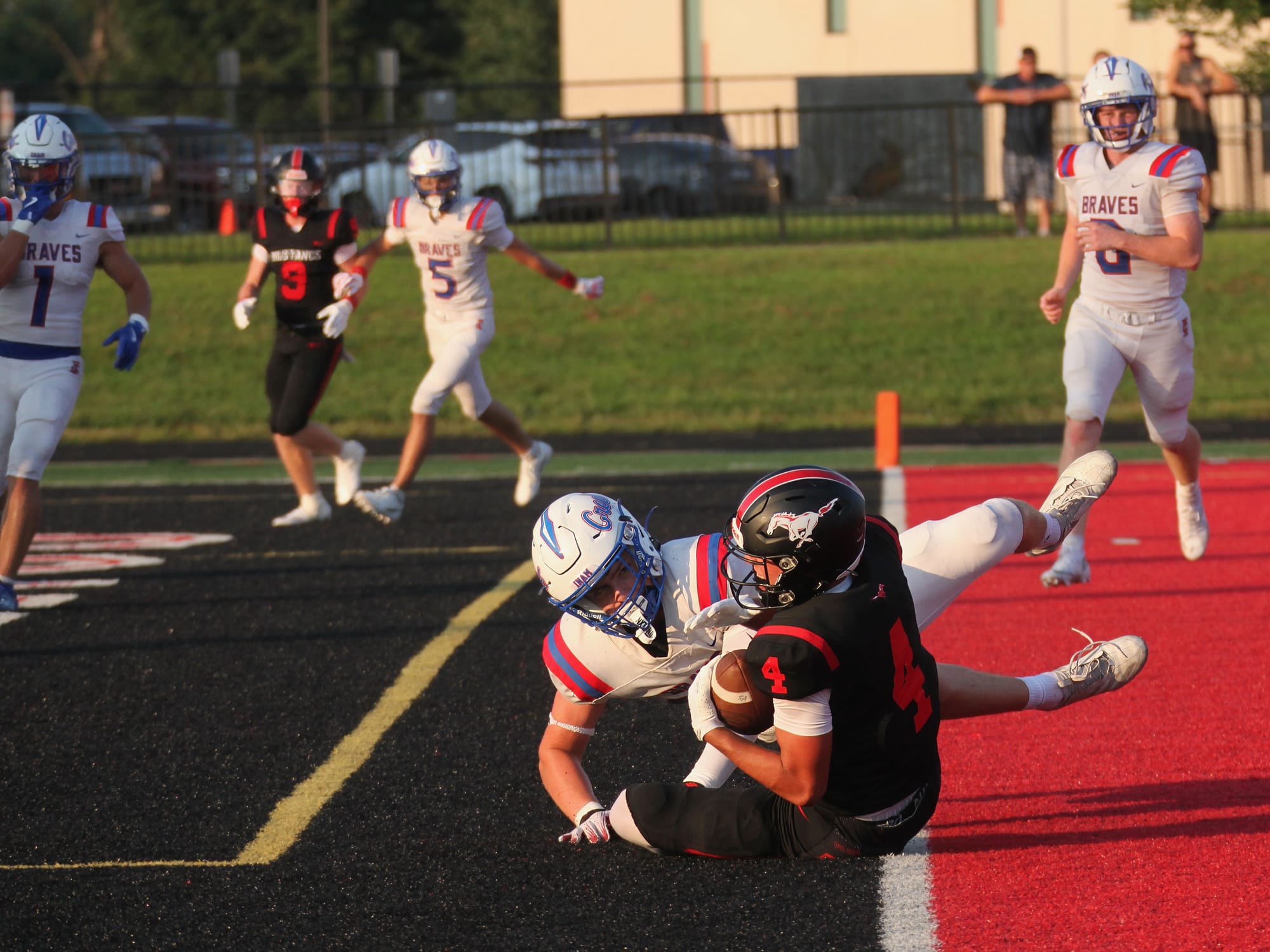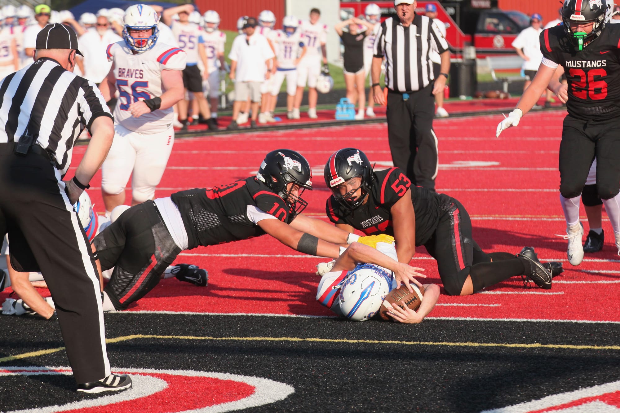 Still, the Braves of Indian Creek looked like the stronger side on Friday—the Mustangs gave up some long pass plays in the early action.