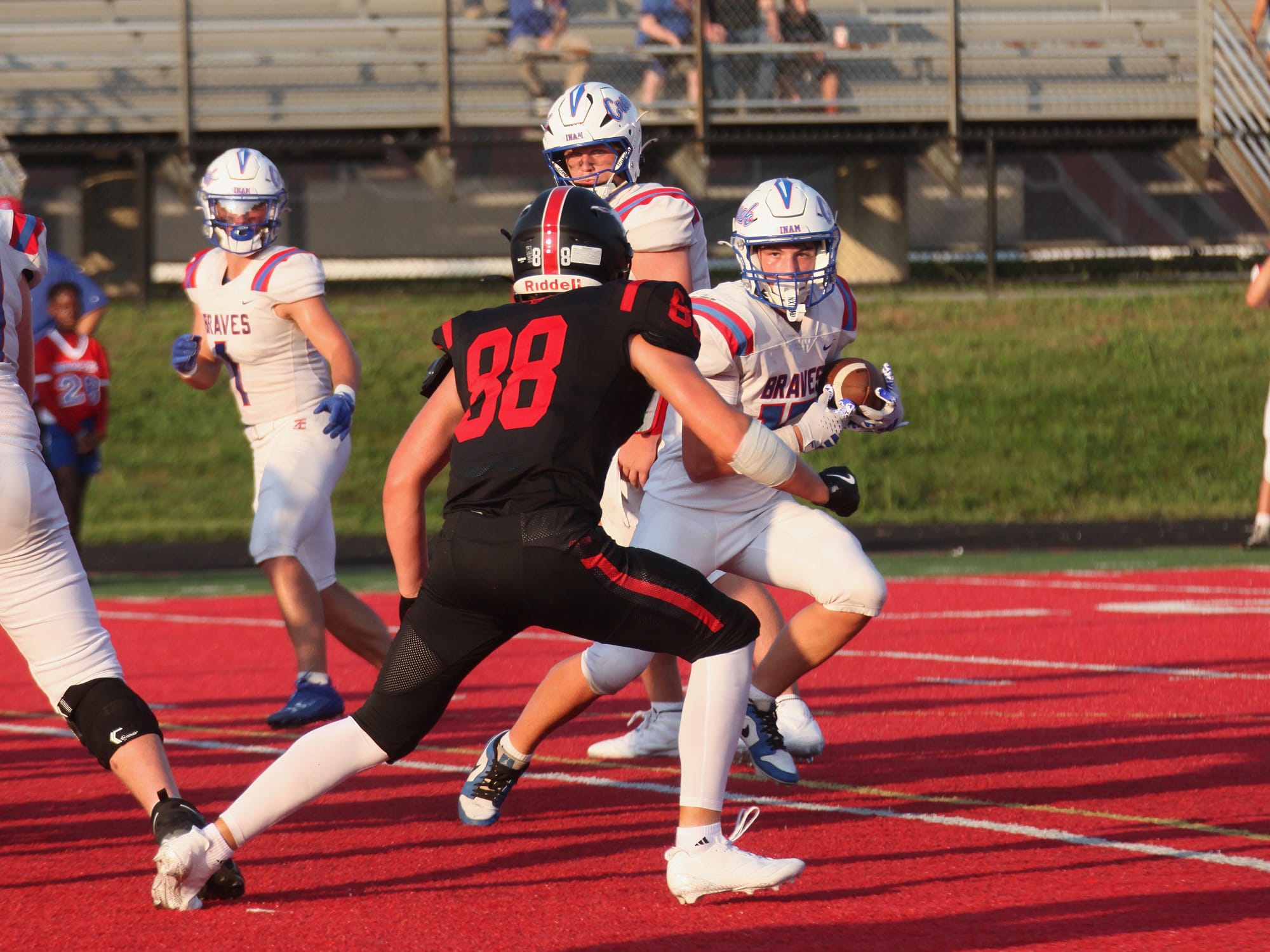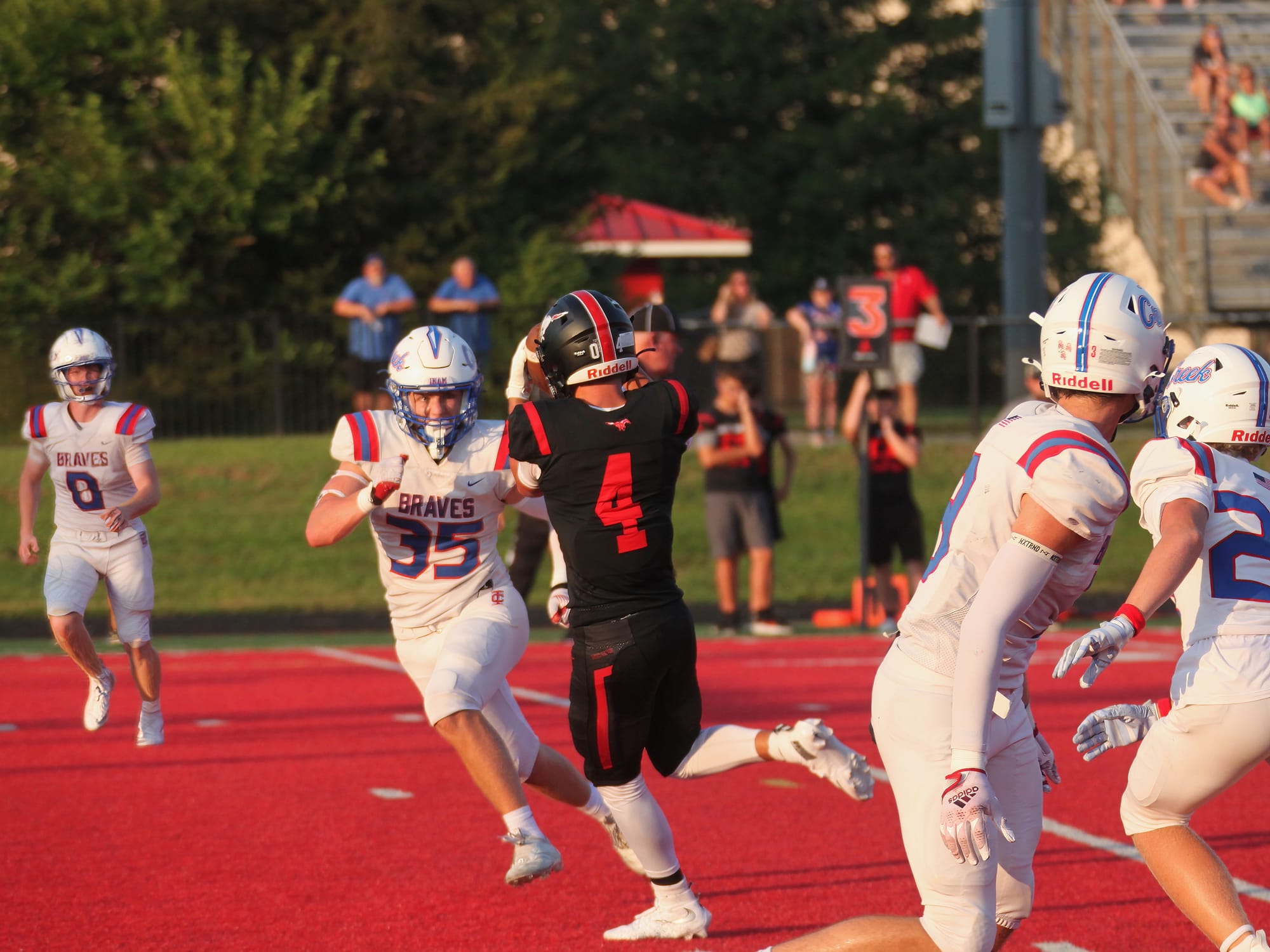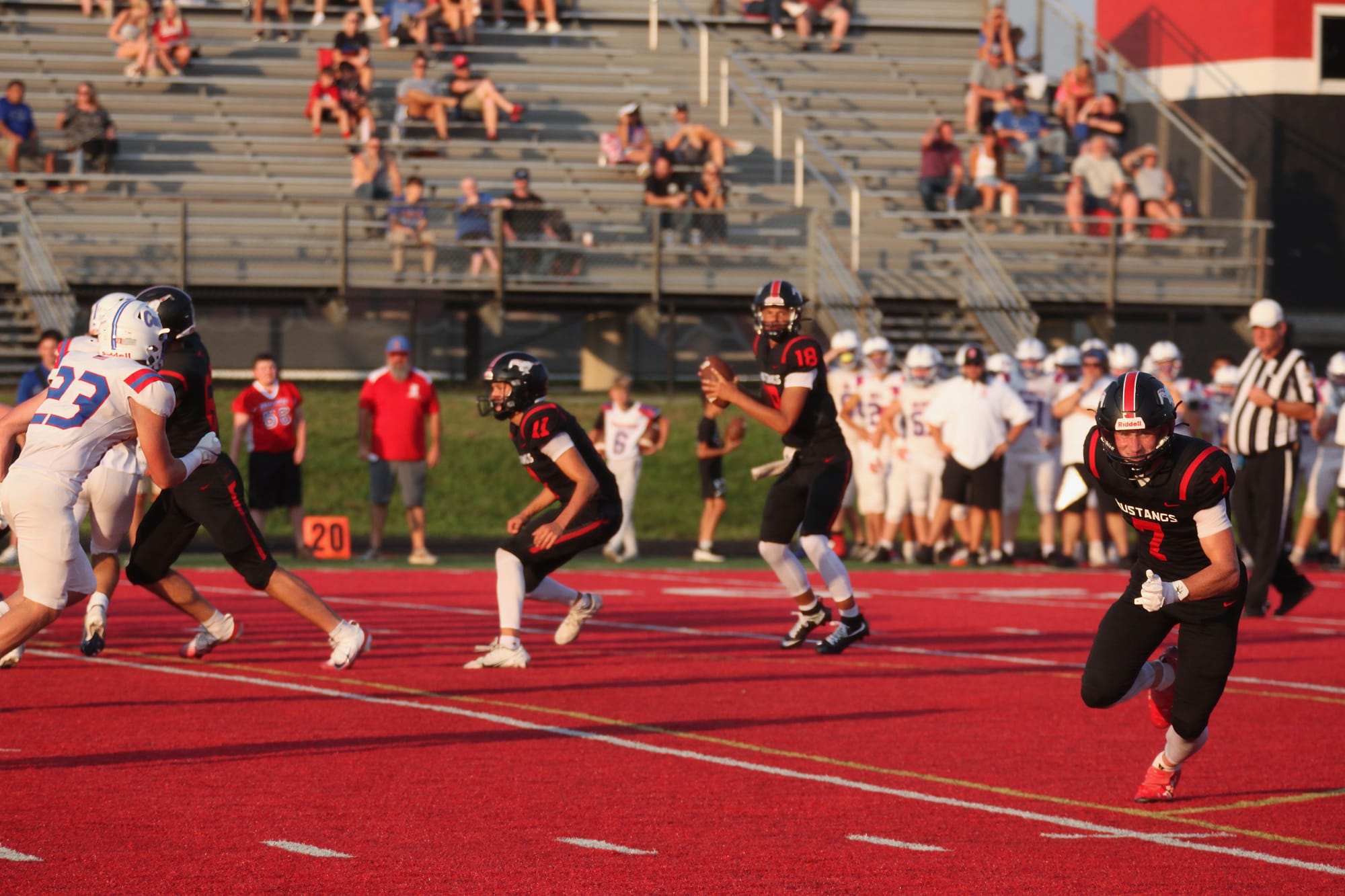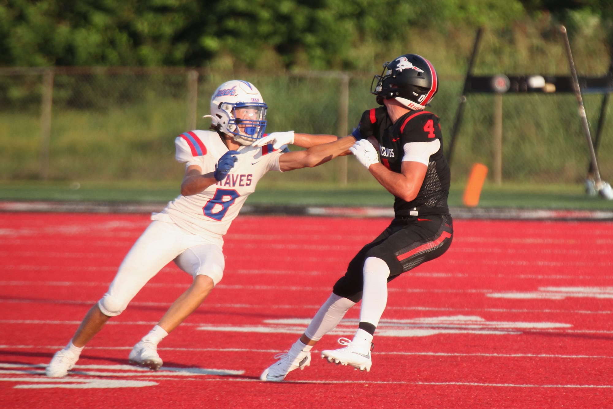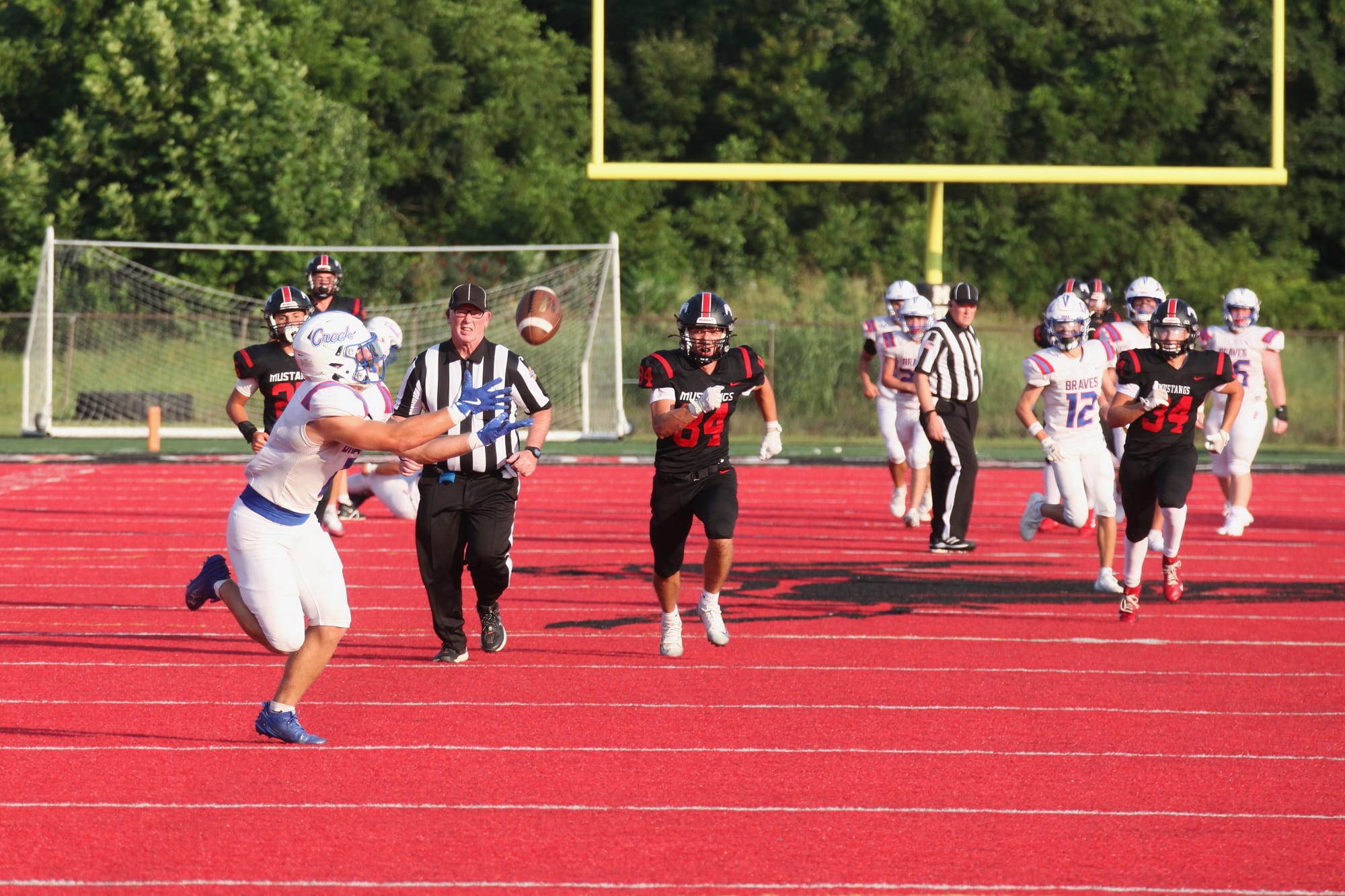 Still, the Braves of Indian Creek looked like the stronger side on Friday—the Mustangs gave up some long pass plays in the early action.
