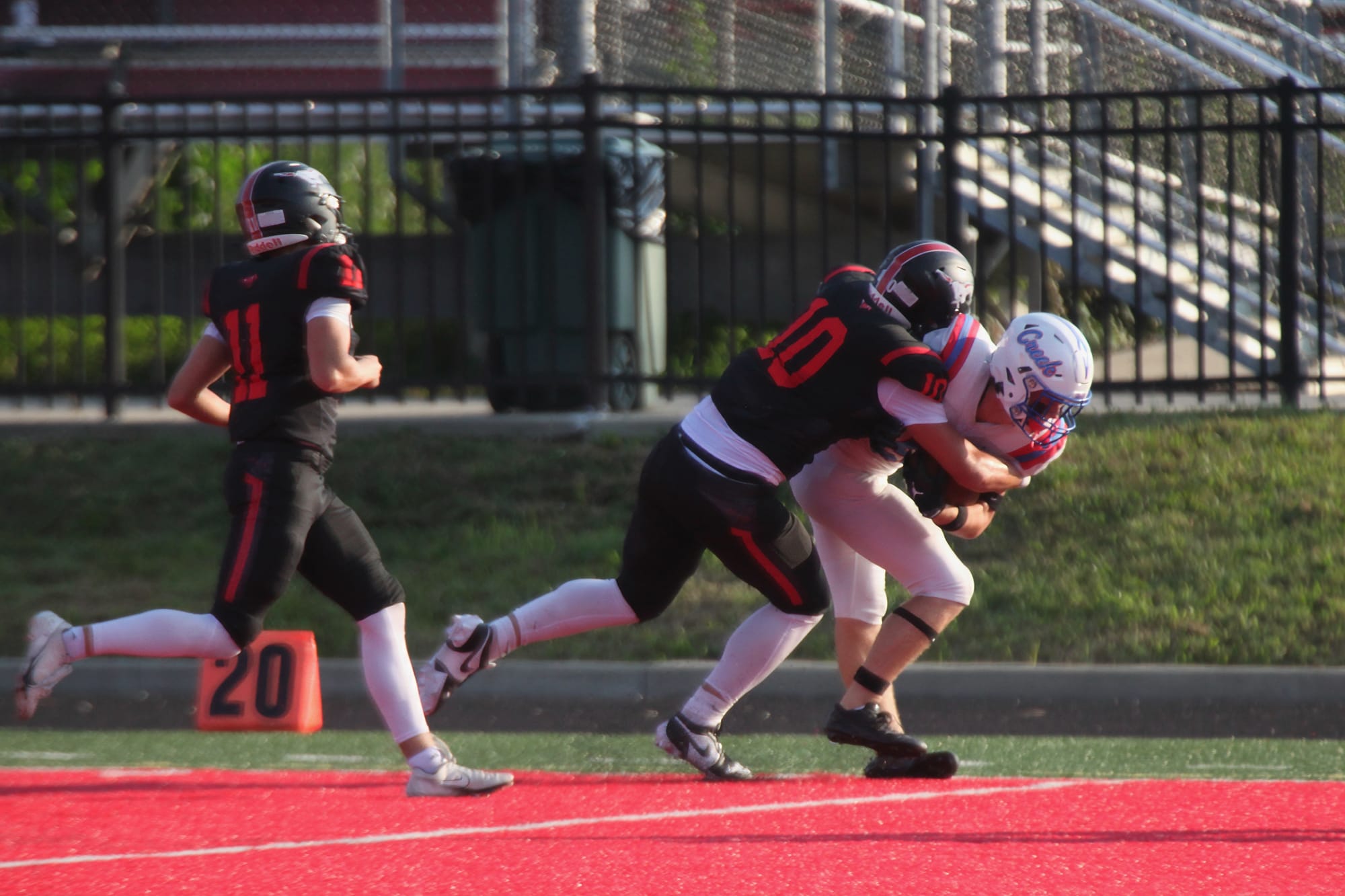 As lopsided as last year’s sectional game was, Edgewood coach Scott Fischer told The B Square that it was even worse on the field. Compared to his squad’s performance in last year’s sectional game, Fischer told The B Square after Friday’s scrimmage, “I thought we played much better on the defensive side of the ball. Still got a lot of stuff to clean up on offense.”