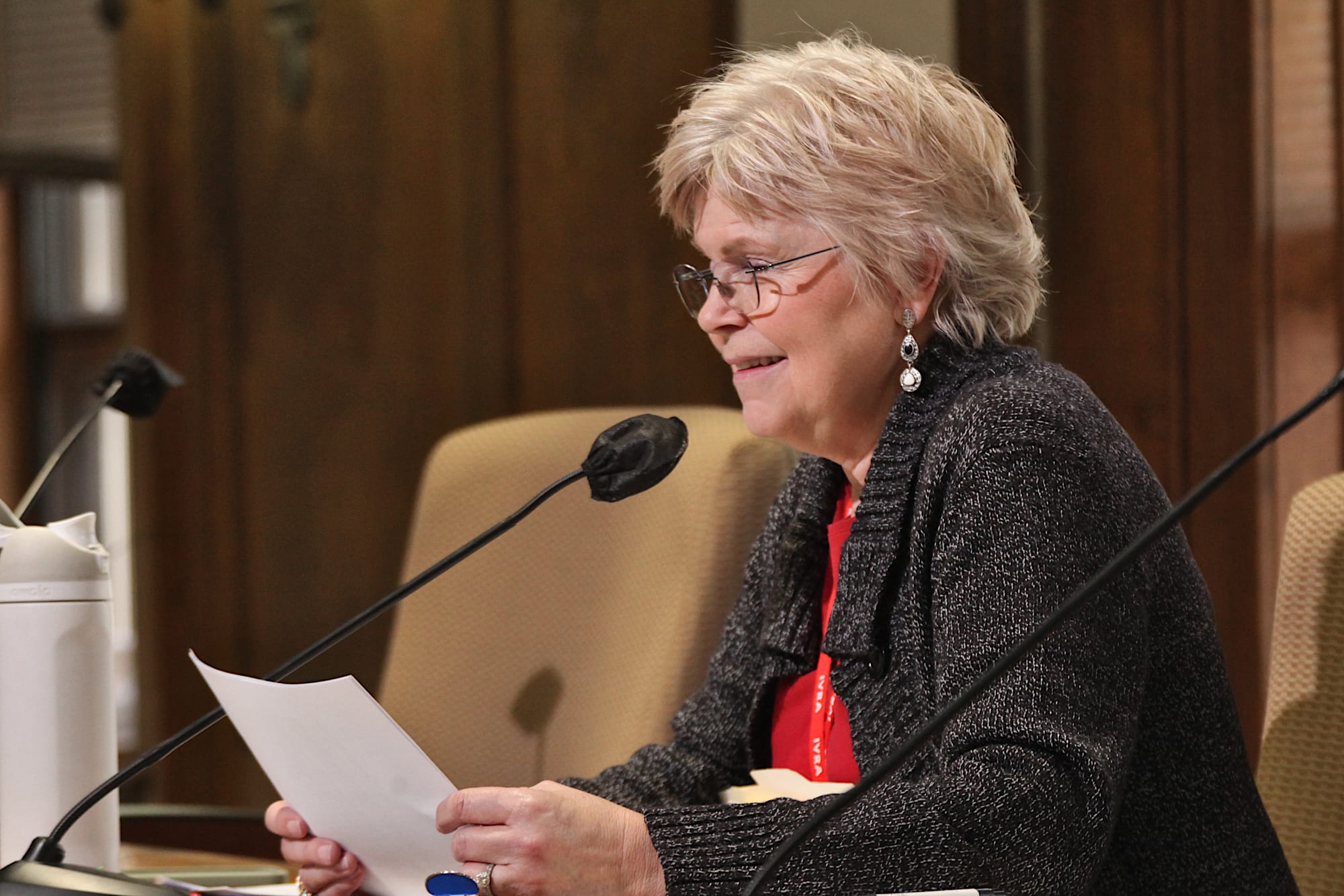 Wheeler read aloud some prepared remarks recounting her time serving as election supervisor, which included eight elections.