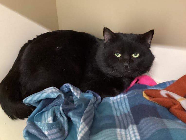 Yes, The B Square’s featured animals are normally dogs. But today’s featured animal is a cat, because it is a good reminder that the city’s shelter also takes care of kitties. This very, very sweet boy is a domestic shorthair. Here’s what the shelter staff have written about Doofenshmirtz: