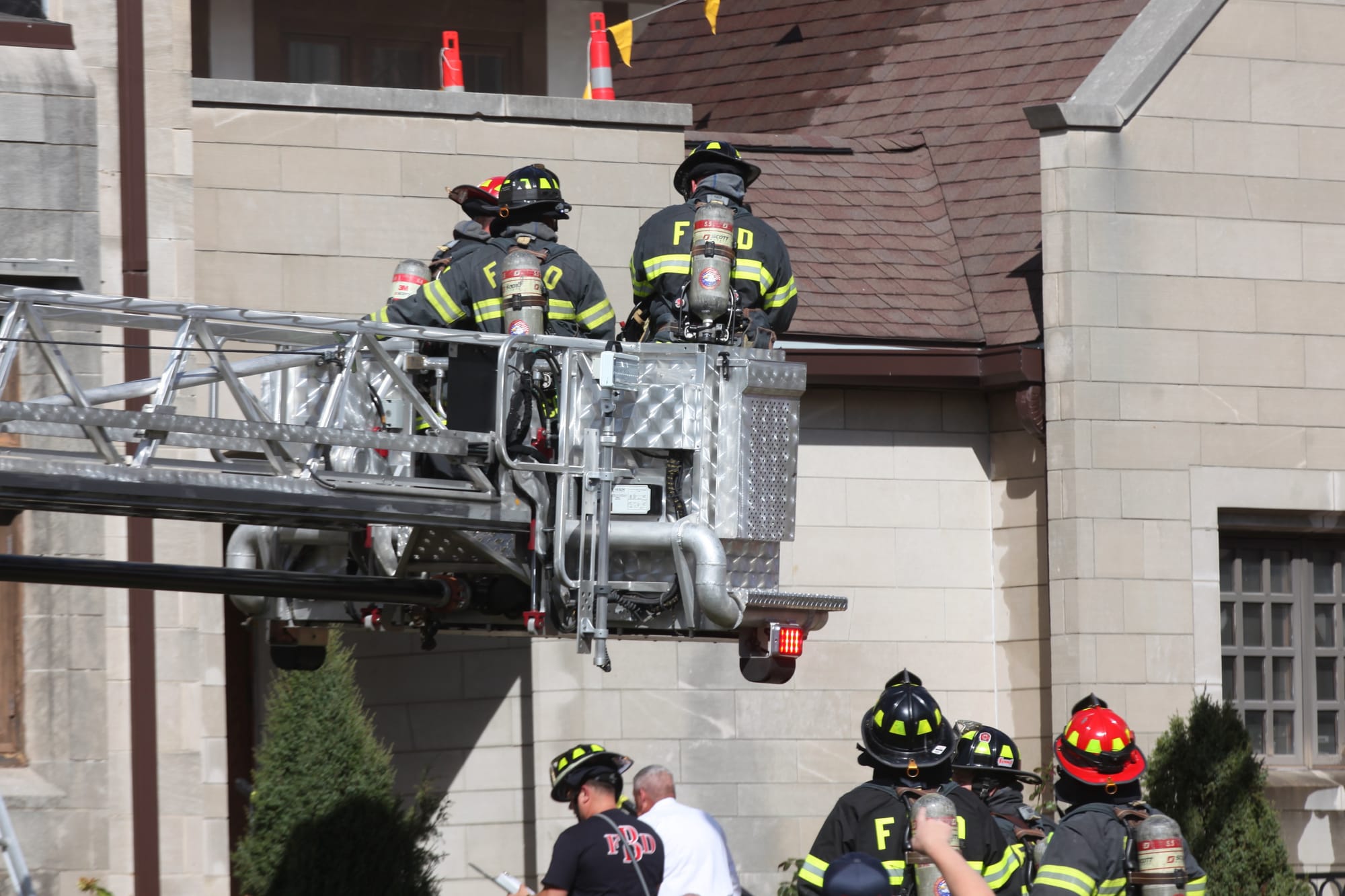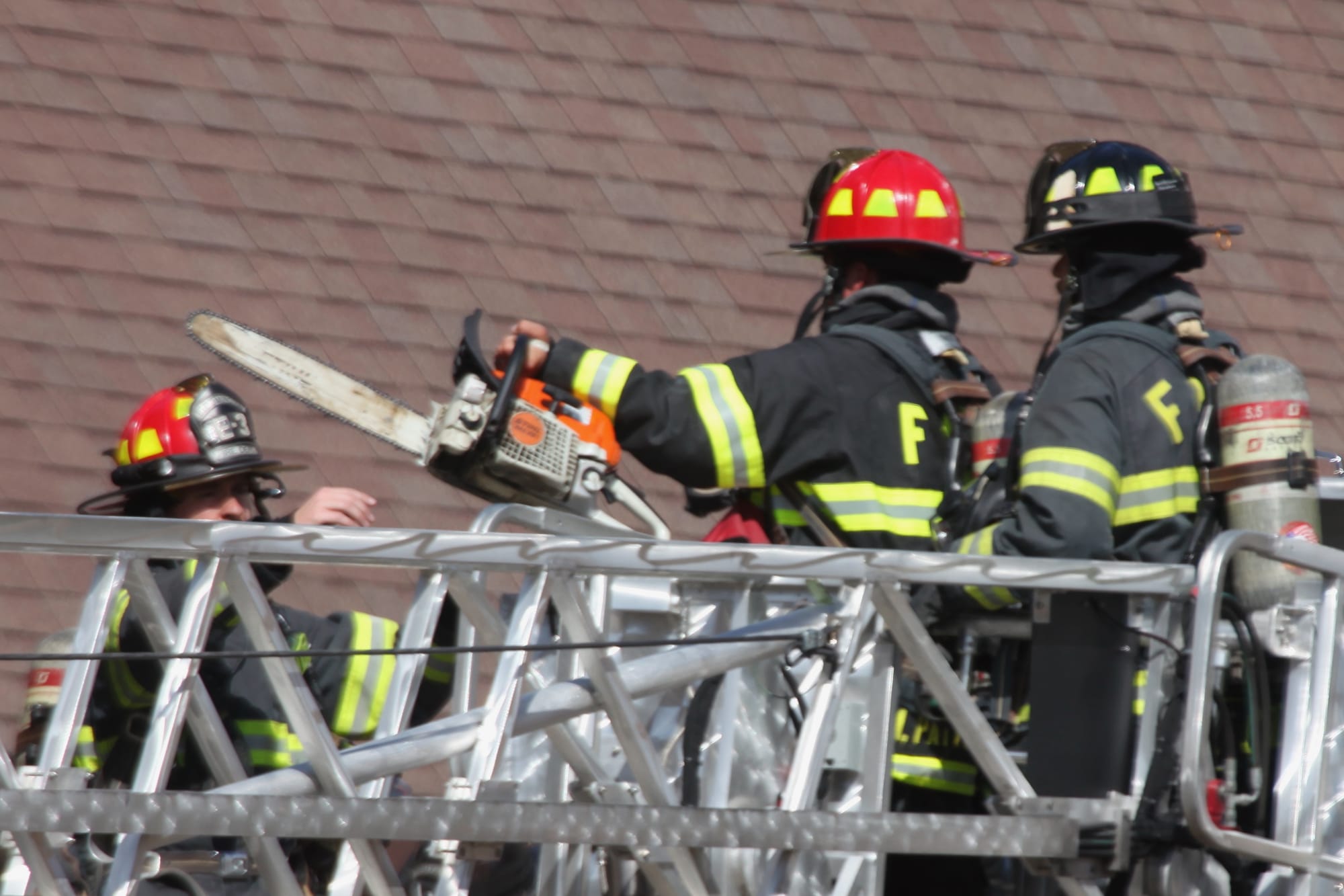 At one point during the firefighting operation, firefighters radioed for a chainsaw to ventilate the roof and give them access to the area between. The tower platform from an aerial apparatus was used to bring a chainsaw up to firefighters working there. Levin said he had not verified that the saw was actually used—as chainsaw sounds were not clearly audible from the street.