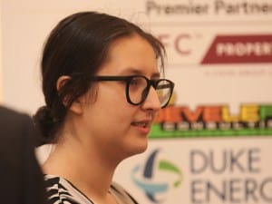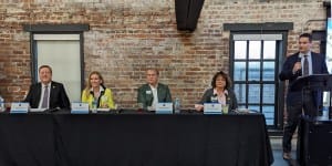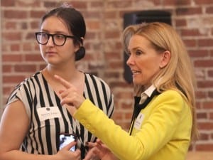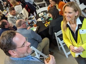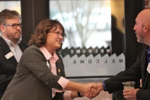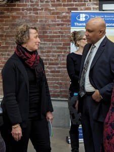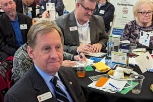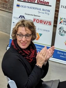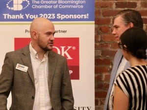 Thomson’s question, which she had written out on one of the cards distributed for that purpose, was read aloud by the Bloomington Chamber’s CEO, Eric Spoonmore: