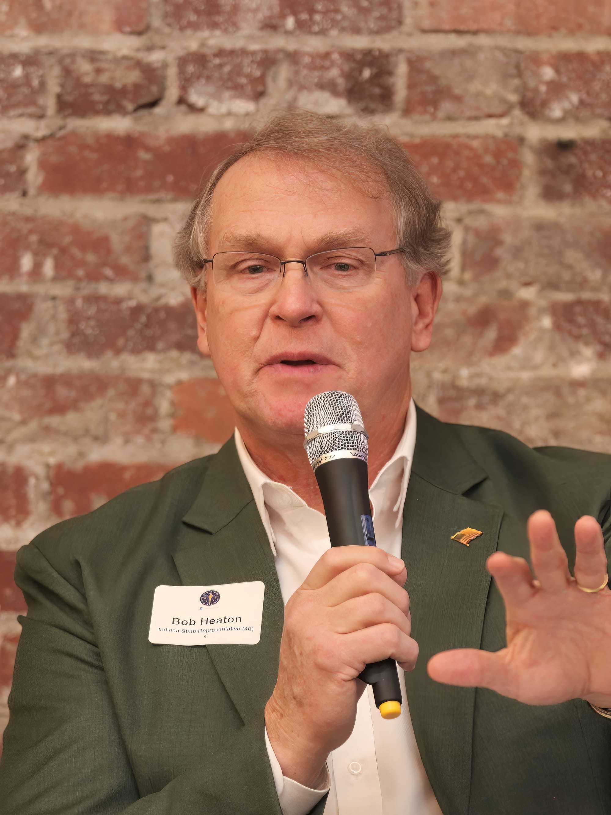 Taking a crack at the question in turn were the four state legislators who attended the event: Eric Koch (District 44 state senator), Shelli Yoder (District 40 state senator), Bob Heaton (District 46 state representative), and Peggy Mayfield (District 60 state representative).