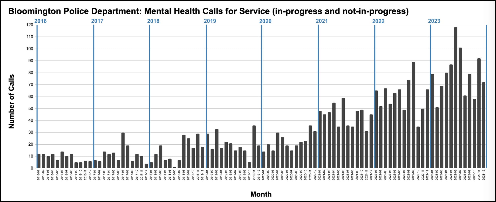 BPD finished 2023 with an average monthly mental health call volume of almost 80.