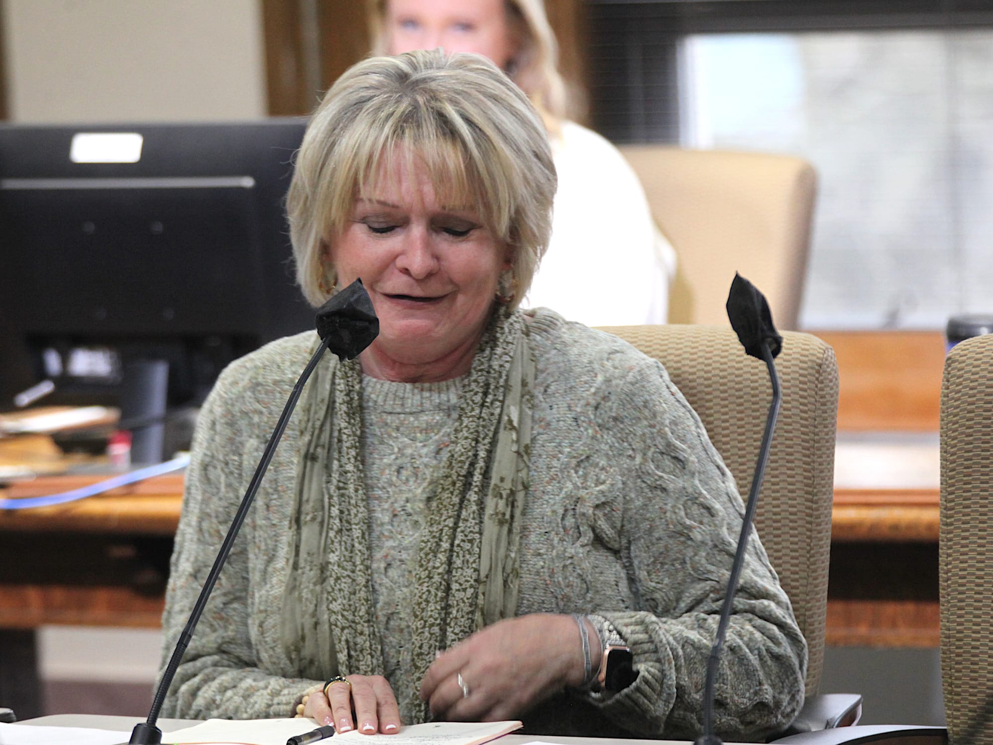 The way Githens cued up Stafford’s speaking turn made it plain she wanted to start a new chapter: “I was chatting with my friend judge Stafford recently, and I was going to ask her if she would start the meeting off with just a few brief sentences.”