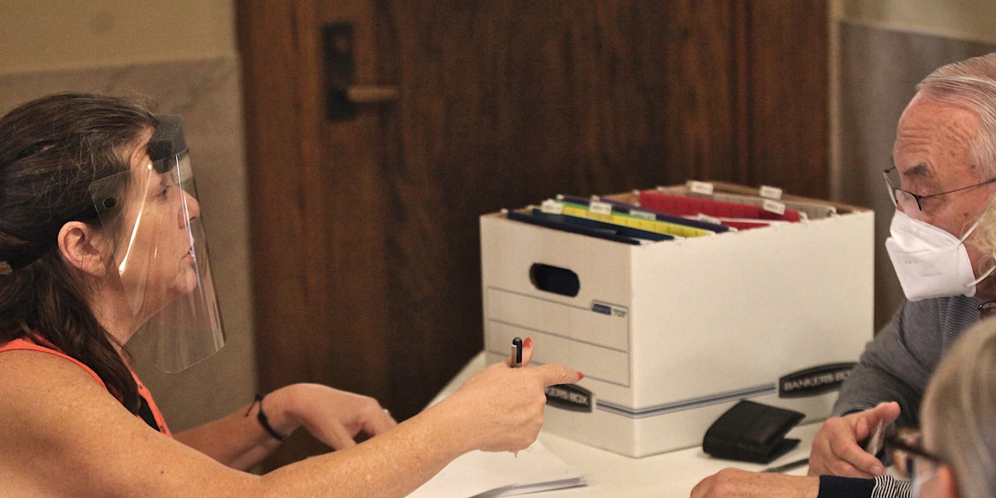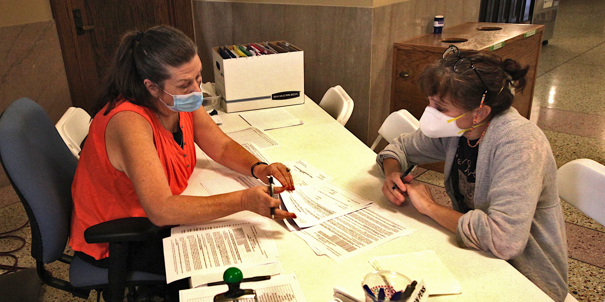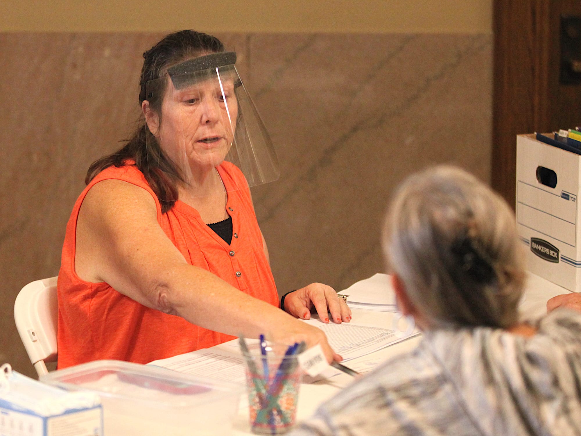 Monroe County auditor Cathy Smith and deputy auditor Chis Muench were on hand in the courthouse lobby to walk the two through the steps of signing their own papers and collecting signatures from their neighbors.