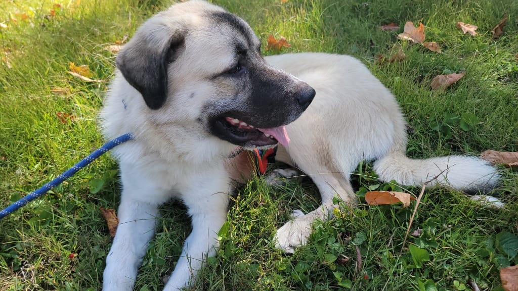 I wonder how this dog barks. Does he say “Bow wow!” or “Woof!” or ... “Ruff!” This very, very good boy is an Anatolian shepherd that does not seem to have aspirations to run for city council. Here’s what the shelter staff have written about Andy.