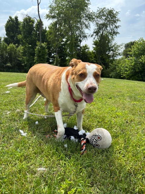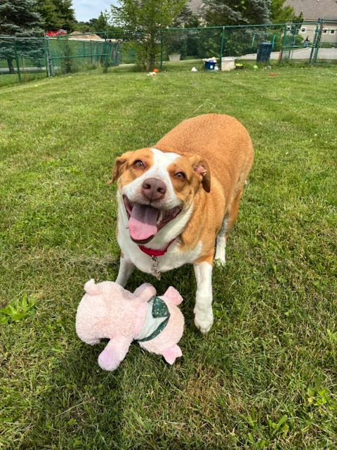 I am a cute fun-loving girl looking for that special someone to take me home! I am really good at a lot of things. My previous owner said I get along with all people, big and small! I also LOVE playgroup! I started out so very shy, but within a day I became the life of the party. I like to chase and tackle with my buddies, and I've done well with male and female dogs alike. I'd love to have a dog buddy in my home!