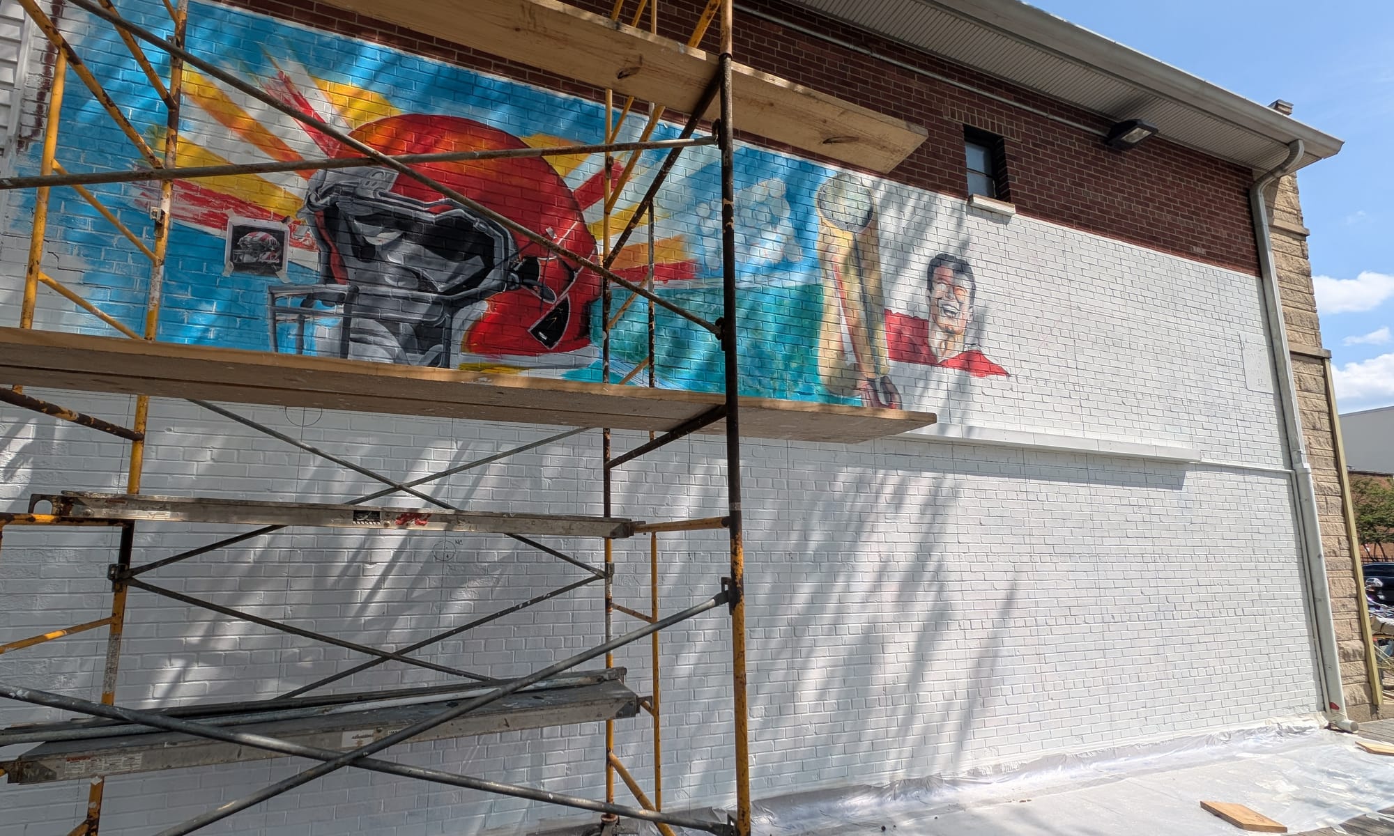 Crimson Investments, LLC now owns the Bicycle Garage building. The shop has moved to 1112. S. Morton on the B-Line south of Cardinal Spirits. The ”Black Lives Matter” mural has been whitewashed over and a new IU football-themed mural is currently in progress. Past coverage of the mural here and here. (Dave Askins, April 17, 2026)
