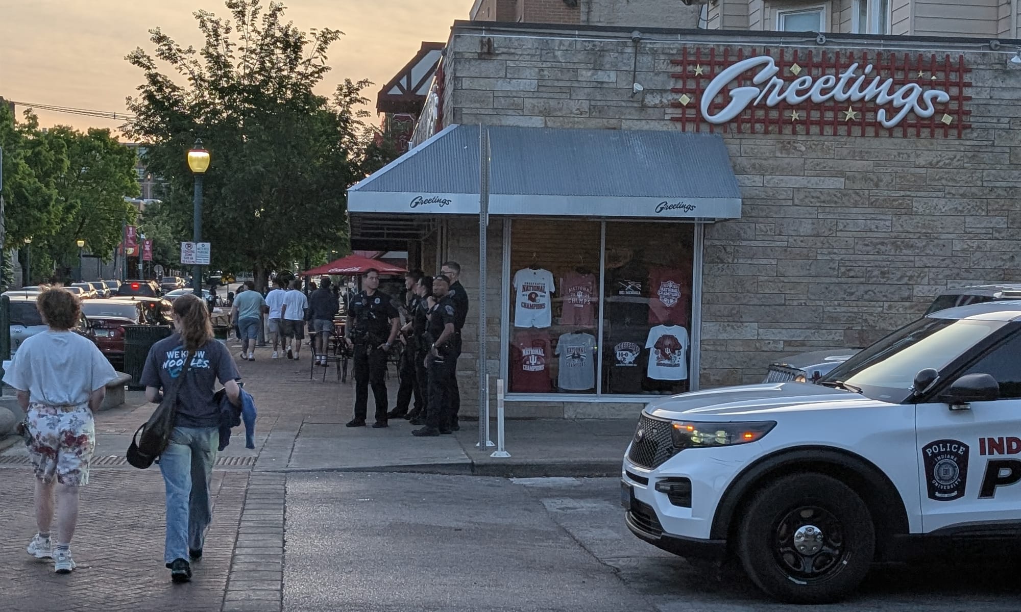Five Bloomington police officers maintain a presence on the block where the night before a shooting took place that put one person in the hospital.