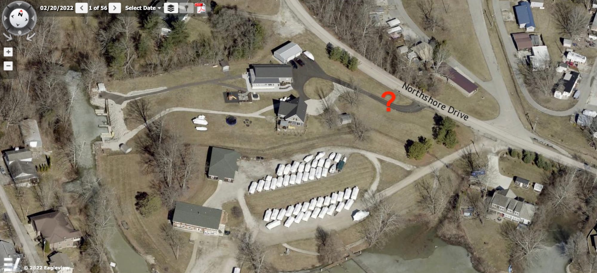 The driveway permits, issued in error, led to the current configuration, where there’s an illegal driveway just to the west of the marina’s driveway. Under the zoning condition from 2007, making things right would require the other driveway cut to be eliminated, and a segment of driveway to be constructed parallel to Northshore Drive linking up with the marina’s driveway.
