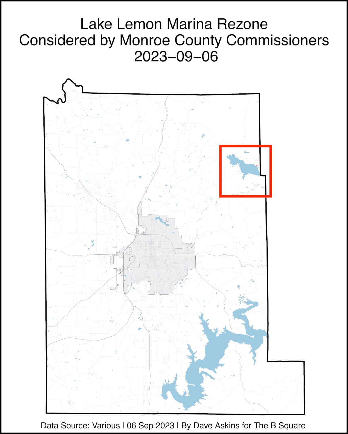 A rezone request for Lake Lemon Marina was denied by Monroe County’s three-member board of commissioners at its Wednesday meeting.