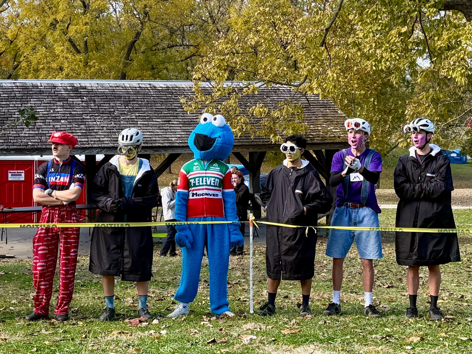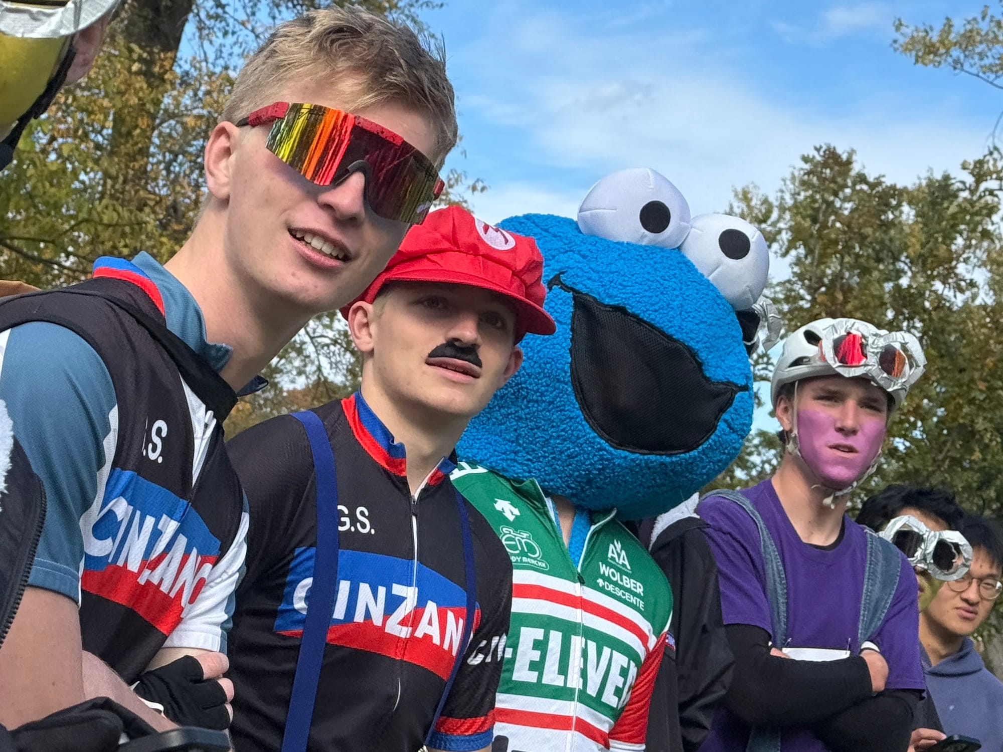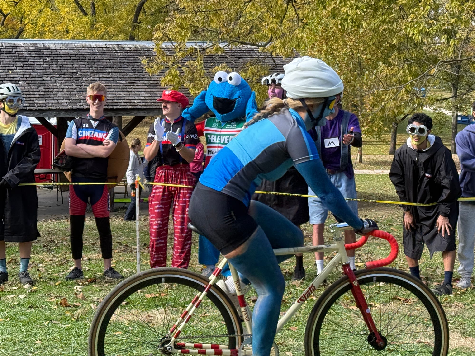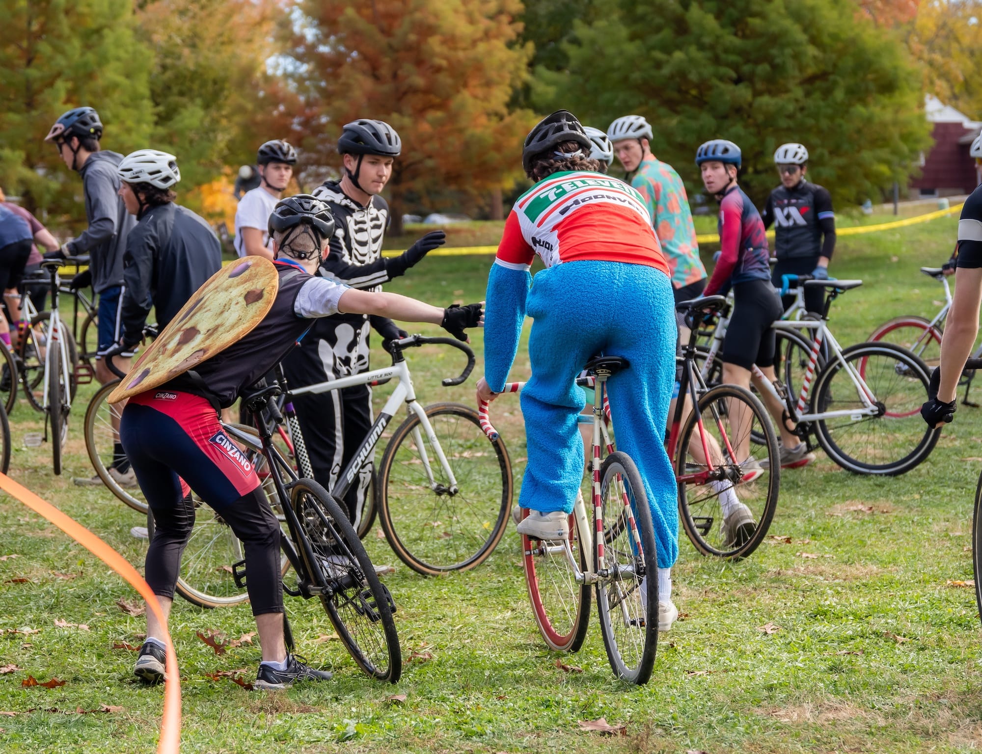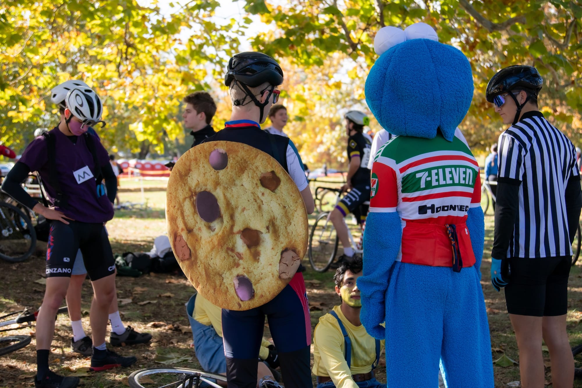 It’s a two-person team relay, where riders make several exchanges between loops. Many riders wore costumes—it was the day after Halloween.