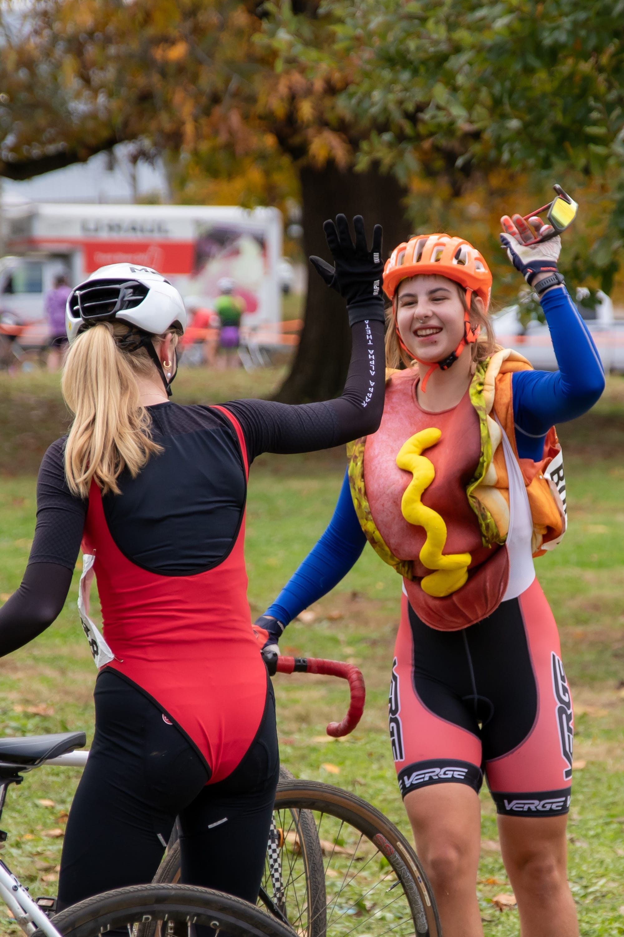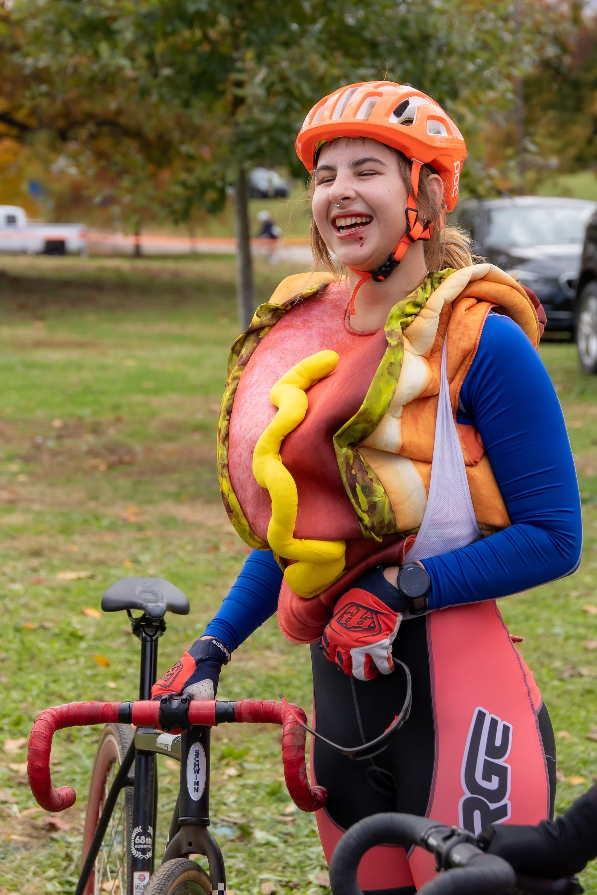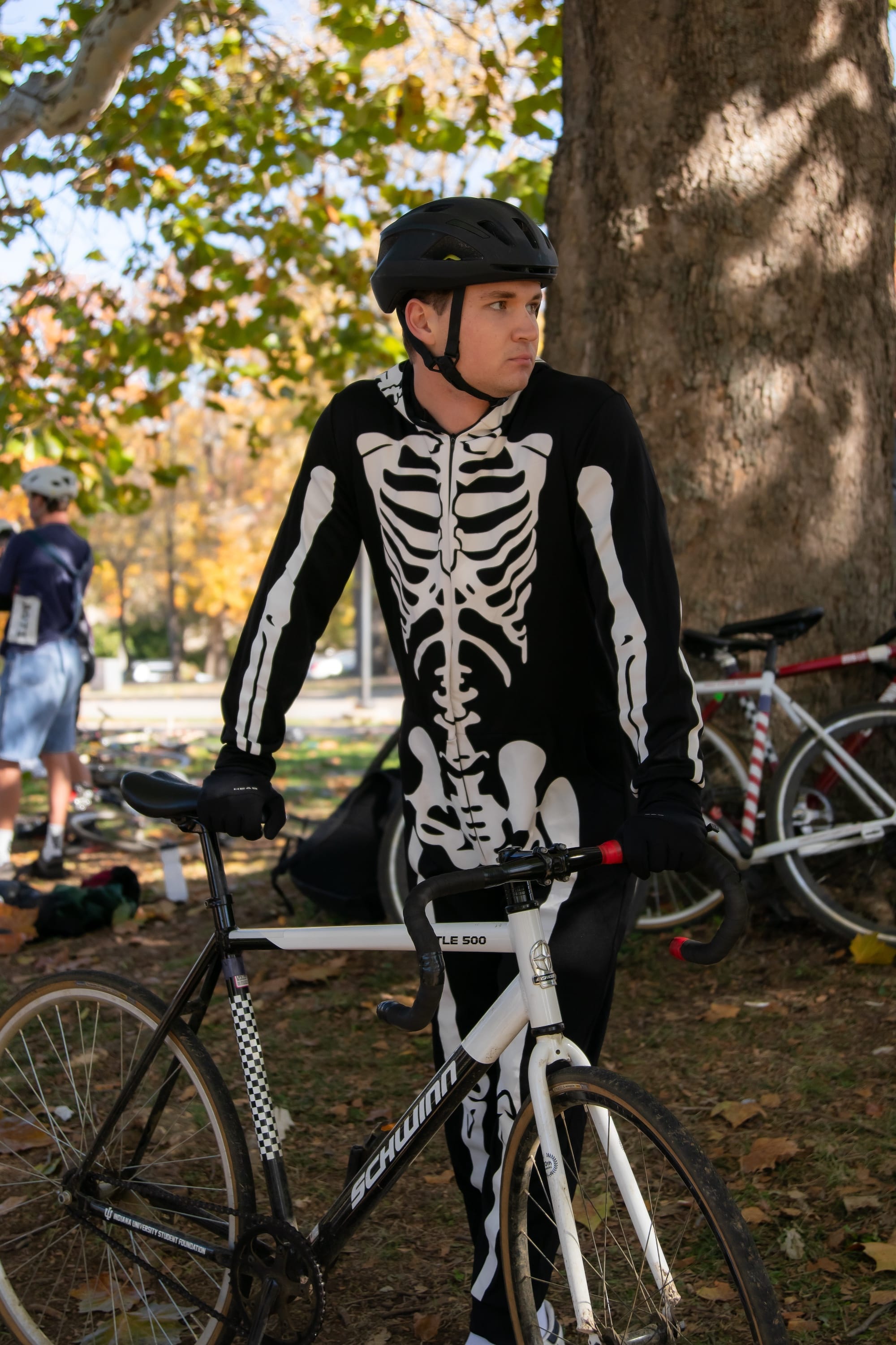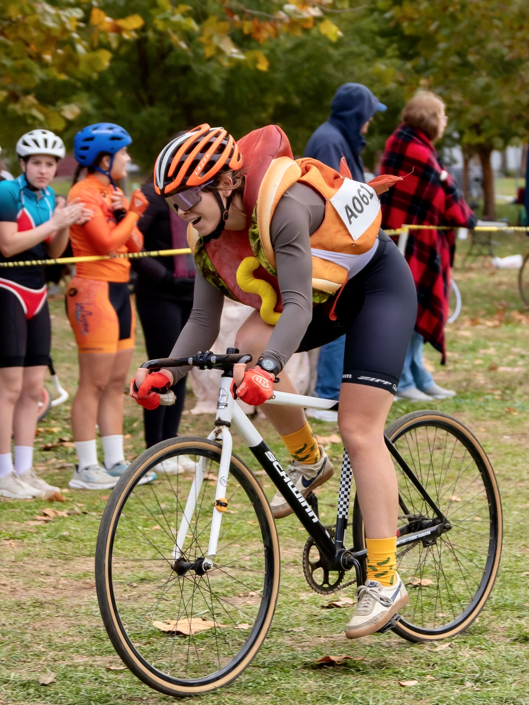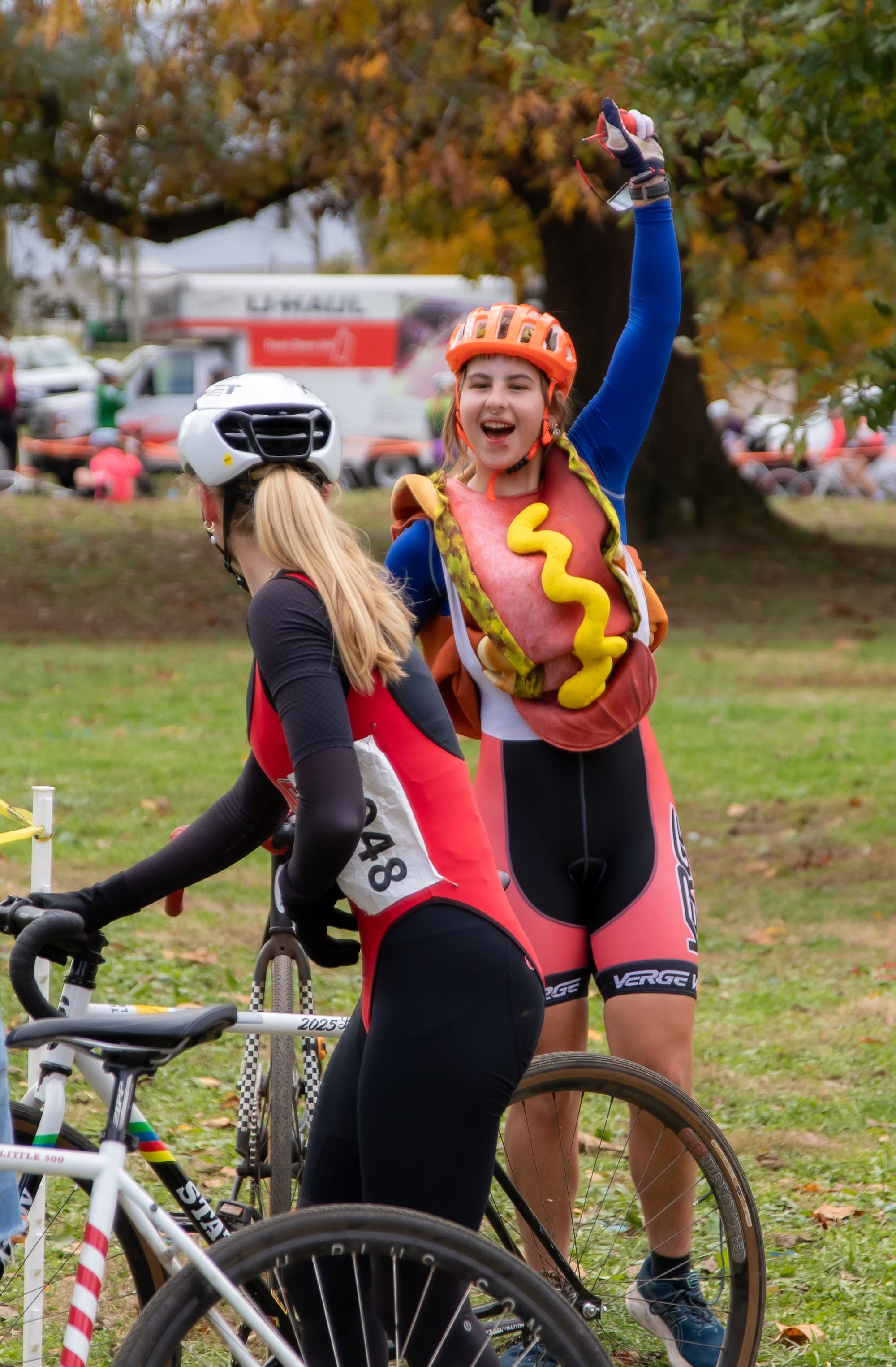 It’s a two-person team relay, where riders make several exchanges between loops. Many riders wore costumes—it was the day after Halloween.