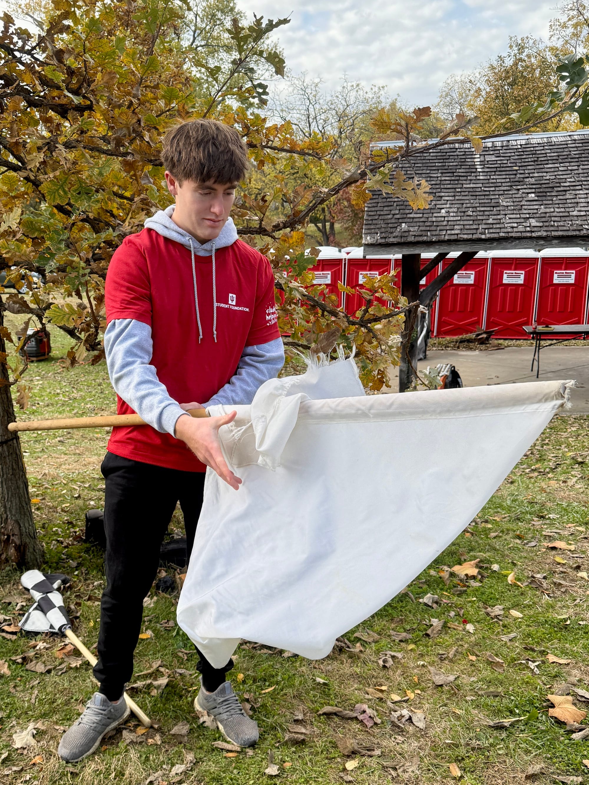 This year’s edition of the cyclocross event took place on Saturday (Nov. 1). Riders pedaled standard-issue Little 500 machines up, down and around a cyclocross course laid out on the tailgate grounds south of the Indiana Memorial football stadium.