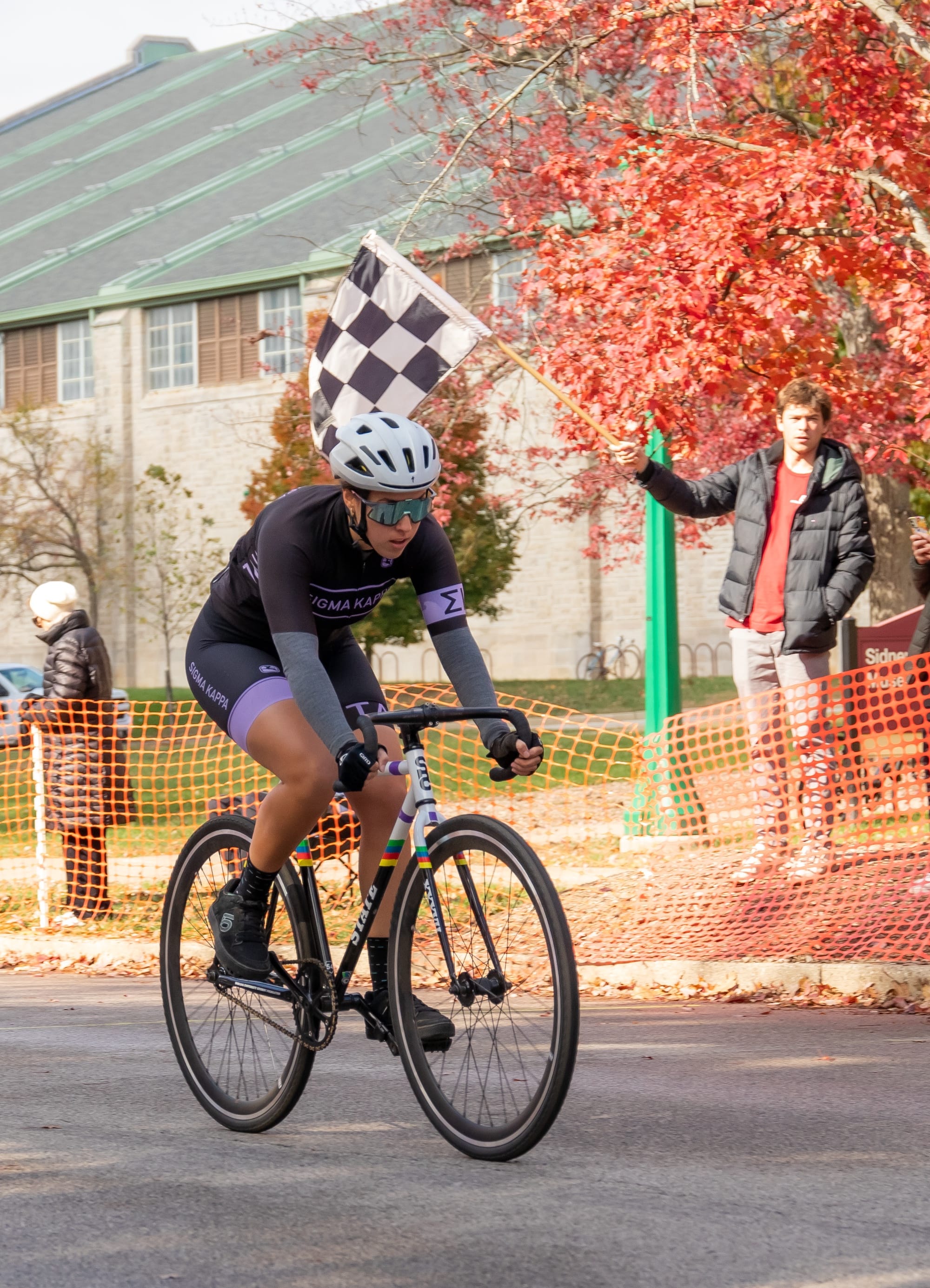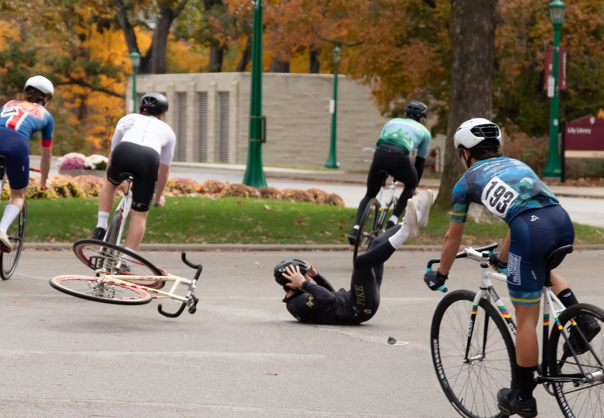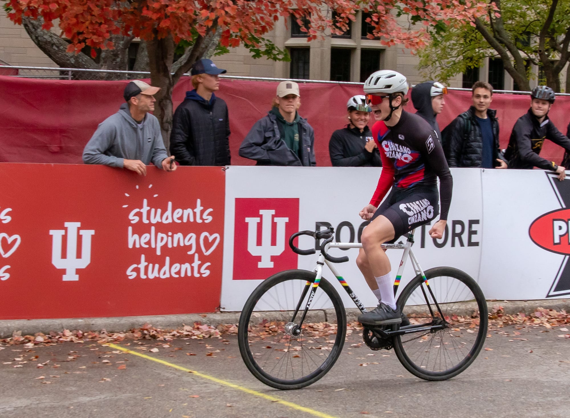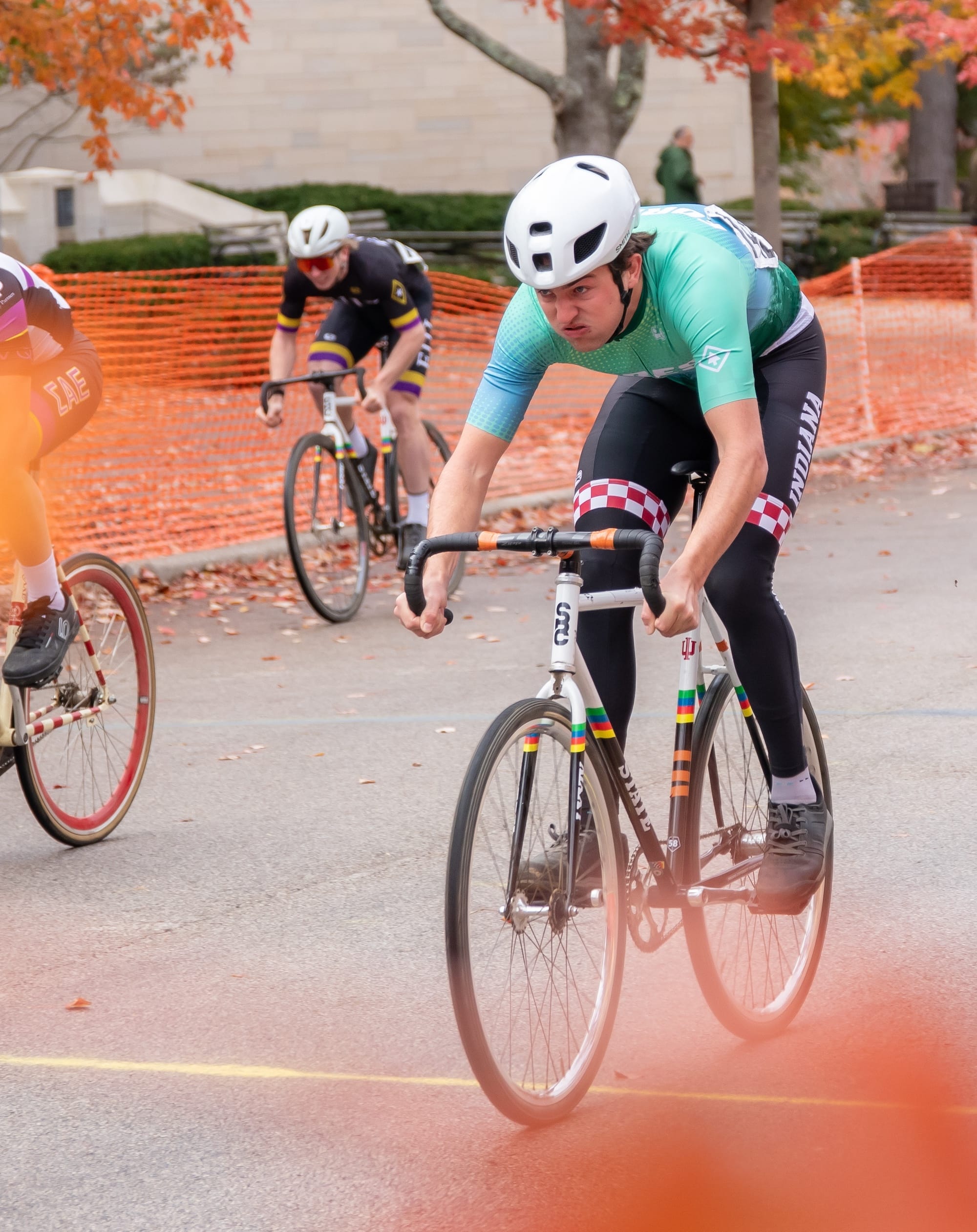 On Sunday, as part of the Little 500 fall series, riders sprinted 200 meters down 7th Street from the Indiana Memorial Union toward Showalter Fountain. Photographer Juliette Kniola captured the action on campus.