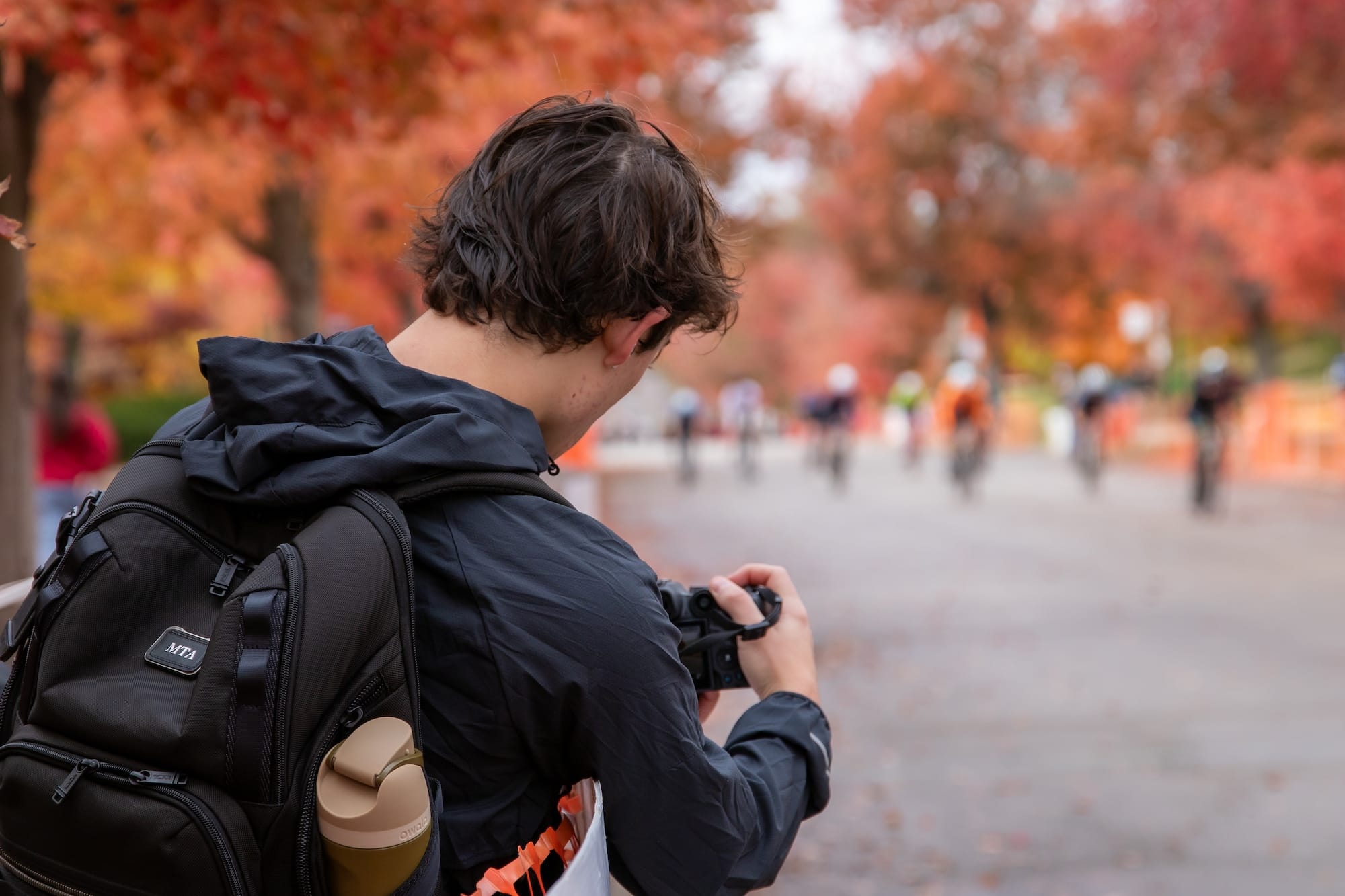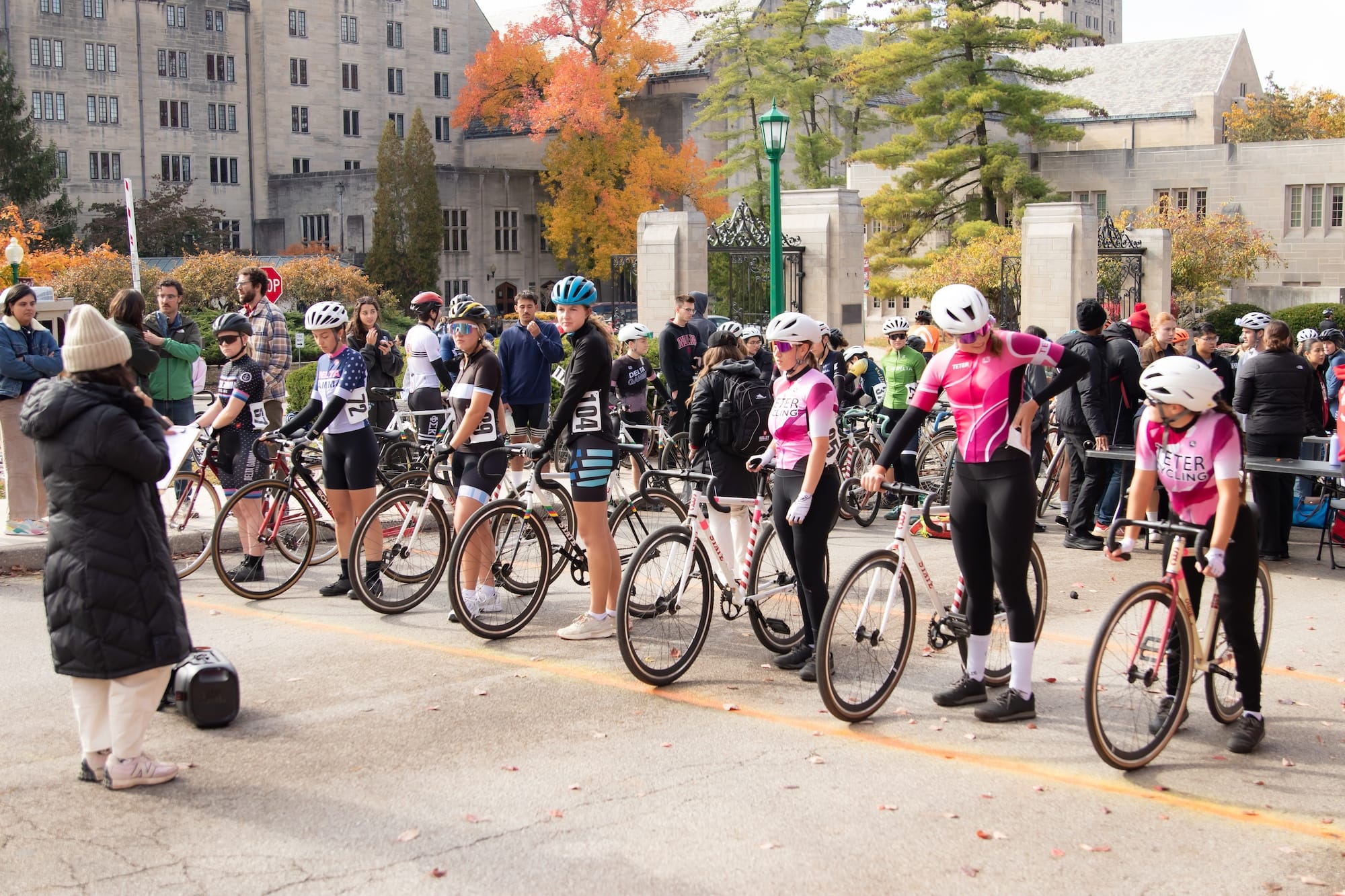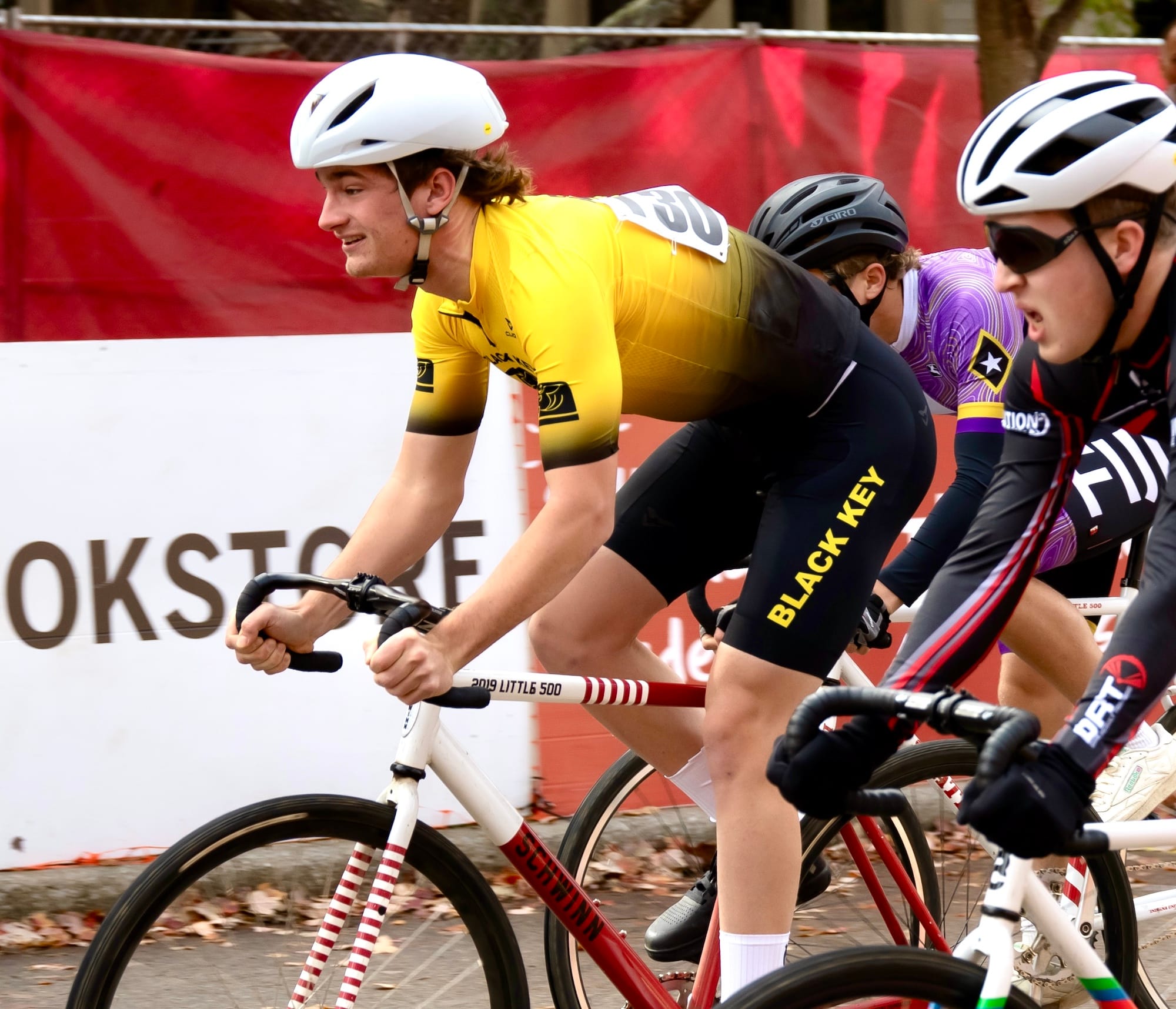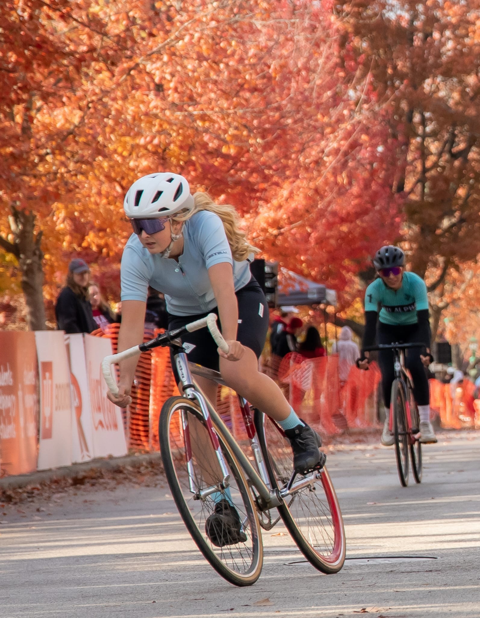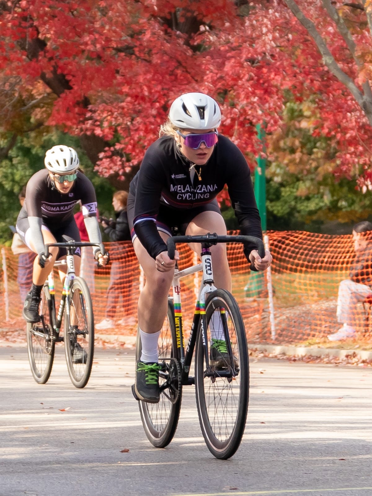On Sunday, as part of the Little 500 fall series, riders sprinted 200 meters down 7th Street from the Indiana Memorial Union toward Showalter Fountain. Photographer Juliette Kniola captured the action on campus.