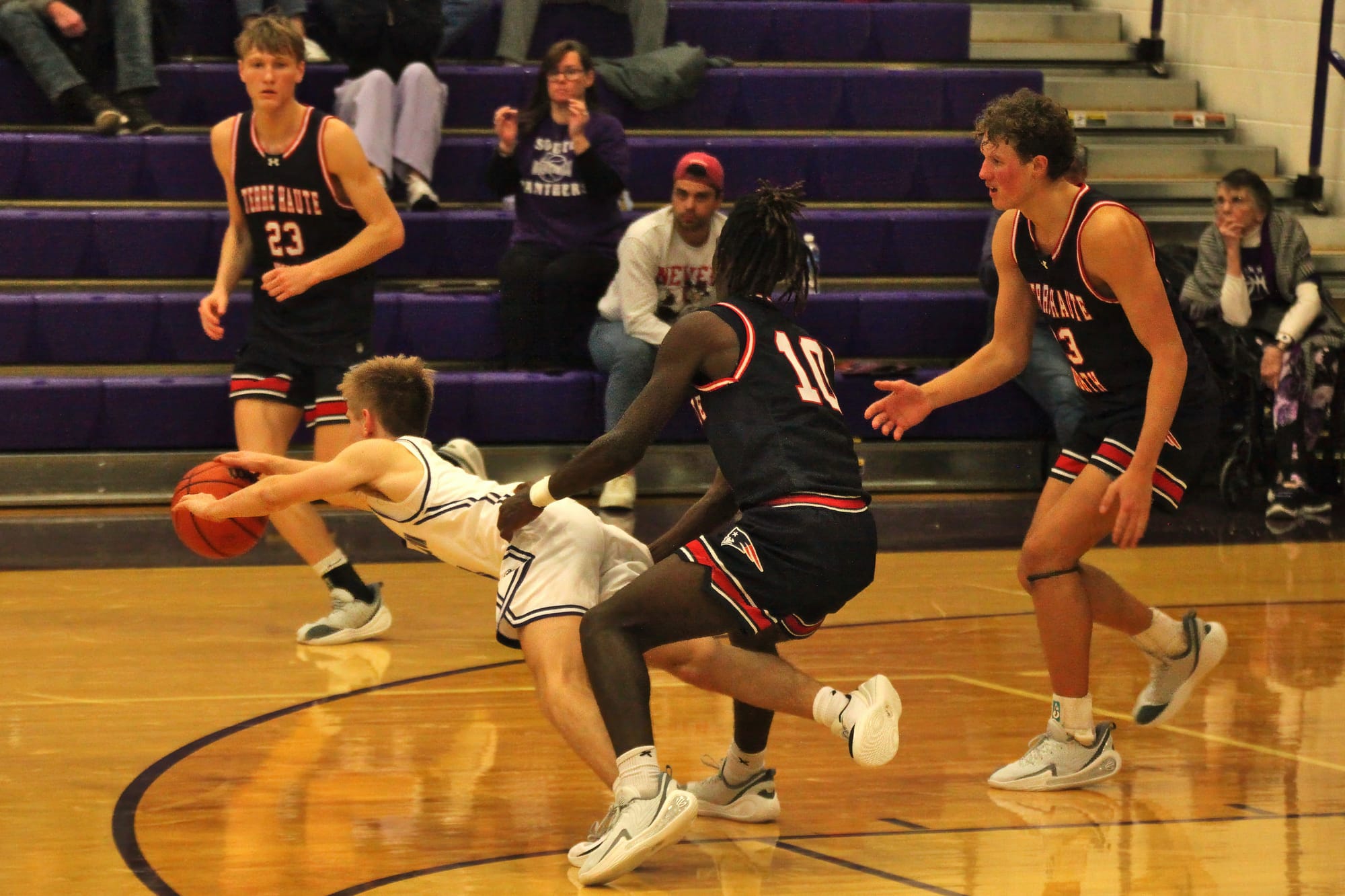 But the Panthers struck first in the extra period. Senior guard Max Surdam (4 points, 1 rebound, 2 assists) made a jump shot on the first possession. But Terre Haute North senior guard Gavin Woelfle (10 points, 2 rebounds, 1 assist, 2 steals) answered with a 3-pointer on the other end to give the Patriots a 61-60 lead.