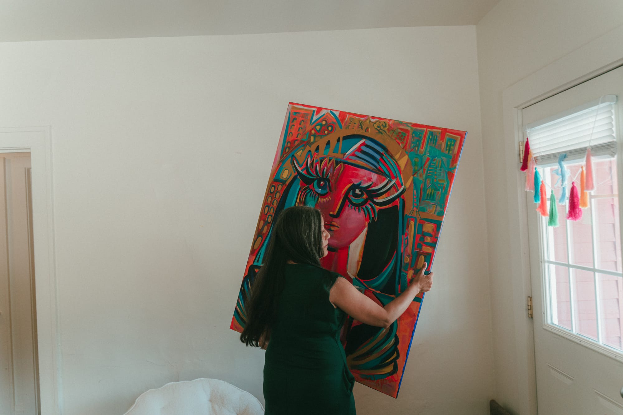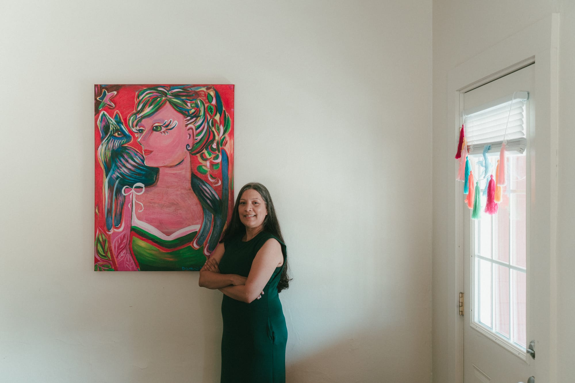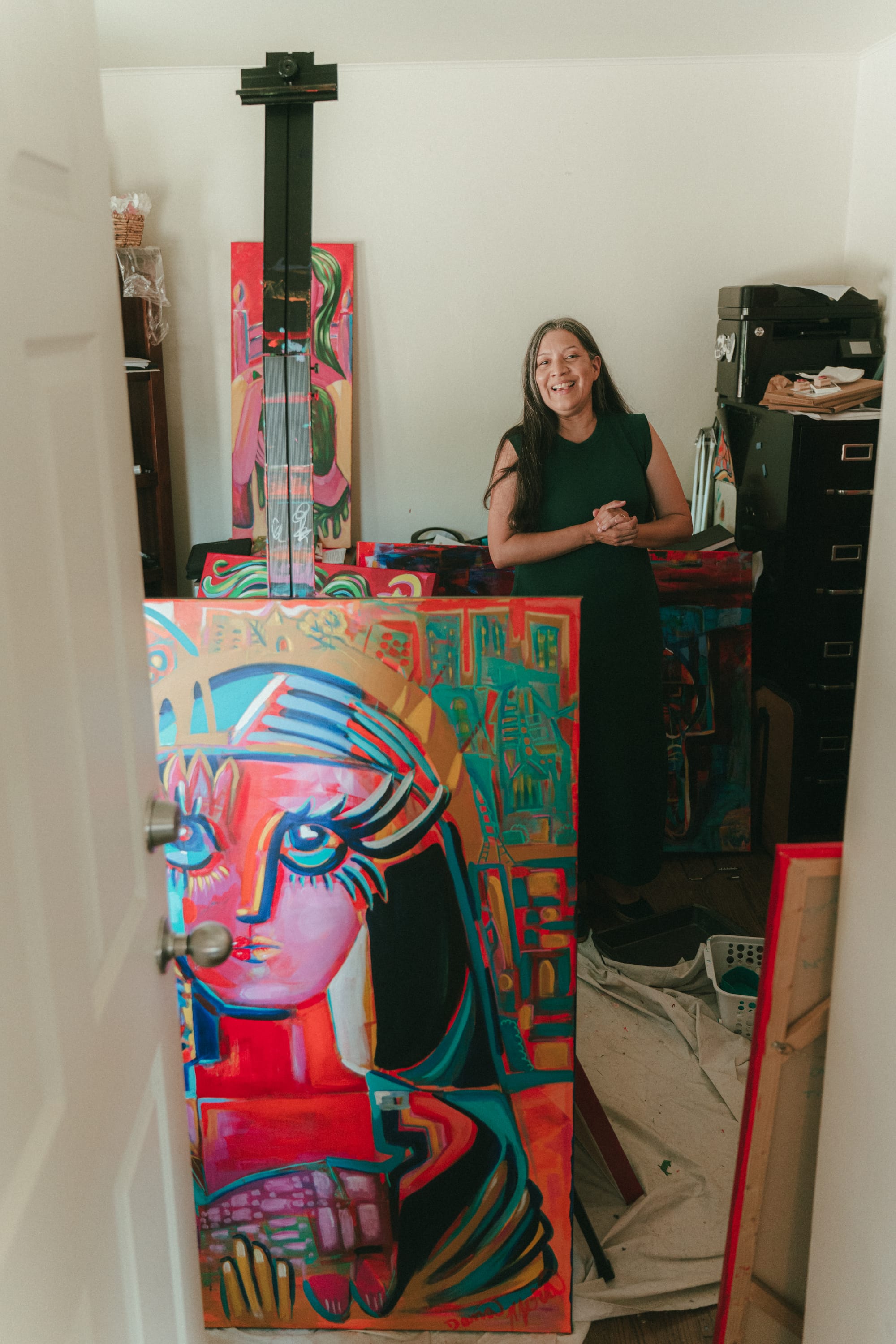 Painter Dama Mora's home studio. (Kelton O'Connell, July 29, 2025)