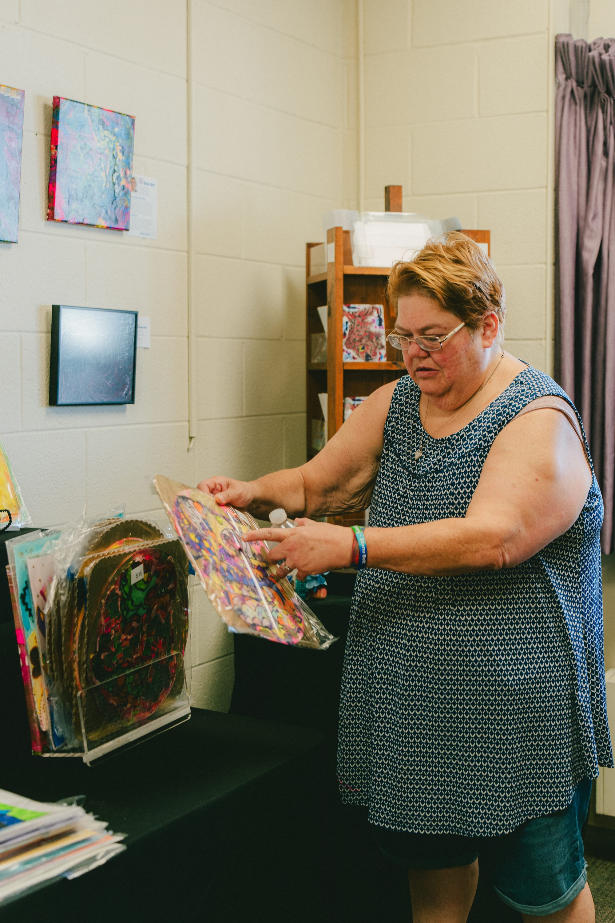 Schedules for clients are individualized, art instructor Tiffany Jackson said. In the studio, artists work independently but share their pieces with each other and receive feedback. There are support staff in the studio that facilitate regular check-ins.