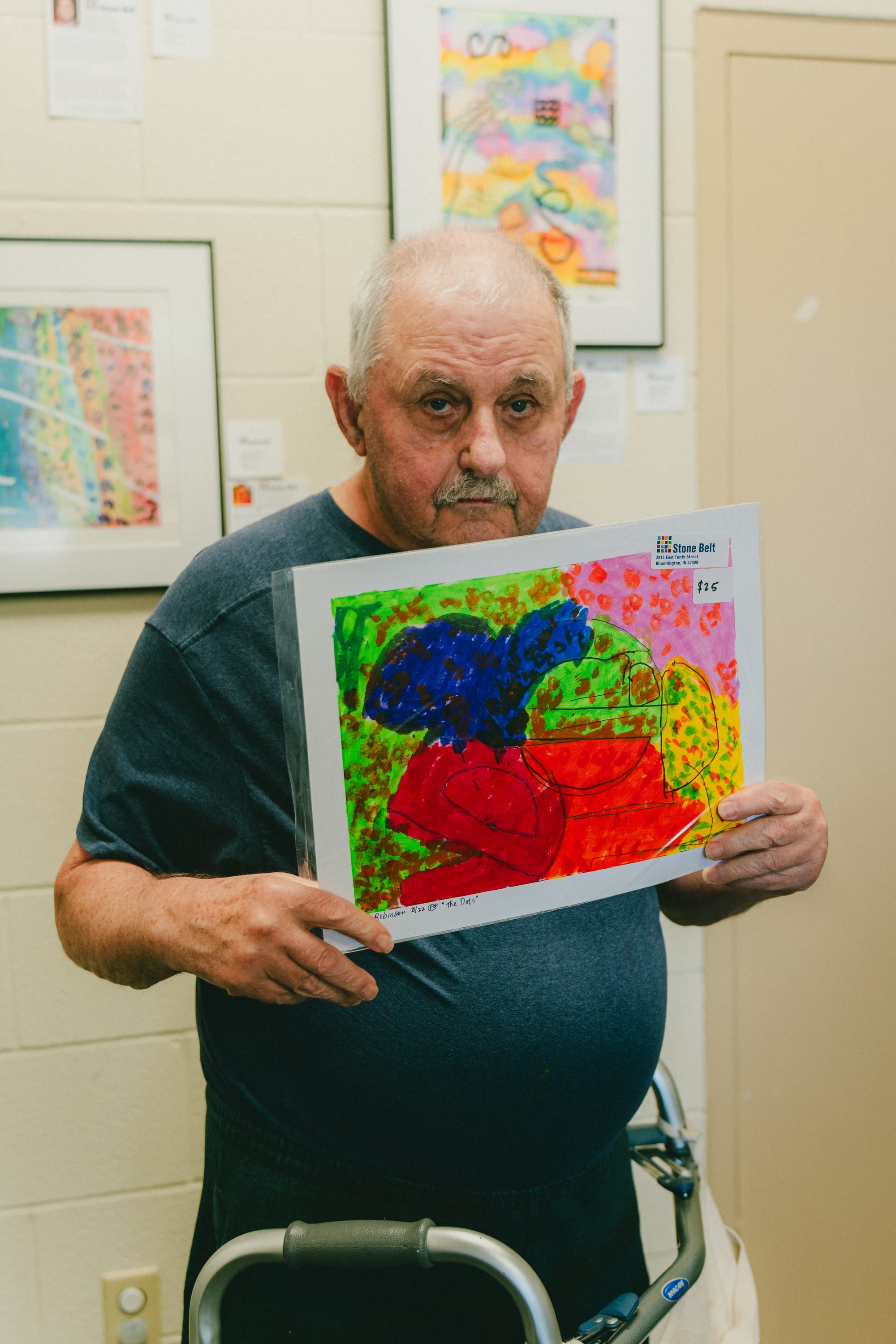 Featured at Gallery B in Bloomingfoods Near West are works from artists at Stone Belt, Bloomington’s provider of residential, employment, and educational services for those with disabilities. The exhibit is called “Blooming Possibilities.”