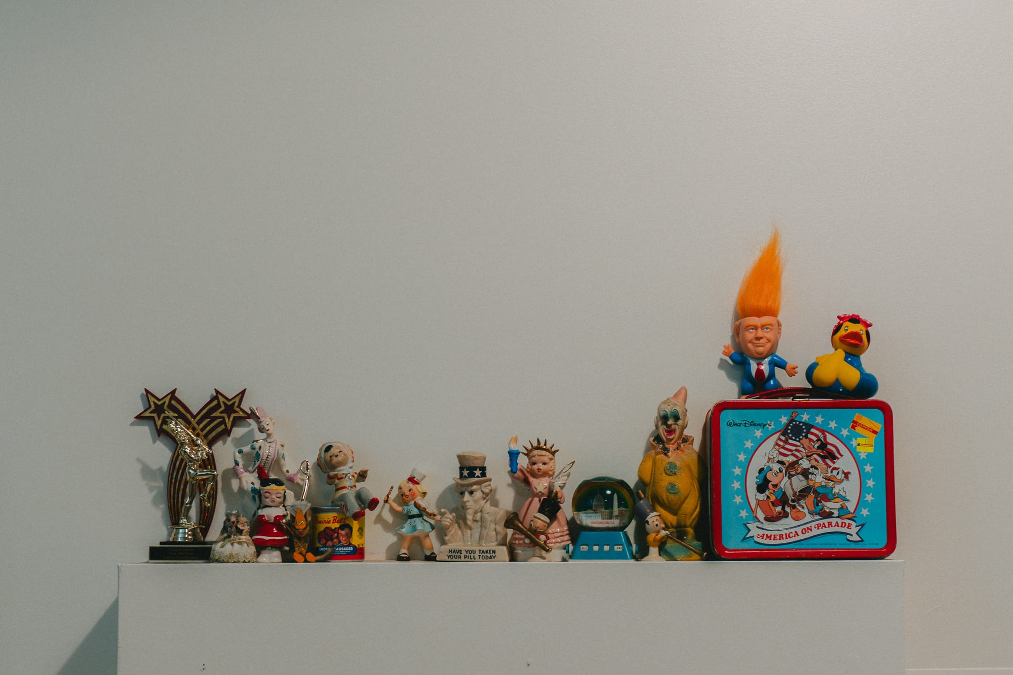“Majorettes are a recurring character in my work,” she said. “I like them to be the pep band leader who’s lost her pep, because I feel that way about America now. I want to be like, ‘Yes!’ But, I can’t. I think that’s a really common experience for people right now.”