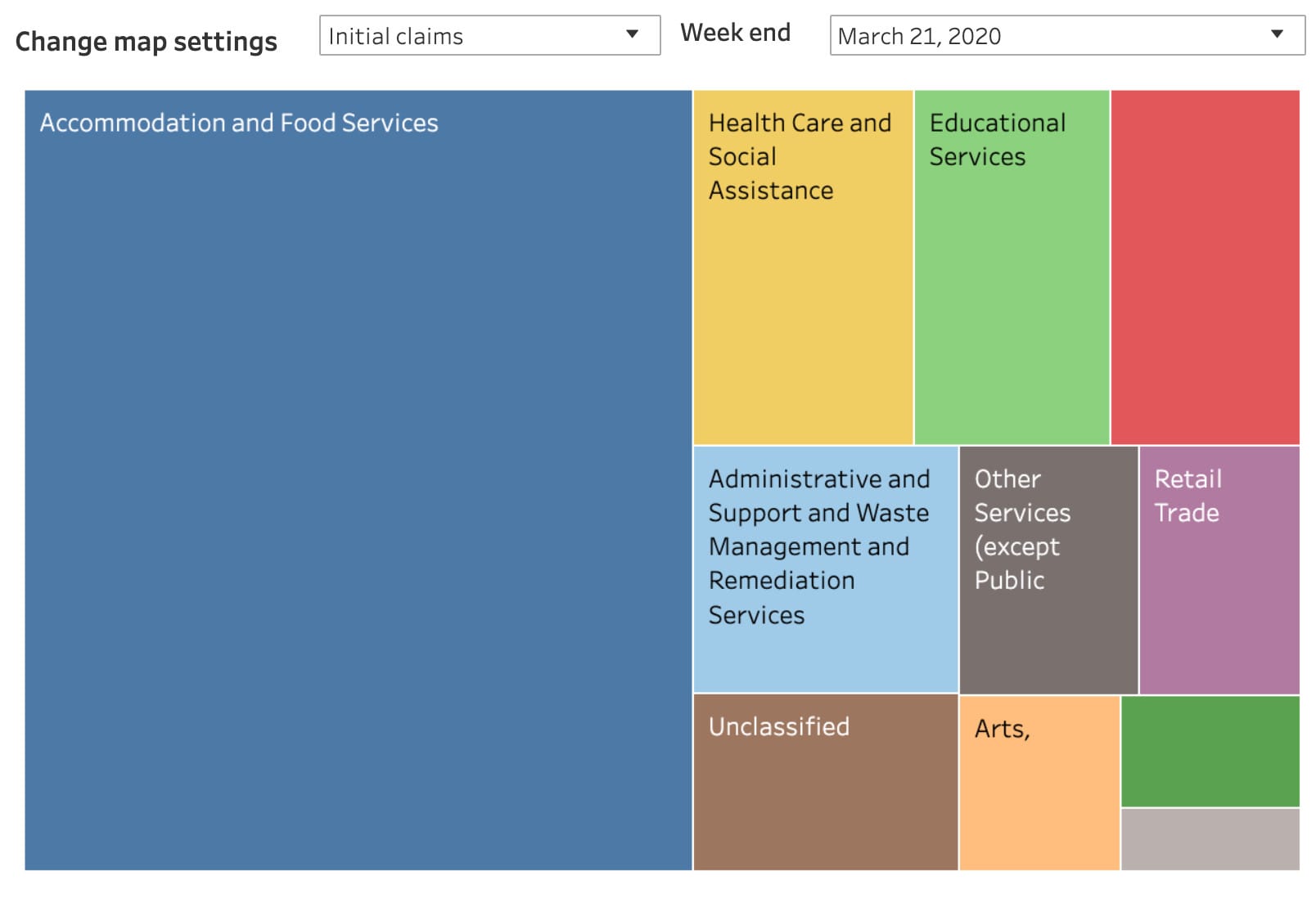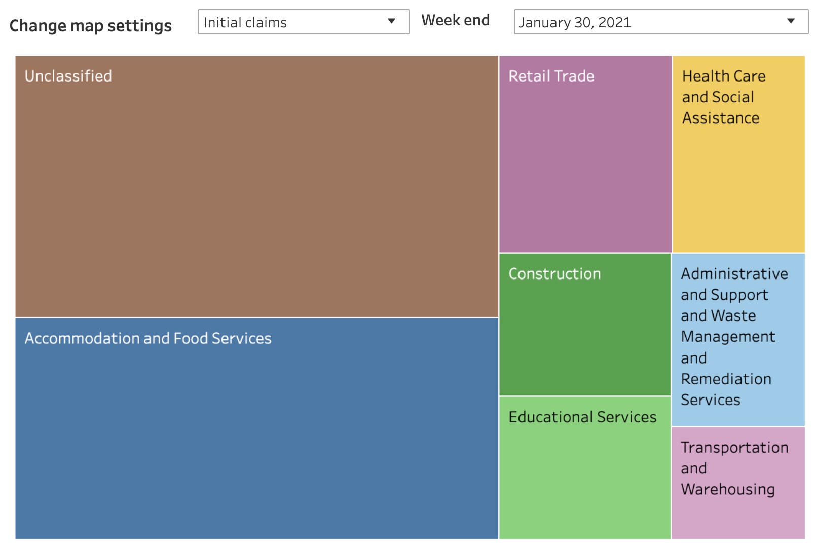 Rogers contrasted the sectors of the economy that were hardest hit initially with those that are now seeing the impact. In the spring of 2020 at the start of the pandemic, Rogers said, it was hospitality services, restaurants, and bars, that were hardest hit, even though manufacturing, retail trade, and even health services already saw some unemployment claims.